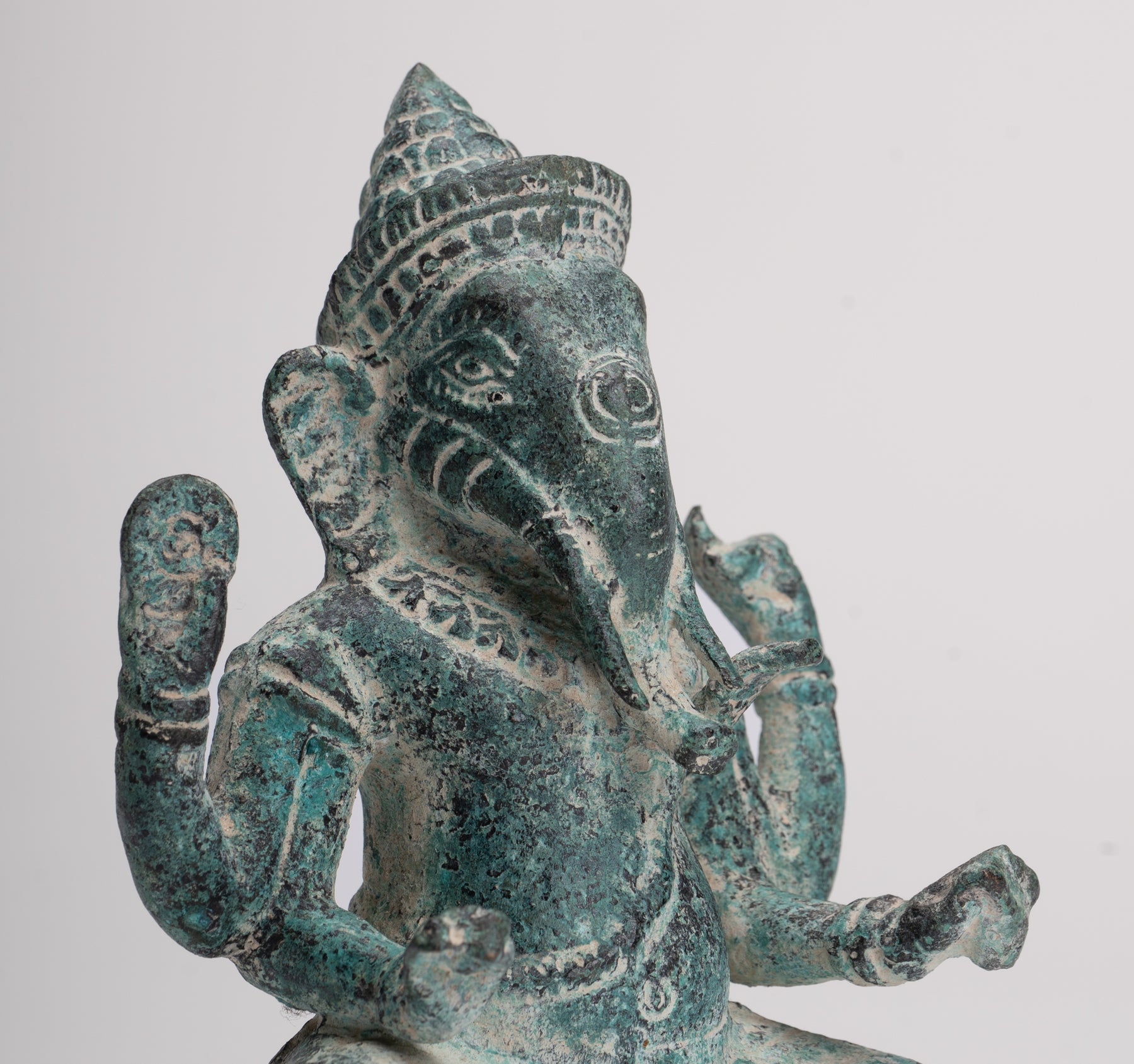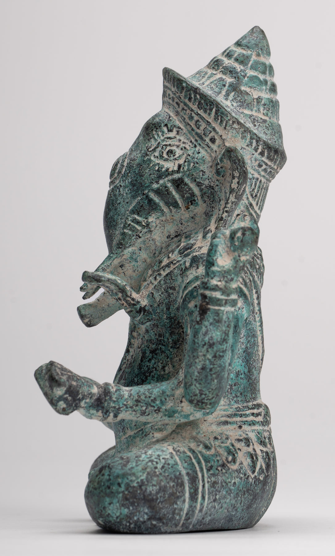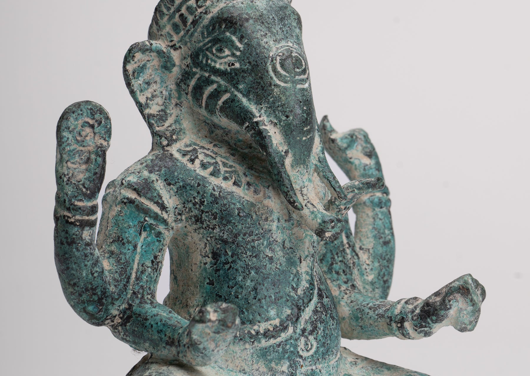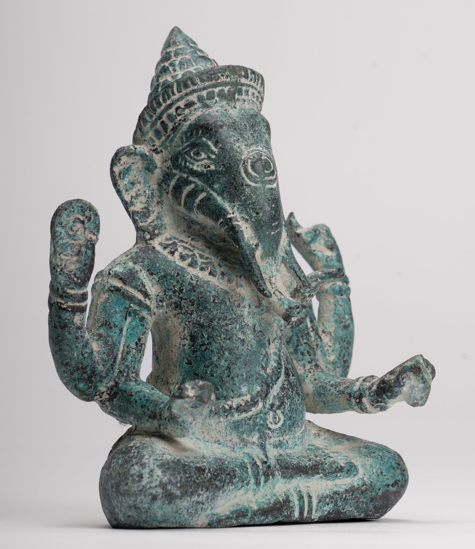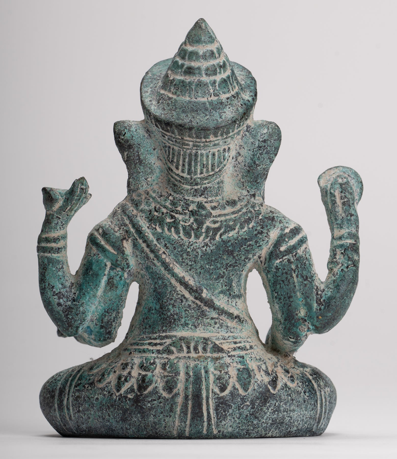 Statue de Ganesha – Statue de Ganesh assise à quatre bras en bronze d'Angkor Wat de style khmer antique – 14,5 cm