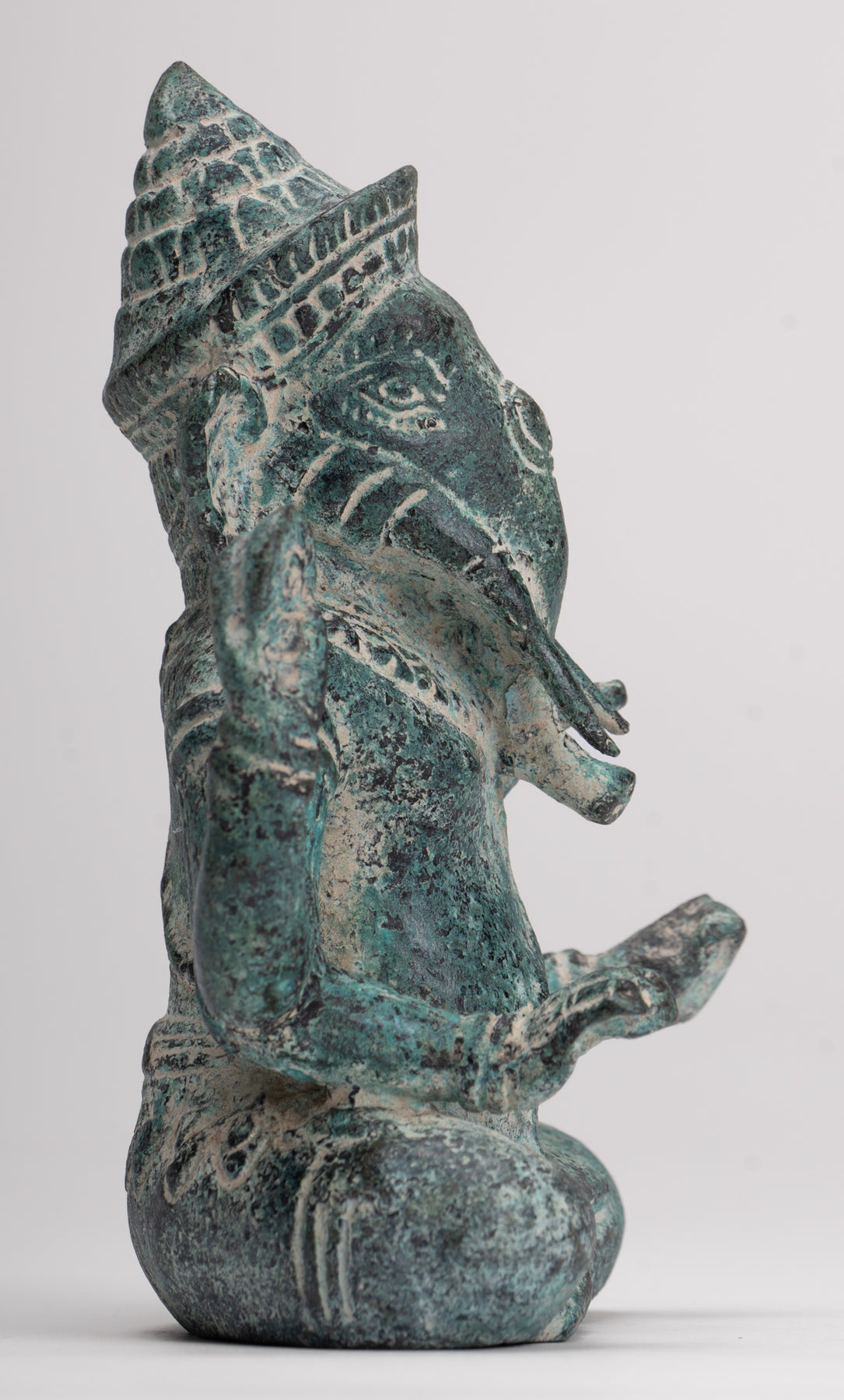 Un Ganesha assis en bronze de style khmer antique dans le style d'Angkor Wat du XIIe siècle.