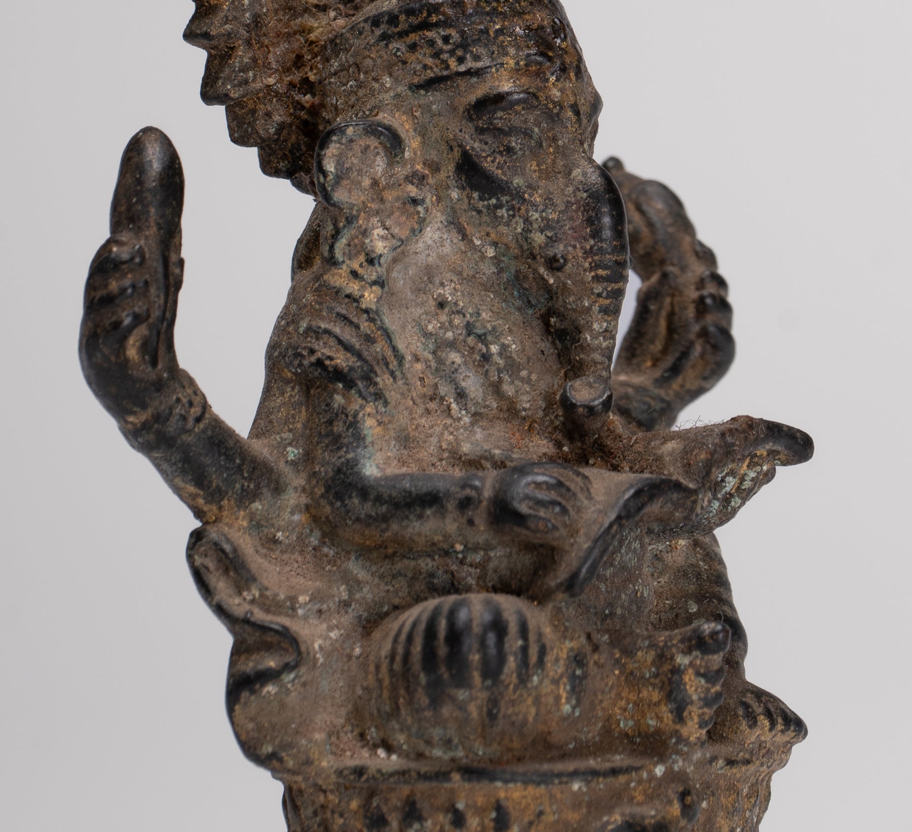 Statue de Ganesha – Statue de Ganesh assise en bronze de style thaïlandais antique – 8 cm