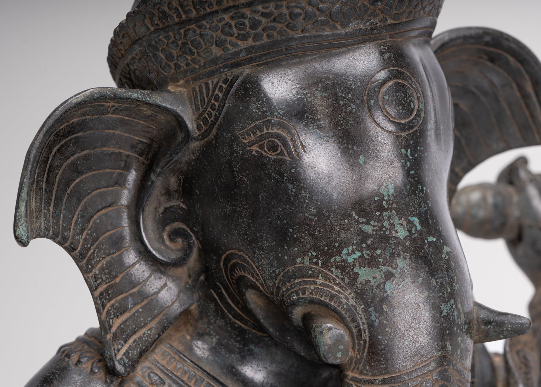 Un magnifique bronze antique de style Khmer trônant Ganesha du XIIème siècle, style Angkor Wat.