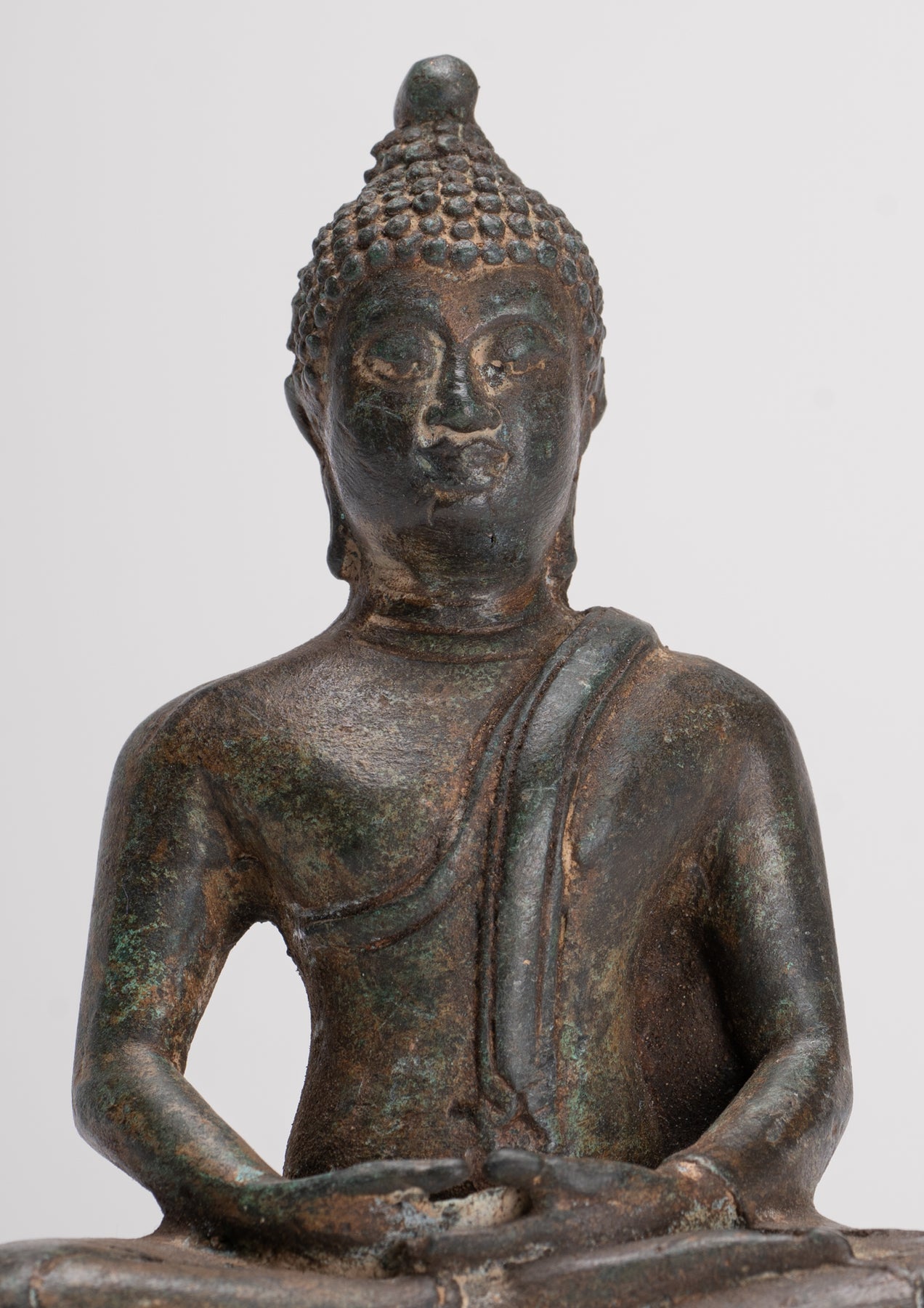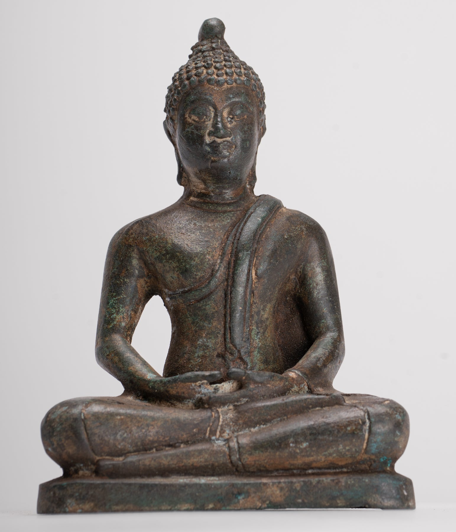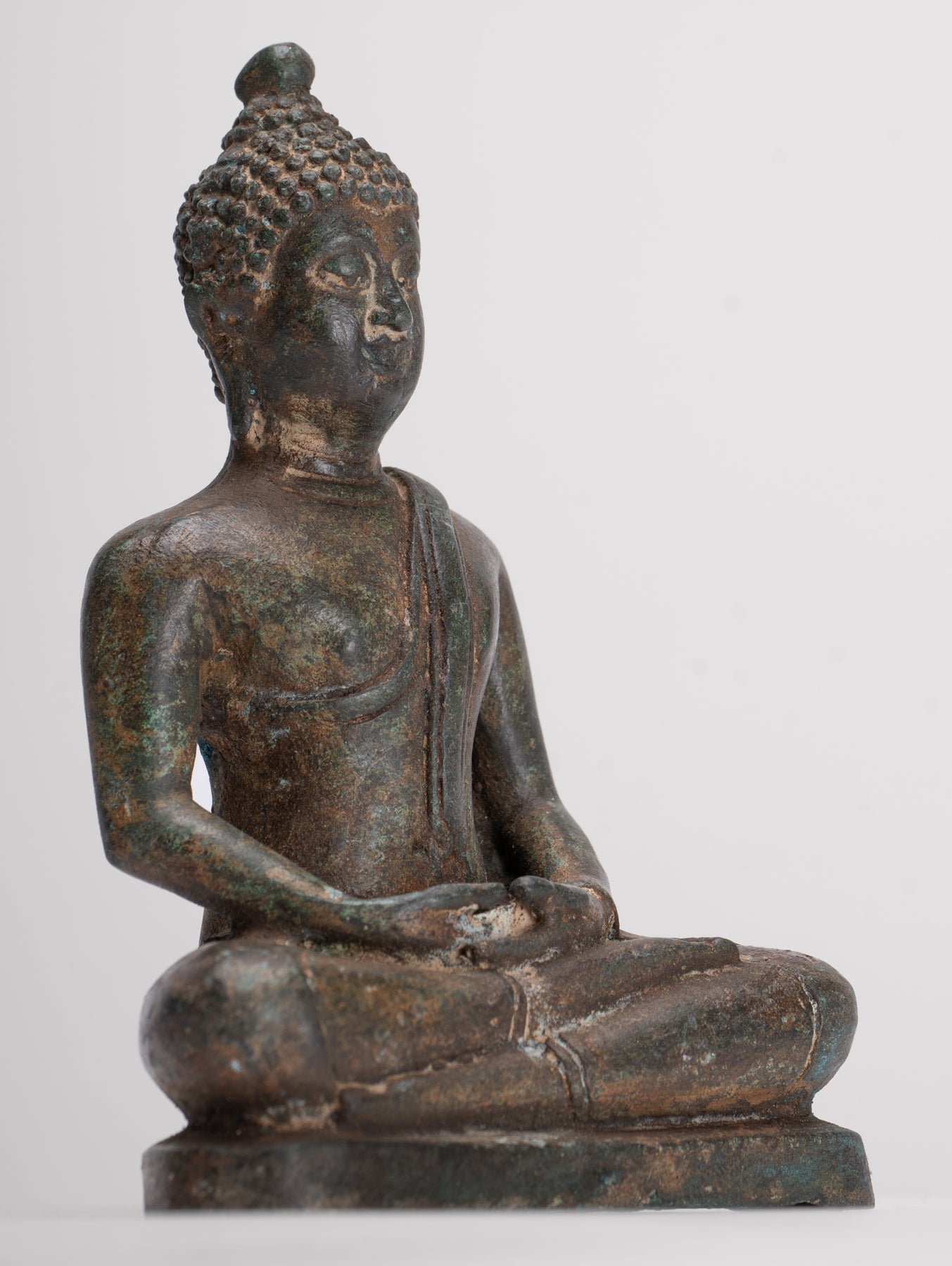 Buddha Sculpture - Antique Thai Style Bronze Seated Chiang Saen Meditation Buddha Statue - 14.5cm/6"