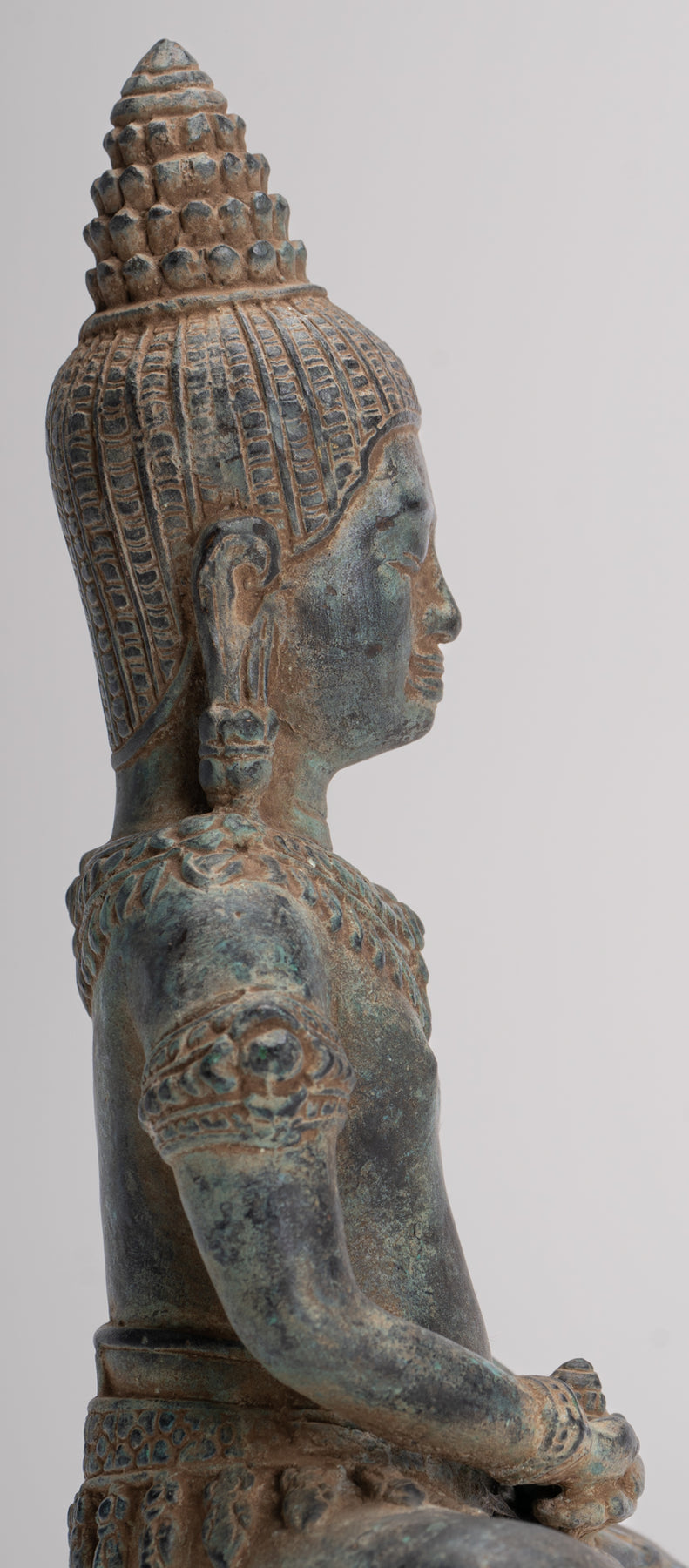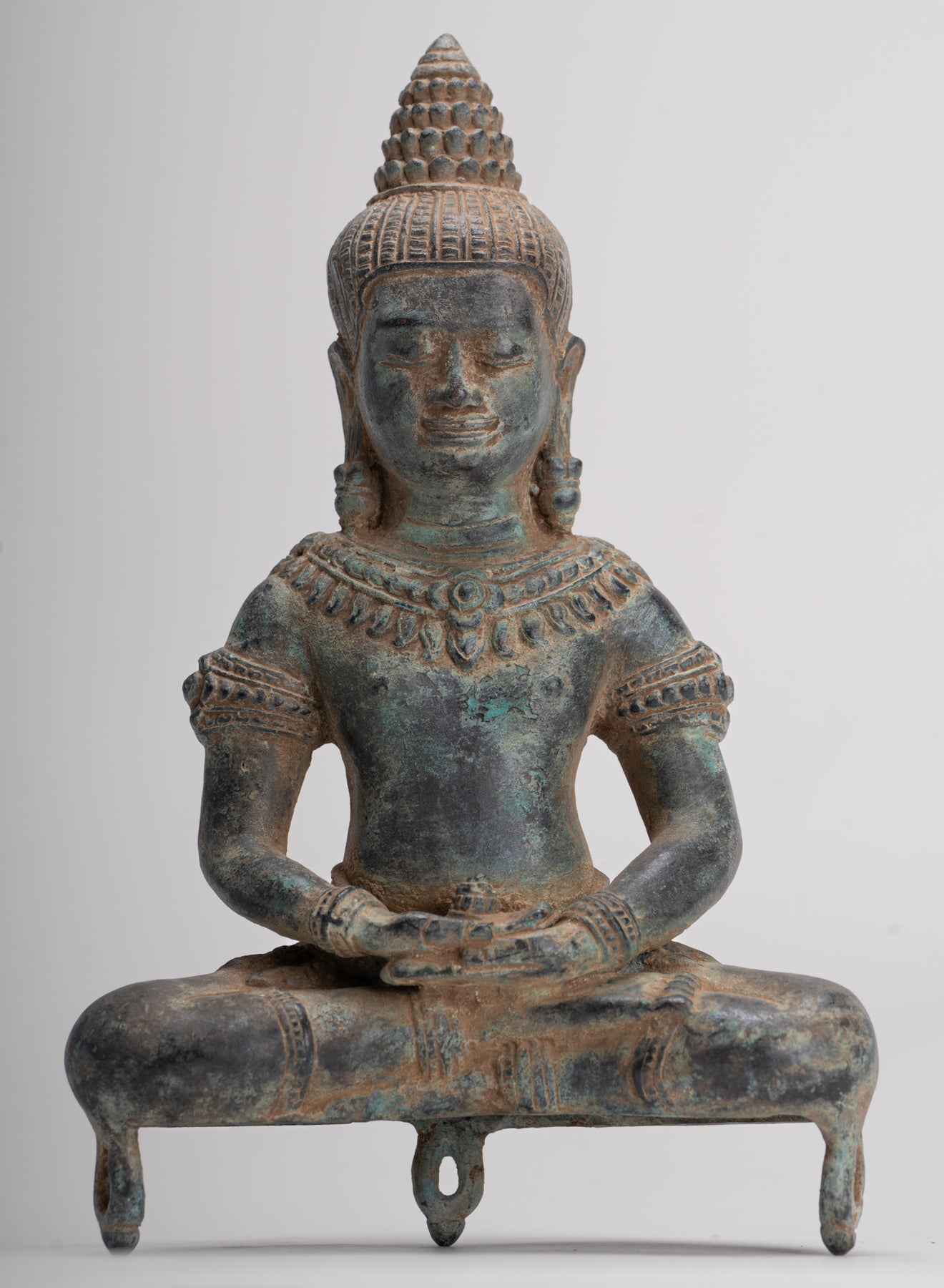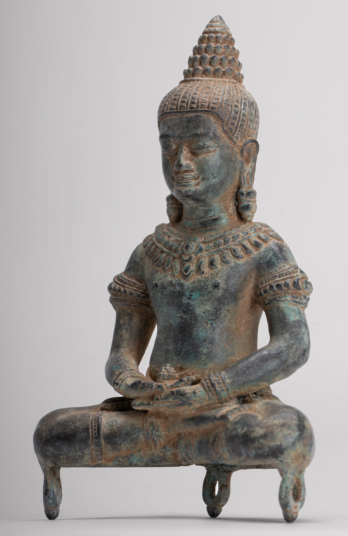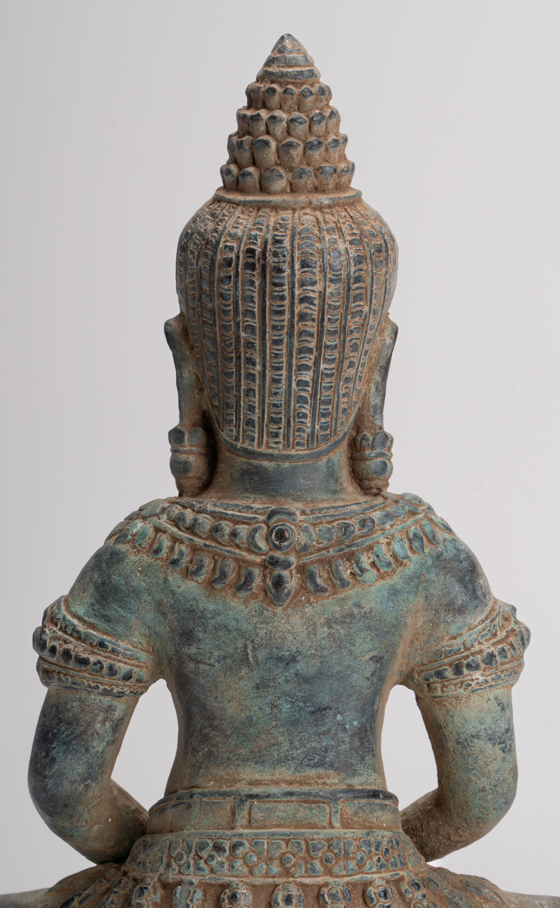• Statua di Buddha da meditazione seduto in bronzo antico in stile Khmer - 22 cm/9"