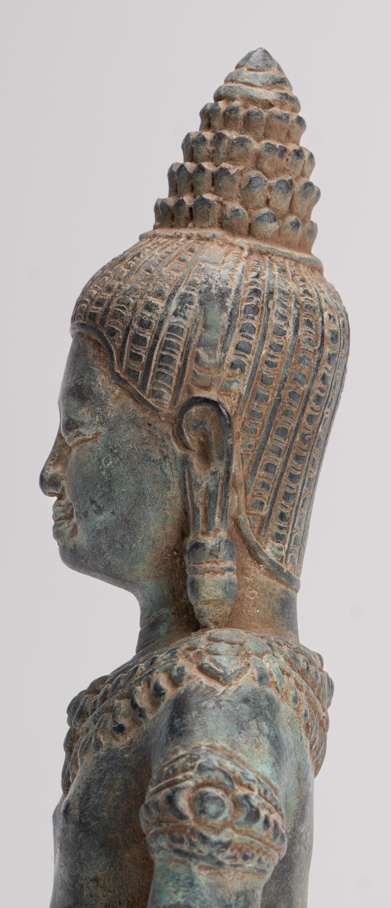 Statua di Buddha - Statua di Buddha Bayon seduto in meditazione in bronzo in stile Khmer antico - 22 cm/9"