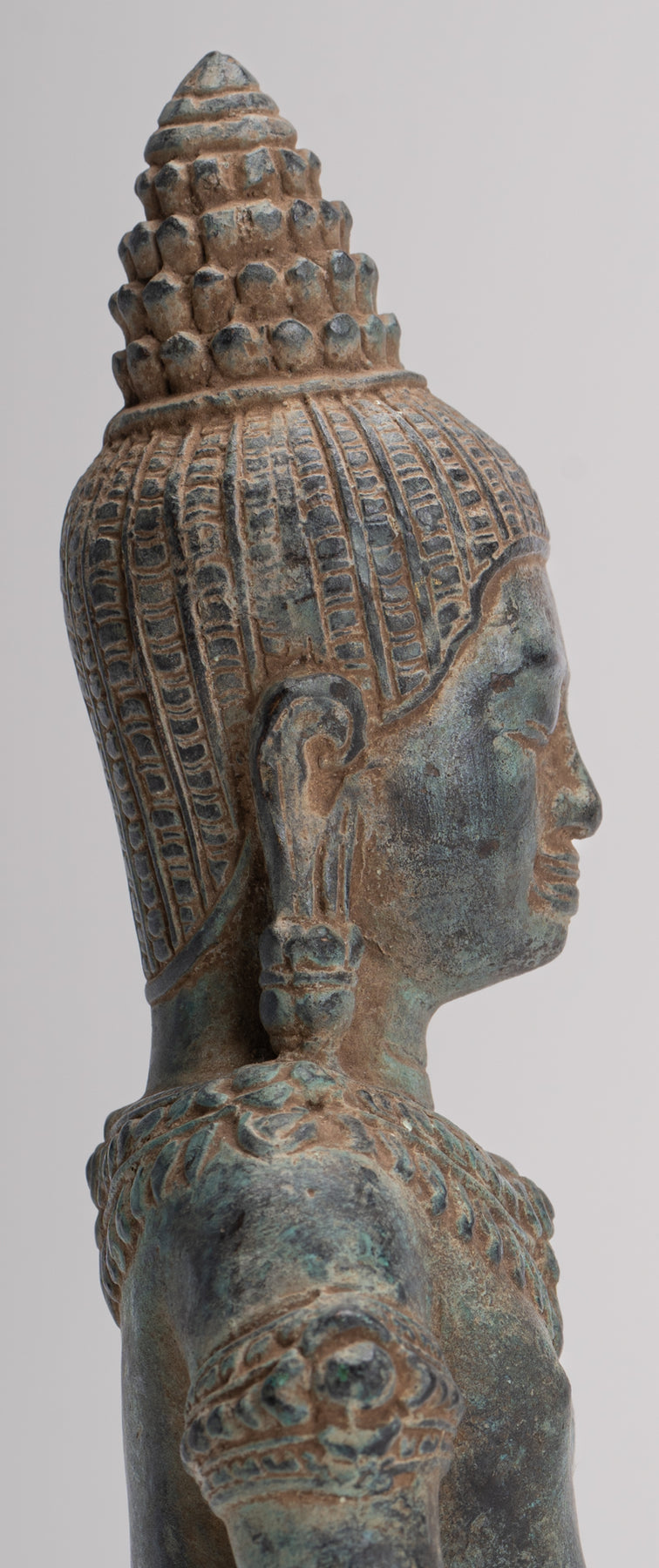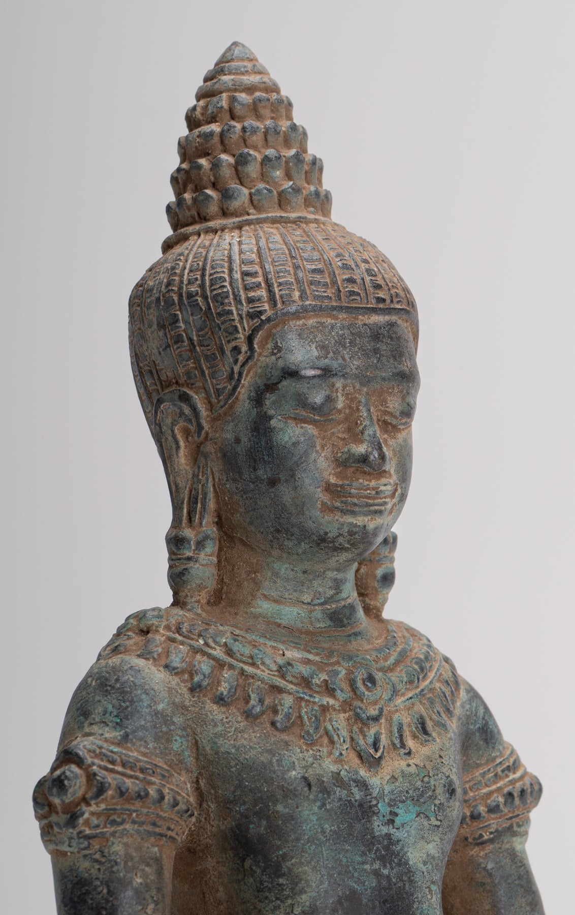 Un antico Buddha da meditazione in stile Khmer. Nel tipico stile Bayon post-Angkor del XIII secolo, il Buddha possiede un serenità, che conferma la divinità del Buddha, pur essendo privo di ogni ego.