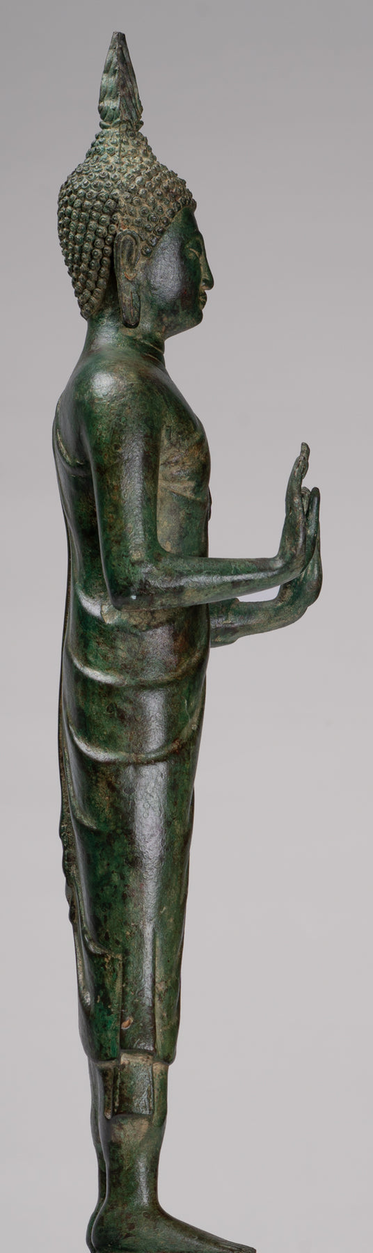 Buddha Statue - Antique Thai Style Bronze Standing Abhaya Protection Buddha Statue - 62cm/25"