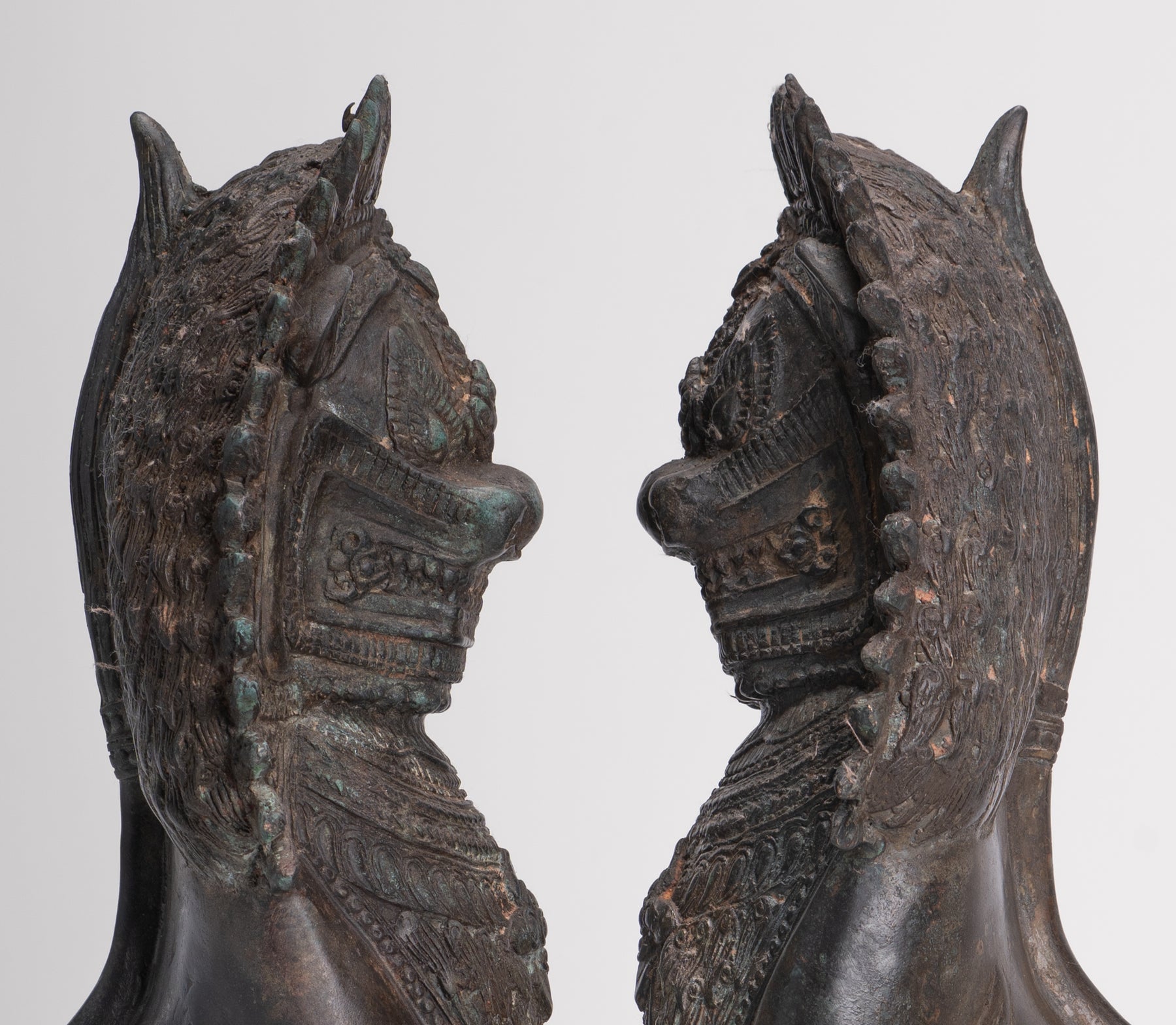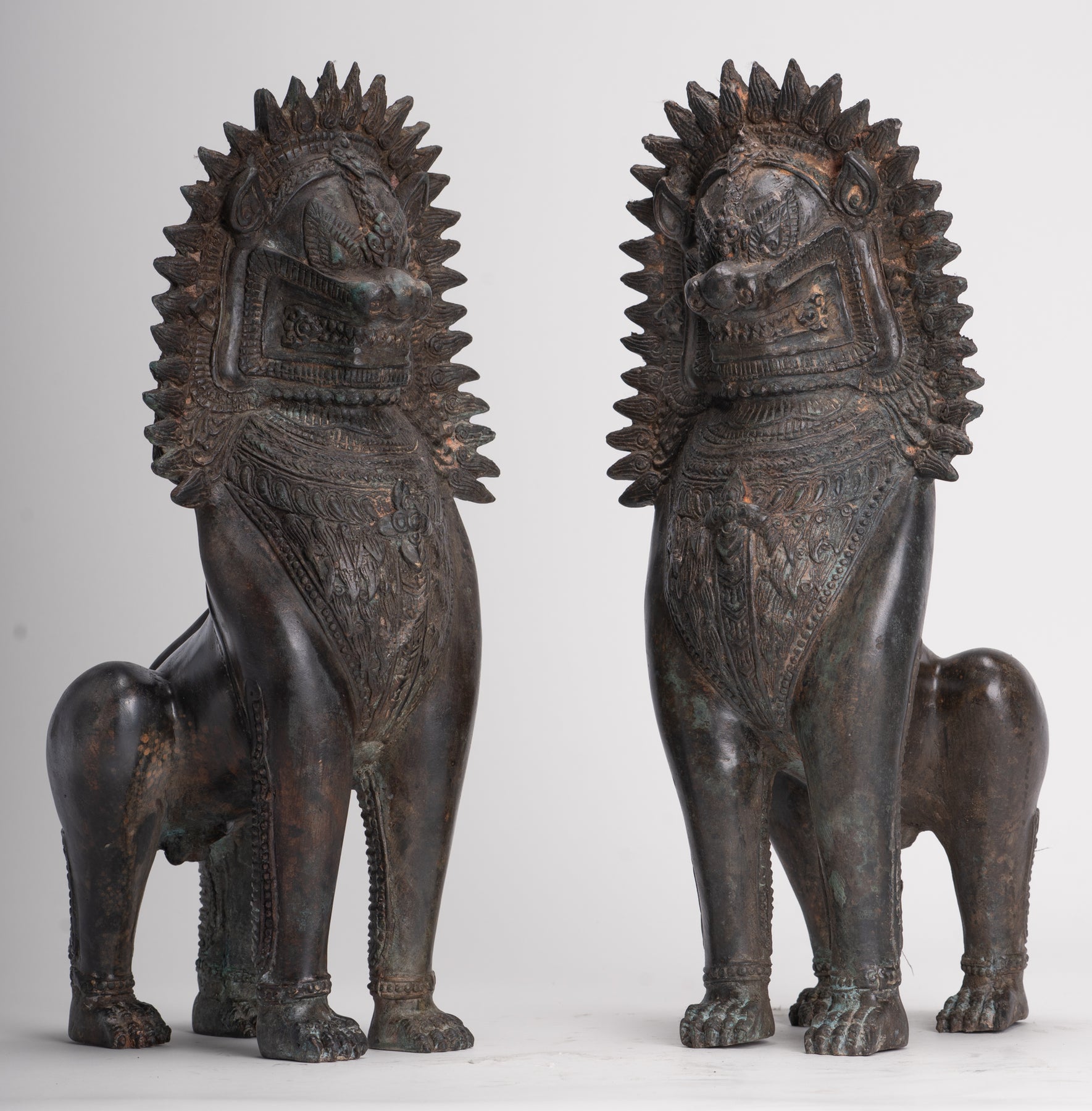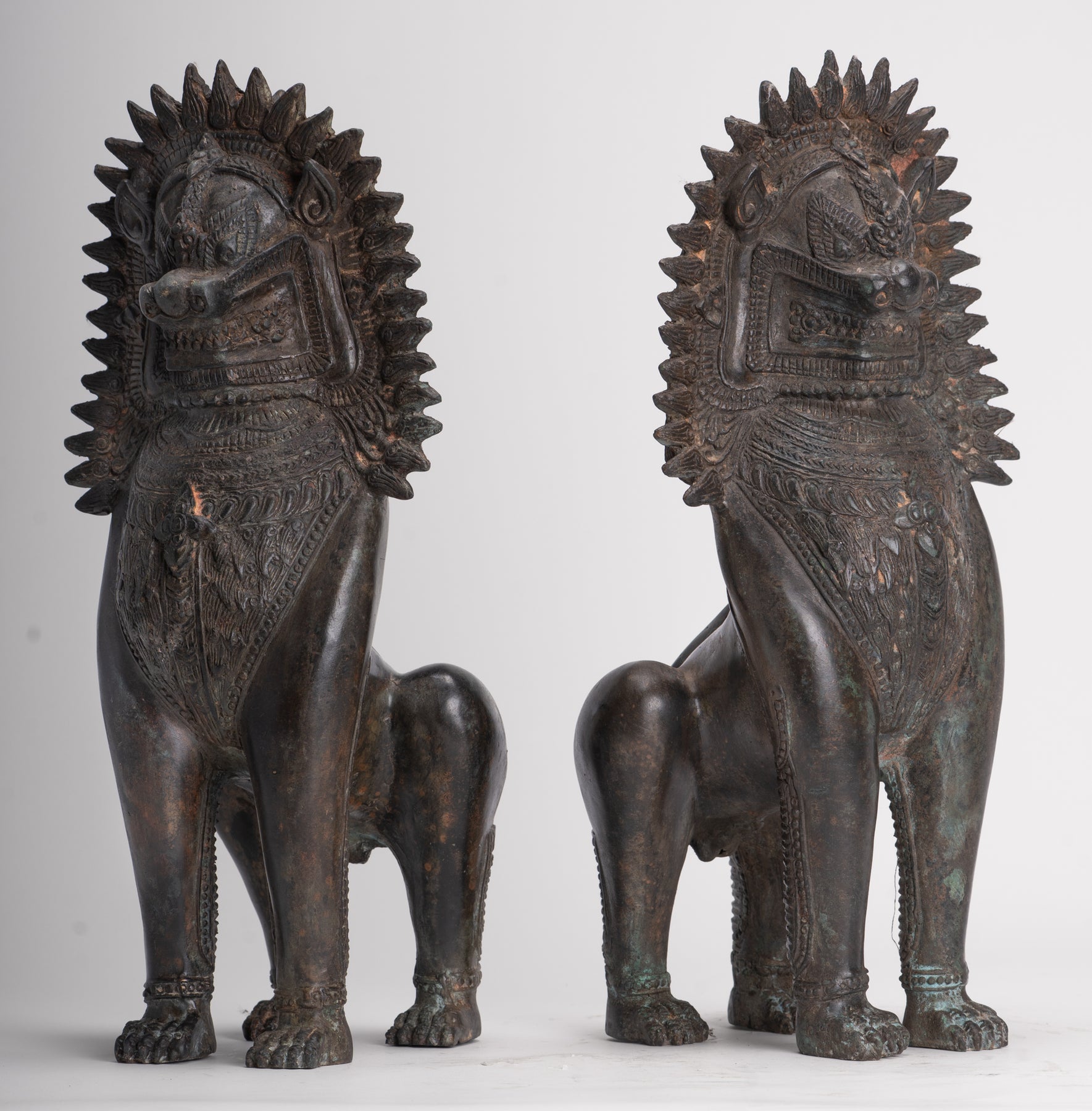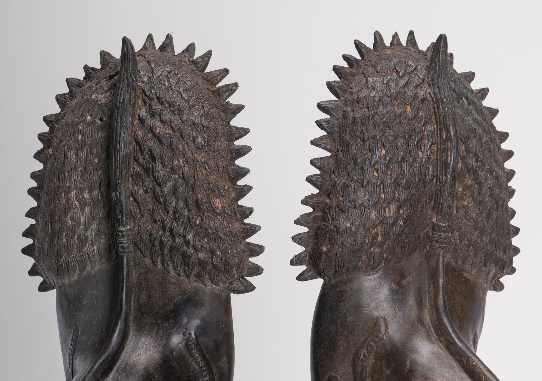 Leone del tempio - Guardiani o leoni del tempio Singha in bronzo in stile tailandese antico - 41 cm/16" (coppia)