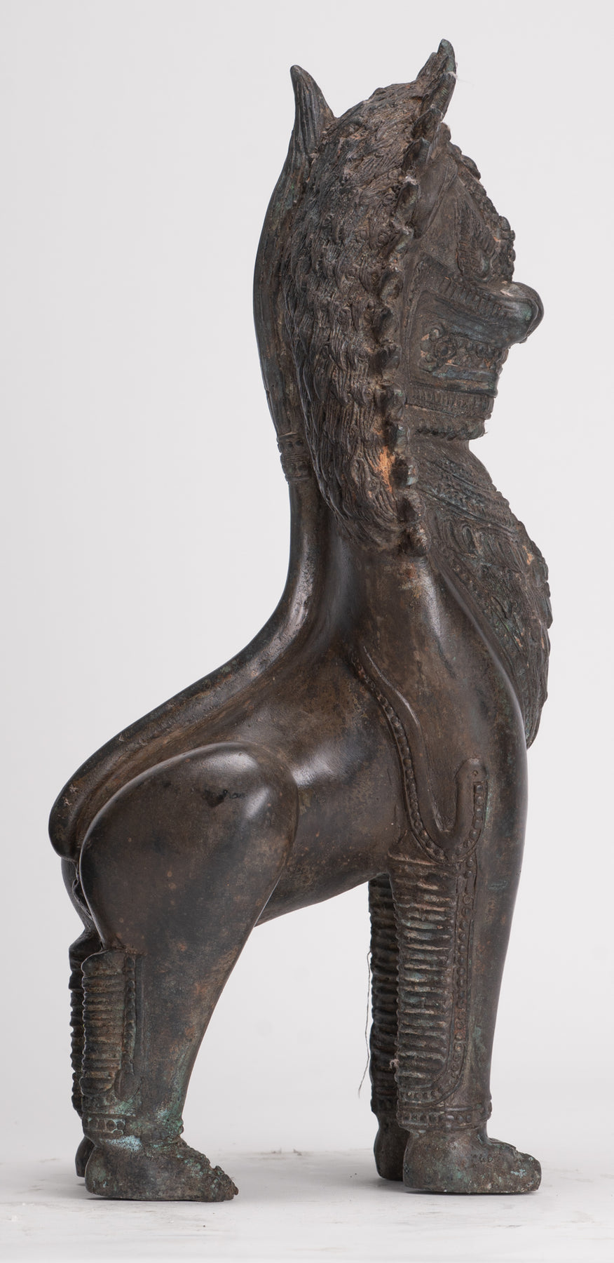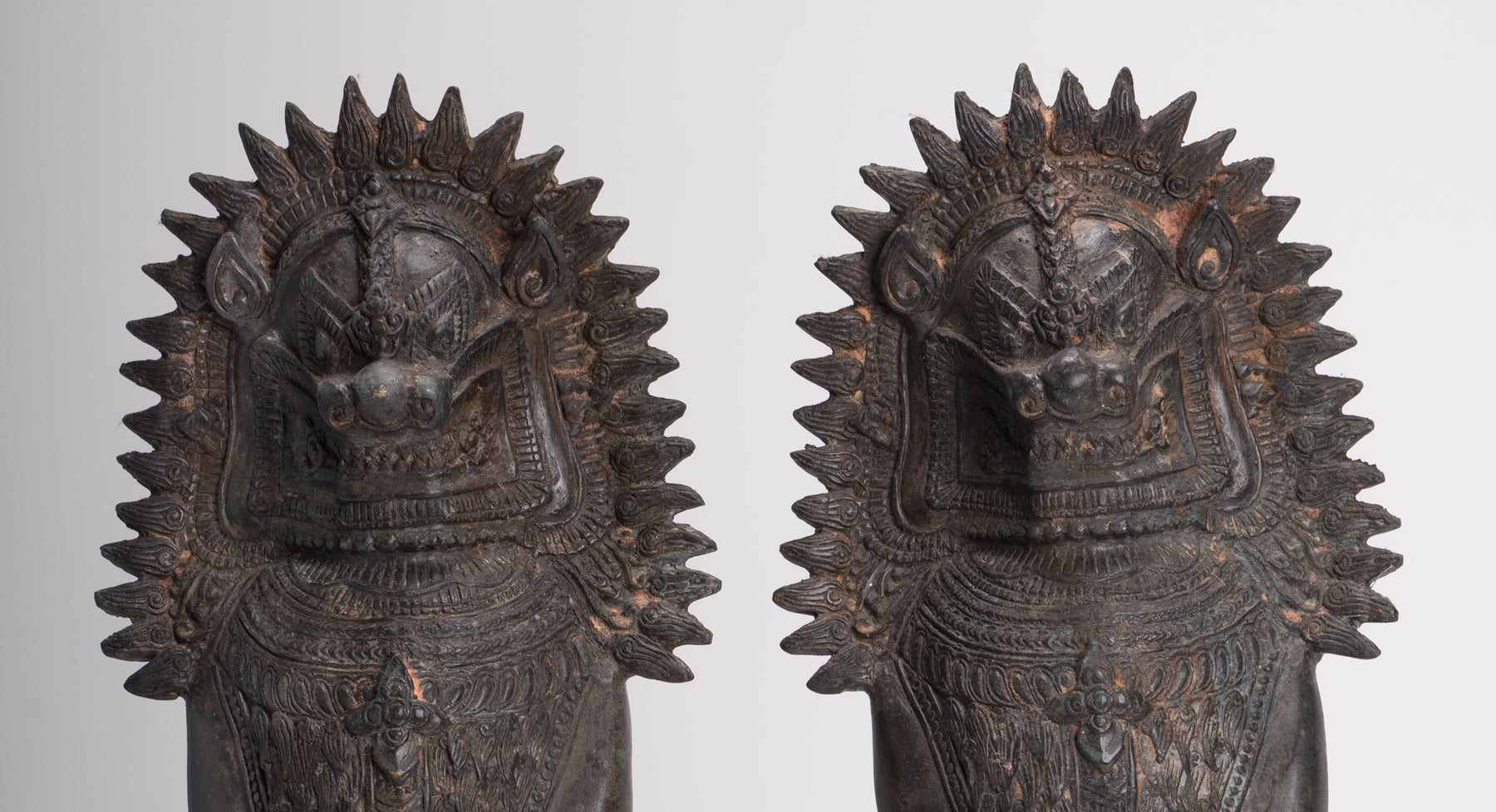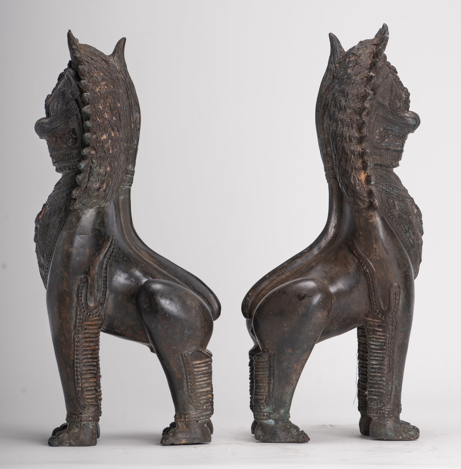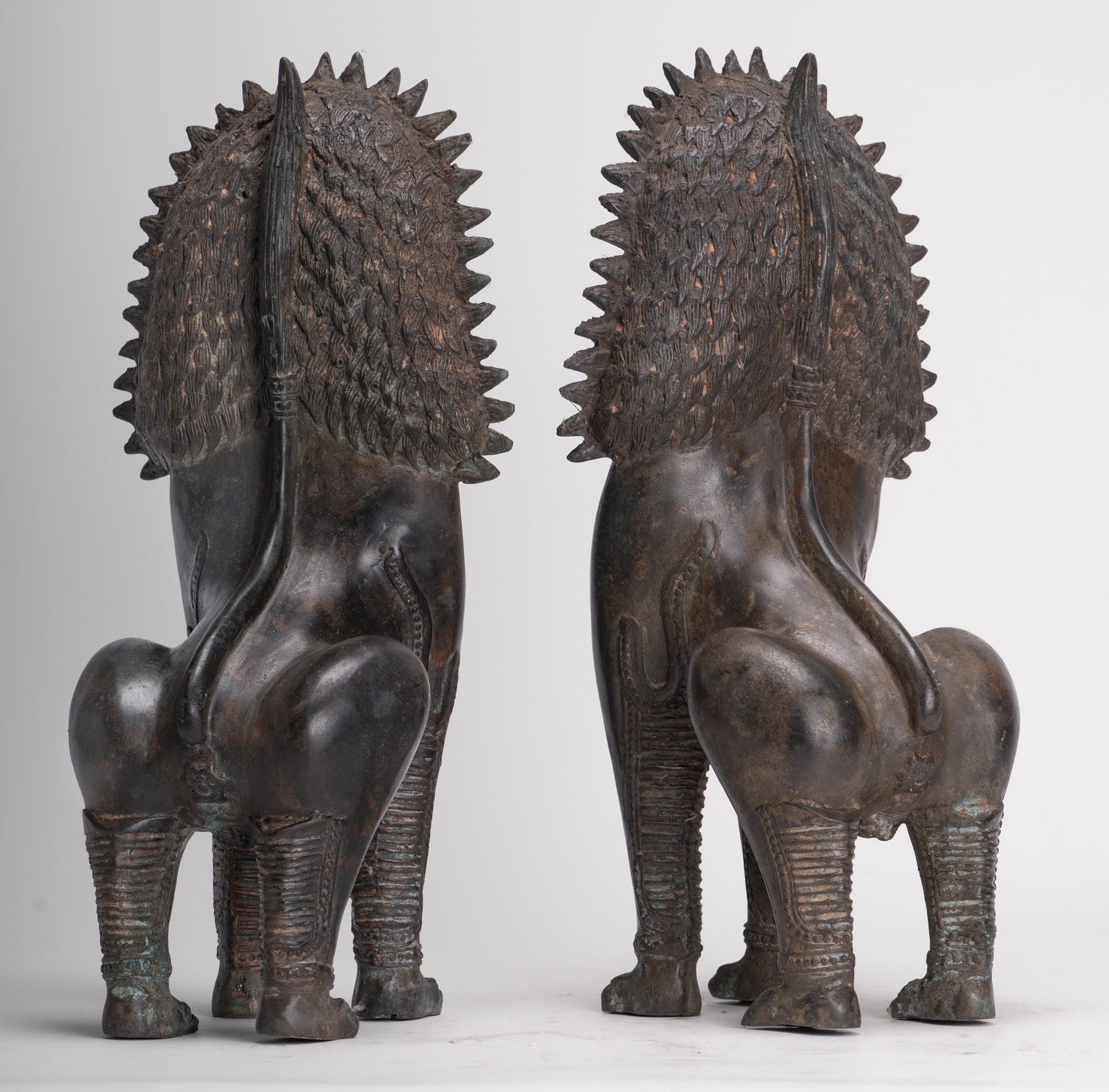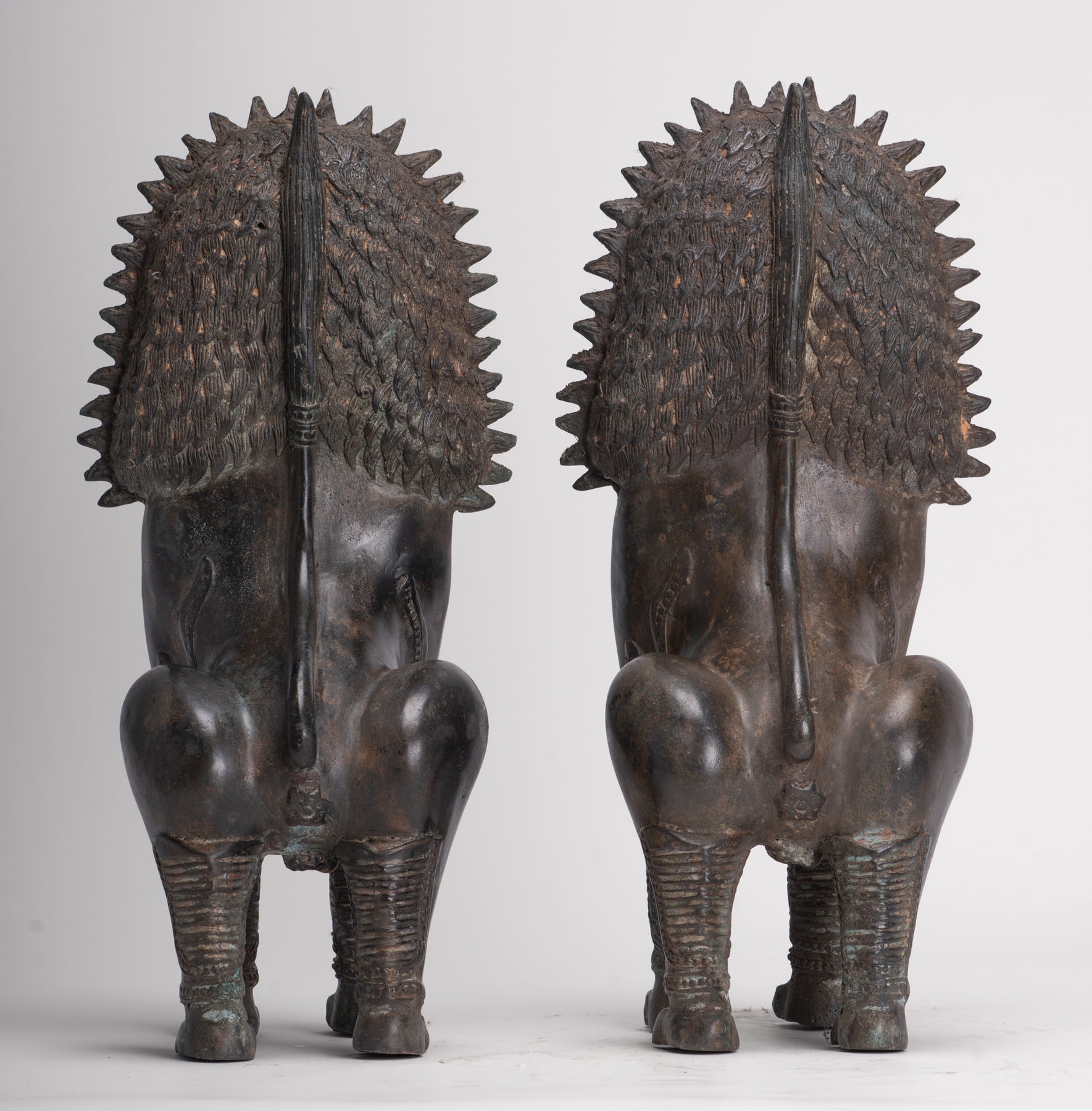Leone del tempio - Guardiani o leoni del tempio Singha in bronzo in stile tailandese antico - 41 cm/16" (coppia)