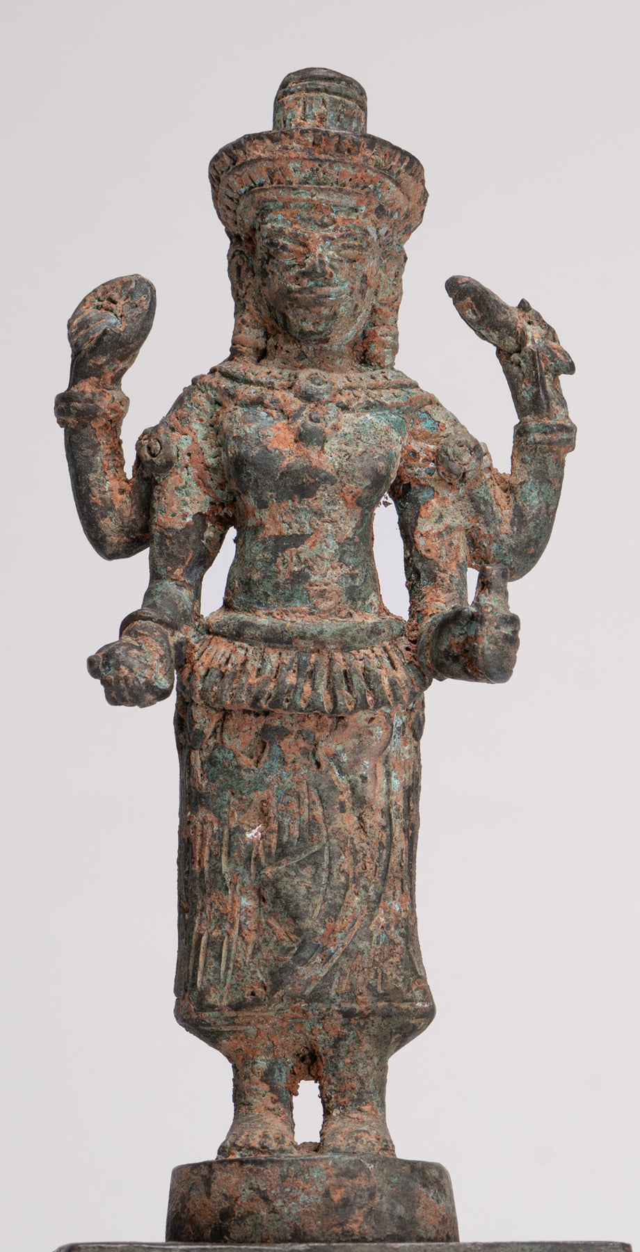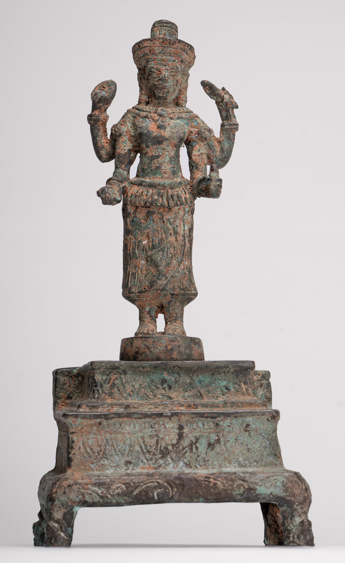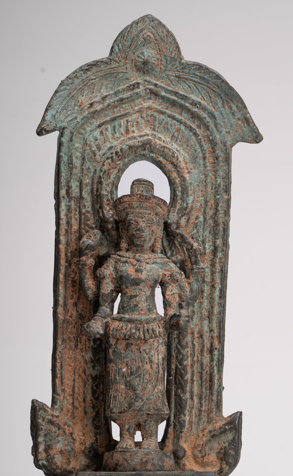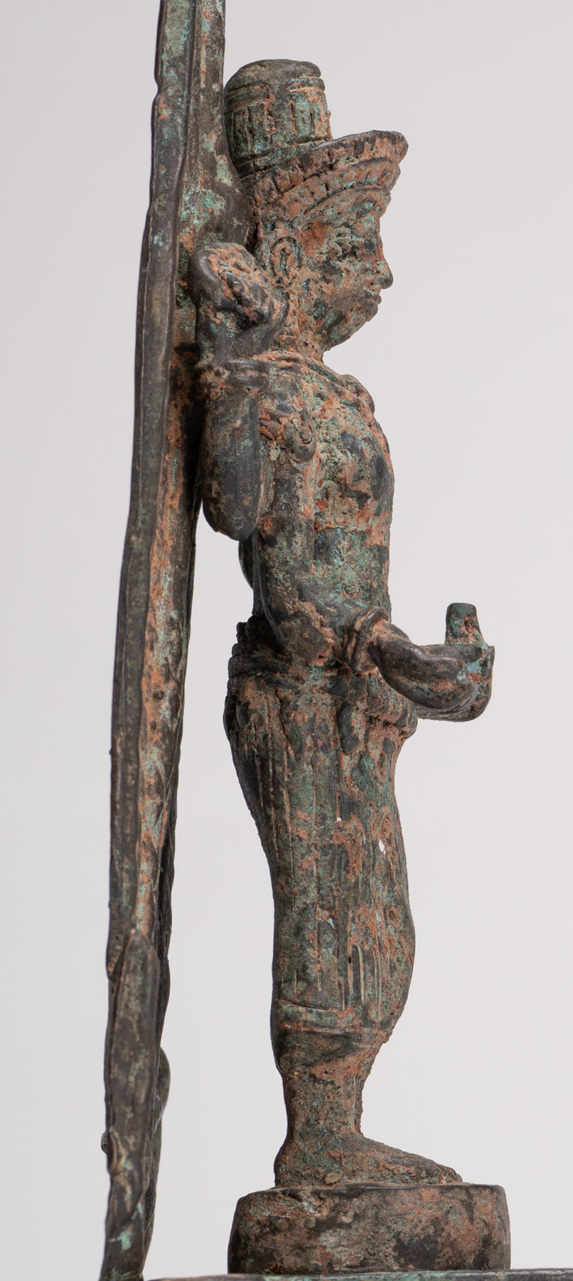 Un'antica scultura in bronzo tailandese di Vishnu sul trono in stile Lopburi del XVII secolo, dall'arte asiatica HD.