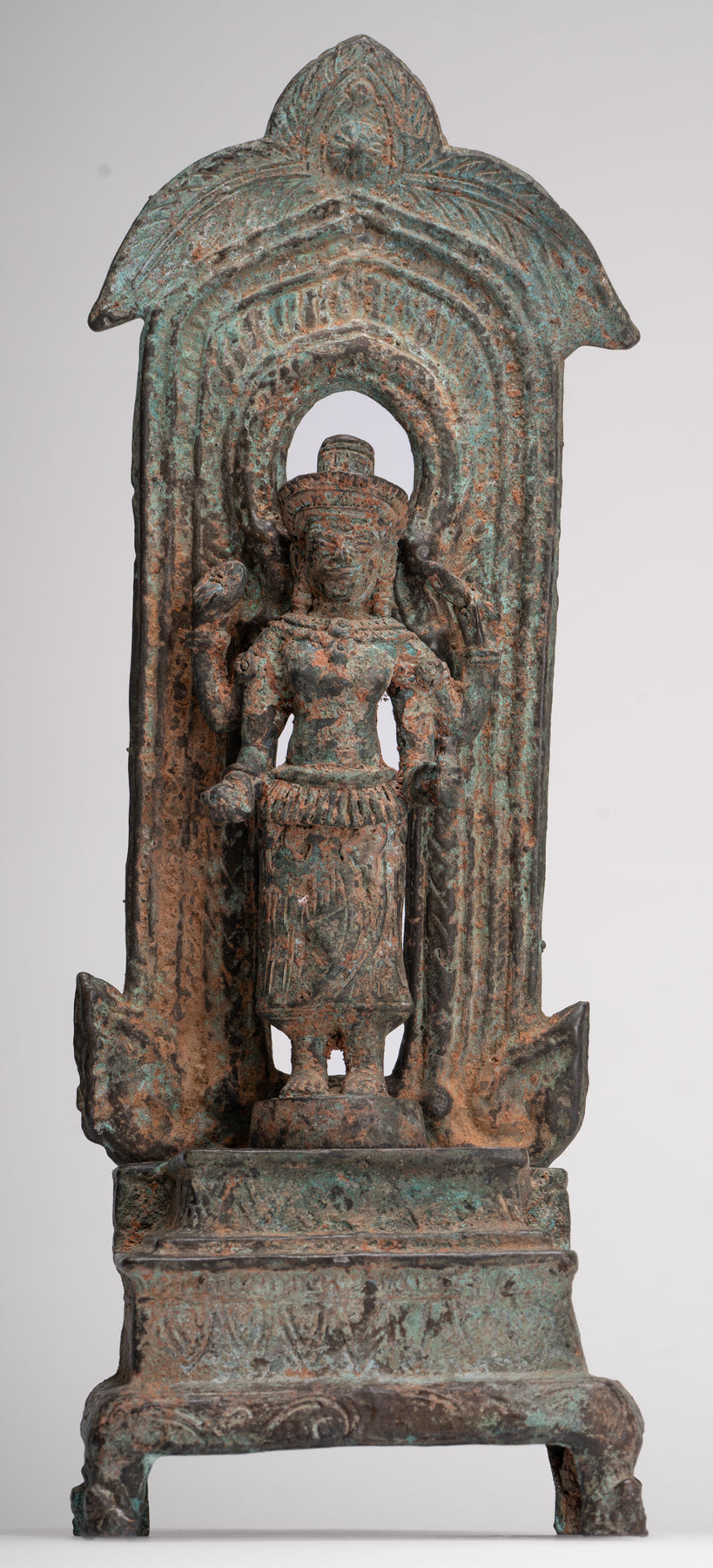 Statua antica di Vishnu in trono in bronzo tailandese in stile Lopburi - 40 cm/16"