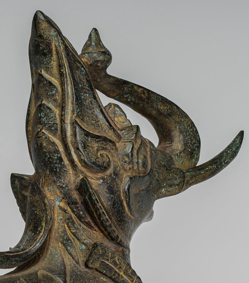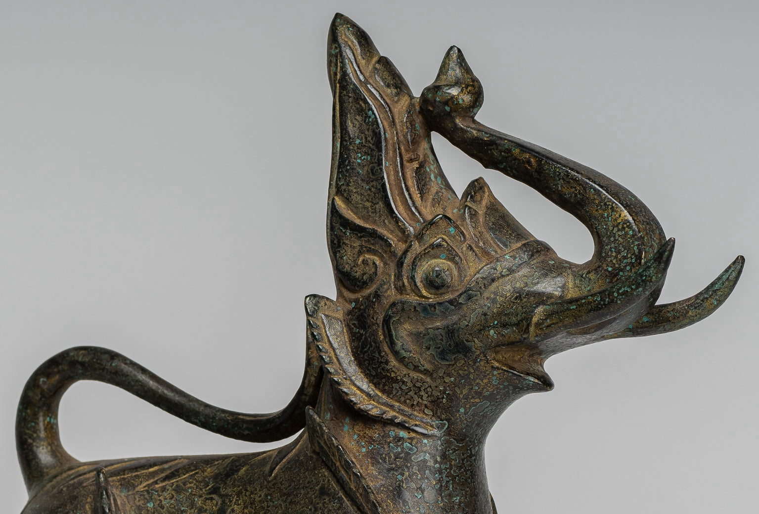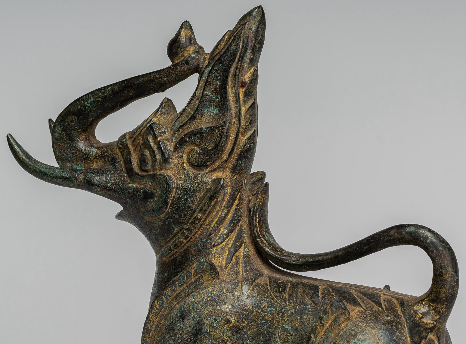Bronzo di bronzo bronico antico Bronzo in piedi Chinthe Guardian Temple Lion - 29 cm/12 "