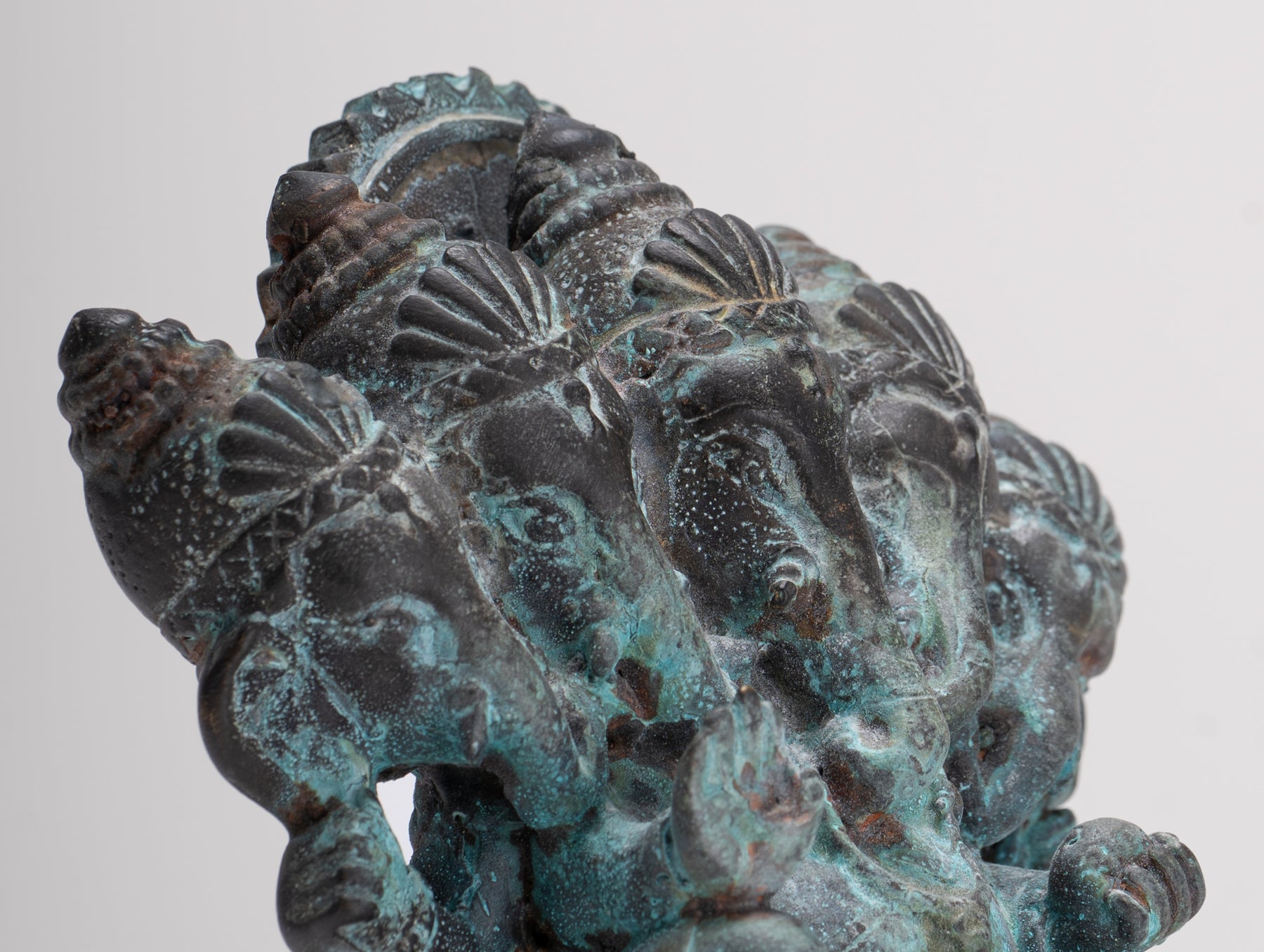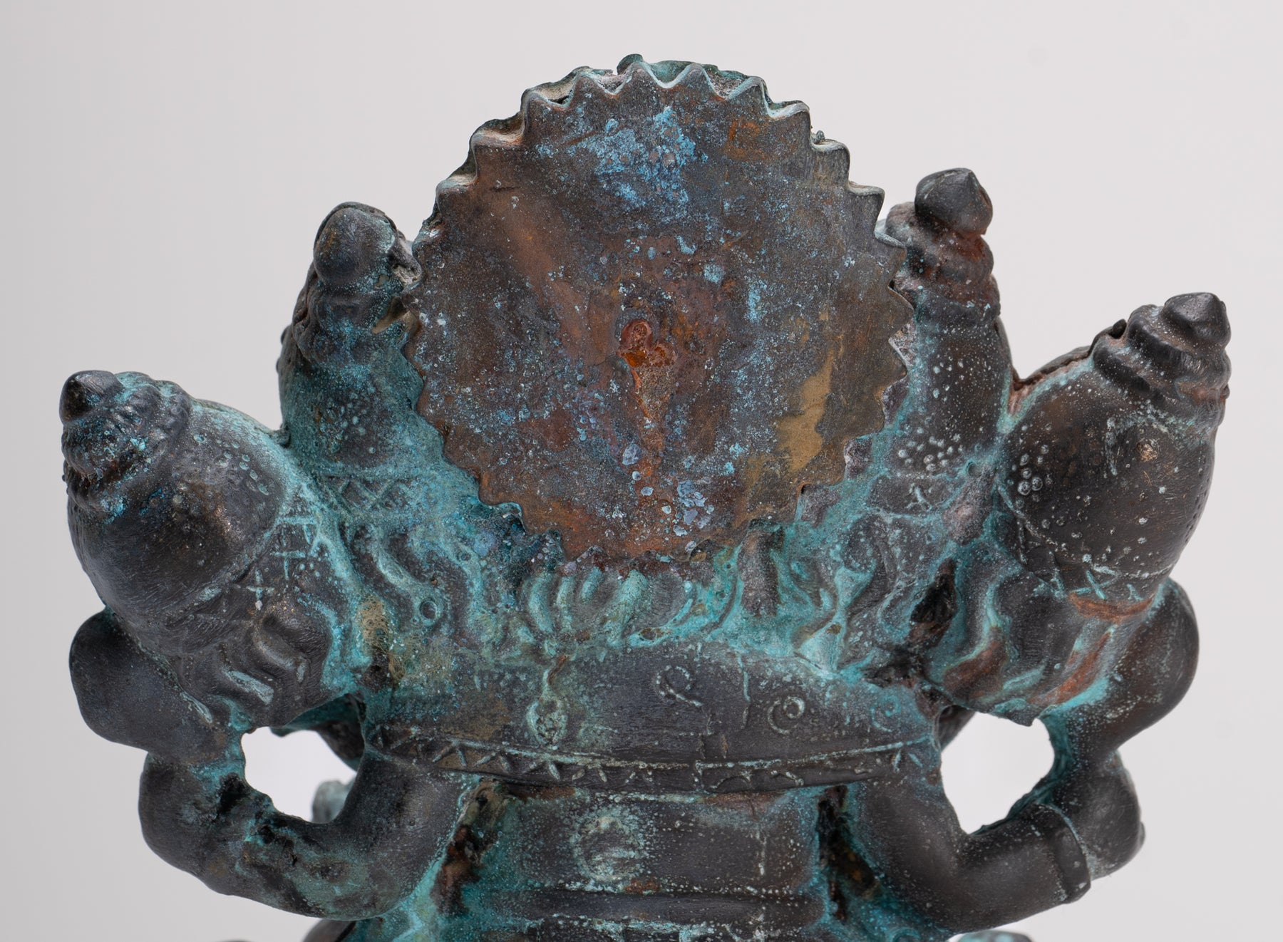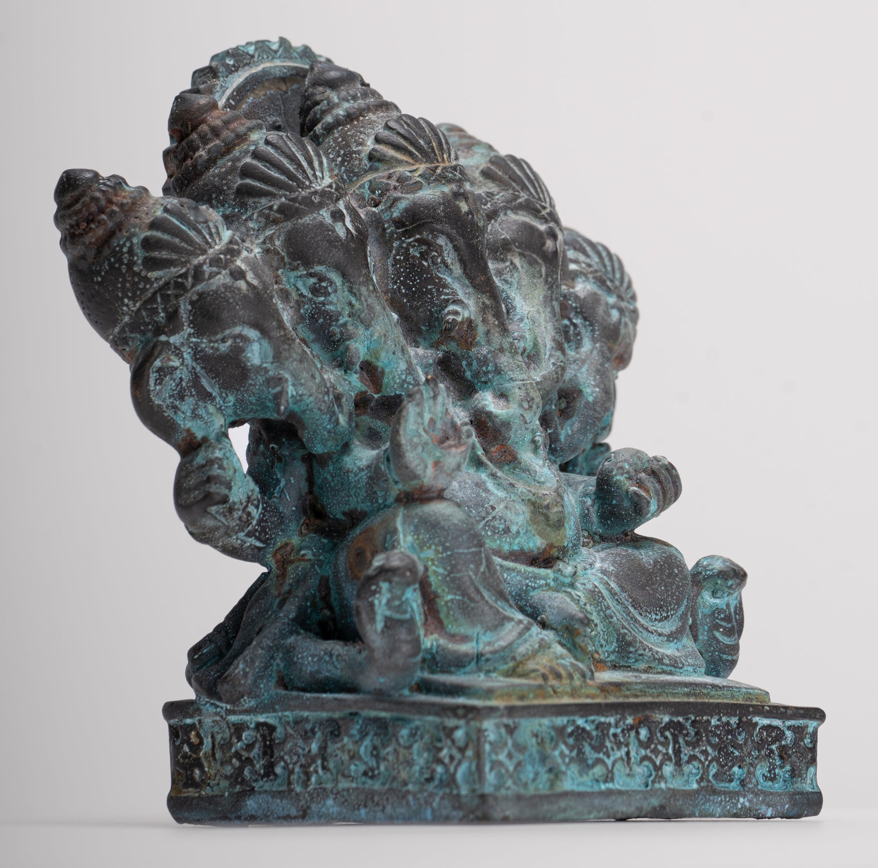 Ganesh - Statua antica di Heramba Ganapati seduto in bronzo in stile tailandese - 12,5 cm/5"