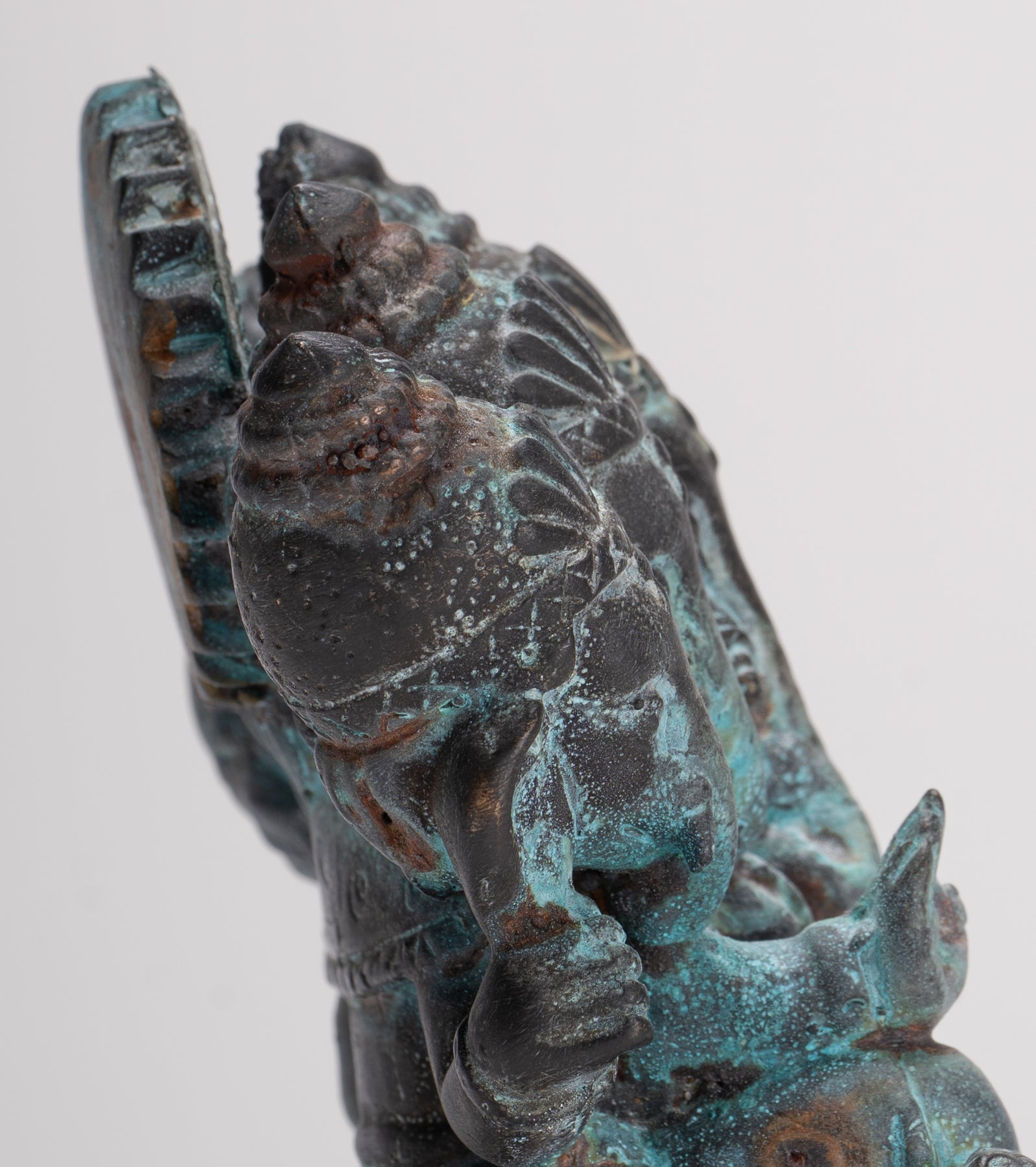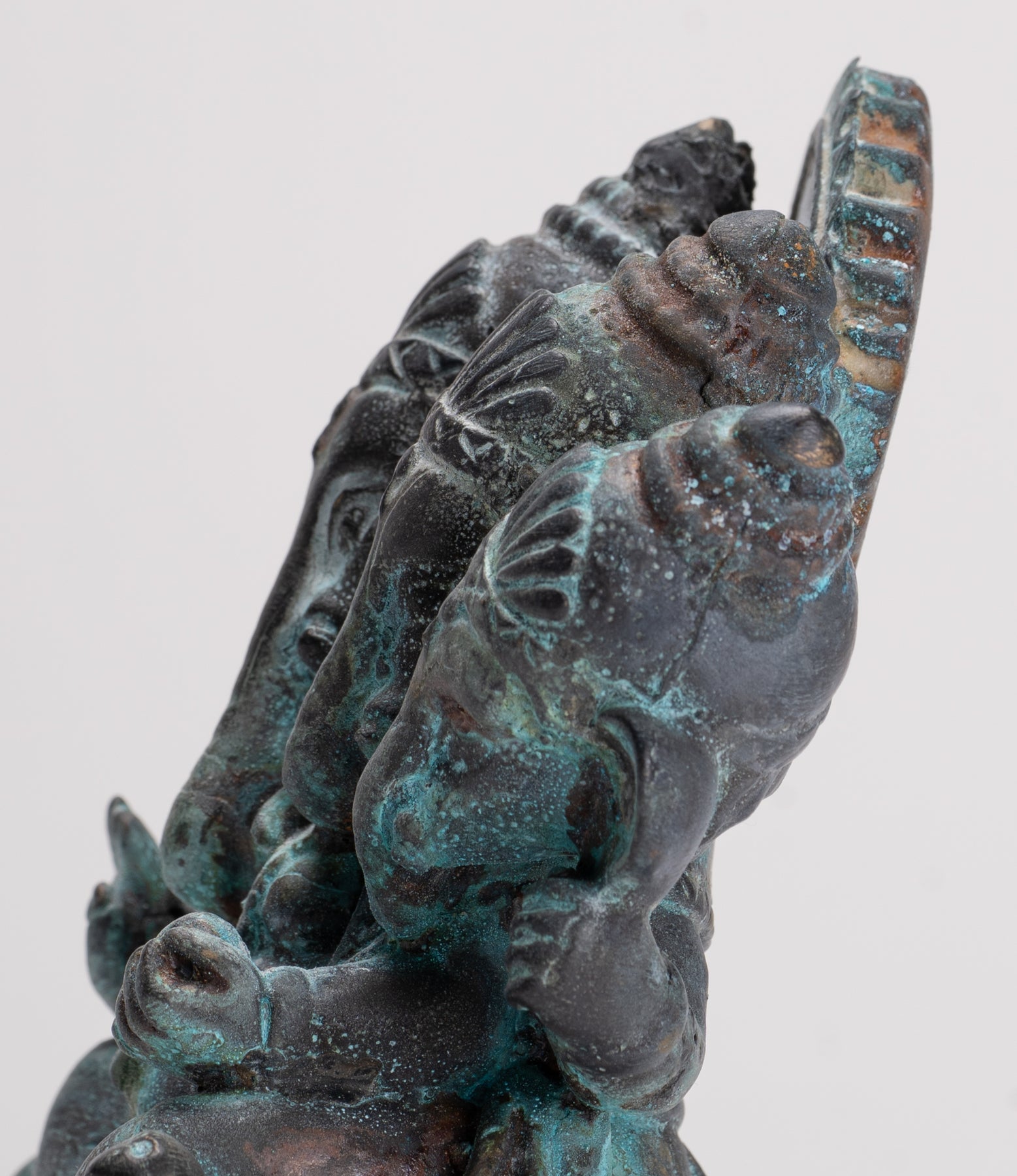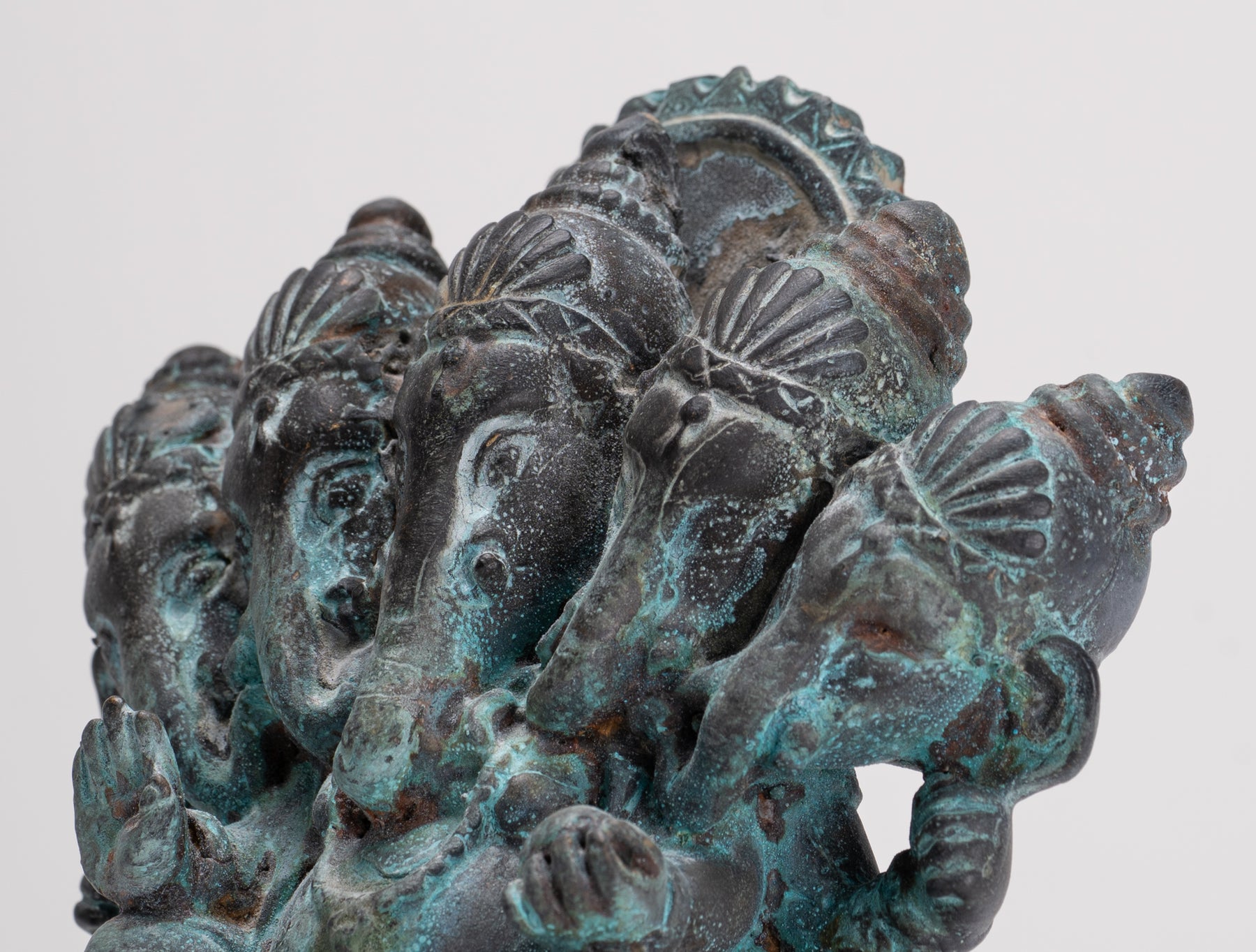 Ganesh - Statua antica di Heramba Ganapati seduto in bronzo in stile tailandese - 12,5 cm/5"