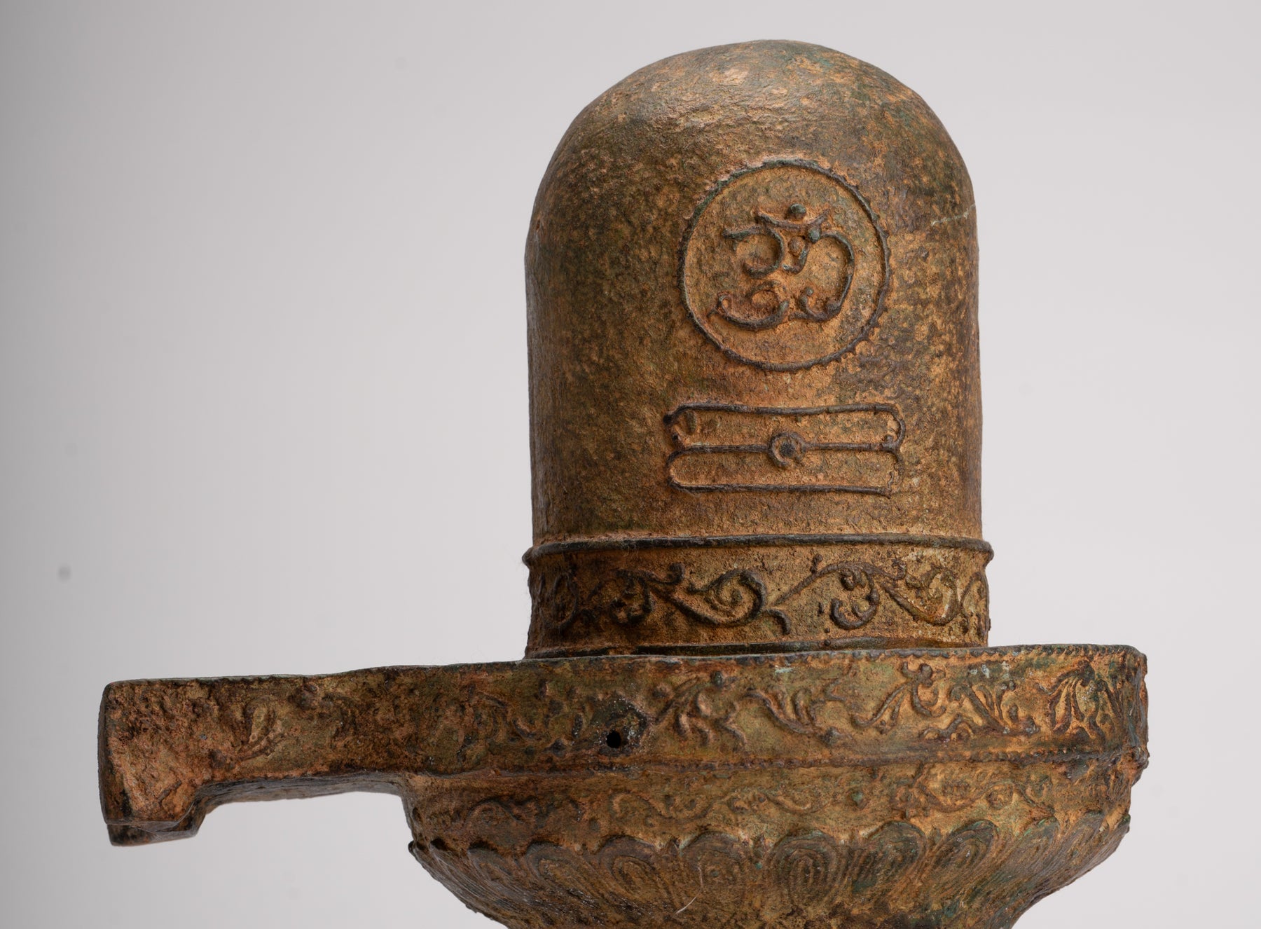 Un linga di bronzo in stile indiano antico di buon qualità con yoni.
