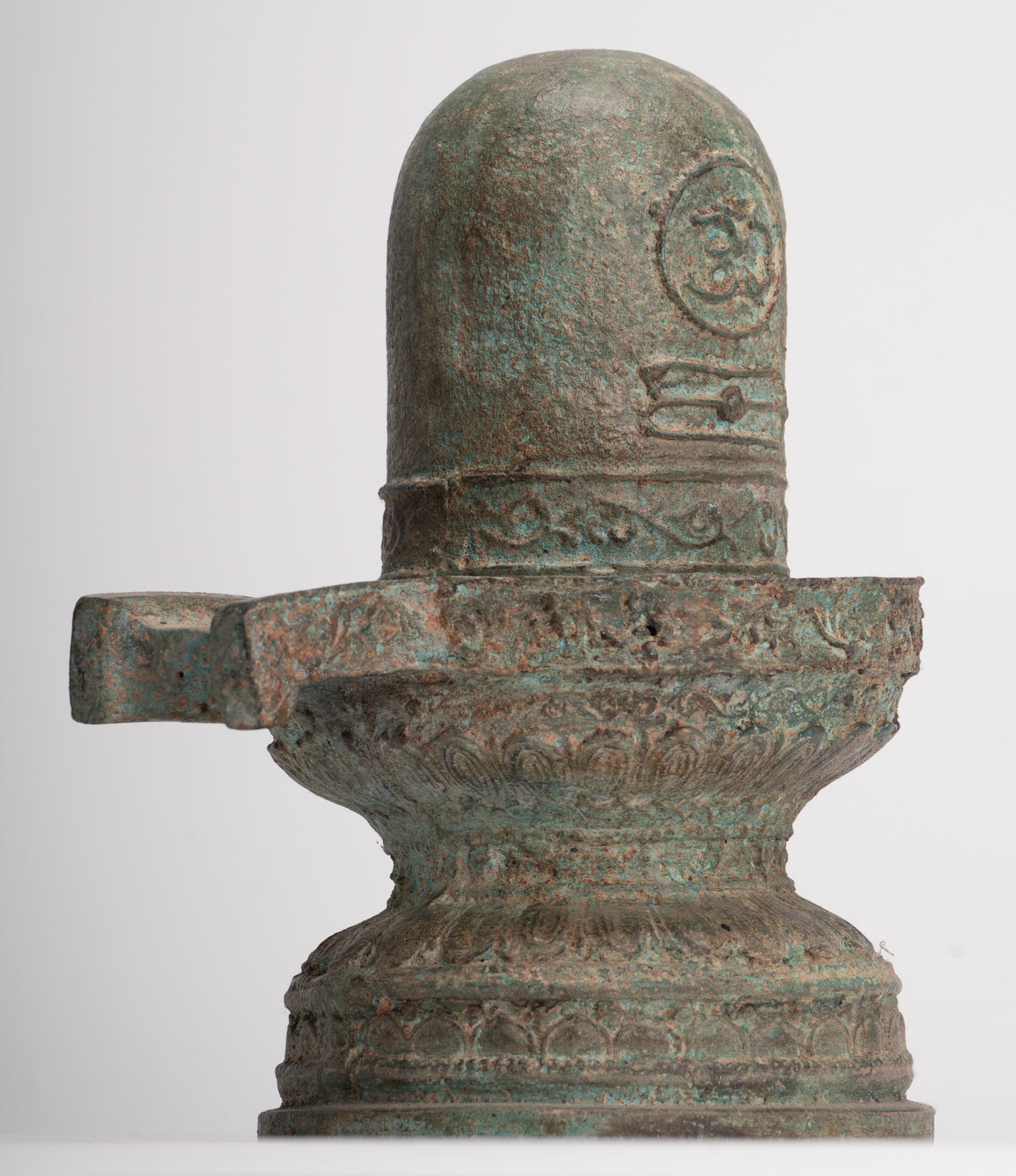 Un oggetto d'antiquariato di alta qualità Linga in bronzo in stile indiano con yoni, questa scultura incarna un profondo simbolismo spirituale radicato nella tradizione indù. Una rappresentazione senza tempo di fertilità, energia e creazione divina, il linga serve come manifestazione astratta o aniconica di Signore Shiva, la divinità suprema che trascende forma e attributi. Nella filosofia indiana tradizionale, il linga è venerato come il simbolo del potenziale illimitato di Shiva e dell’energia cosmica, l’essenza stessa dell’esistenza stessa.