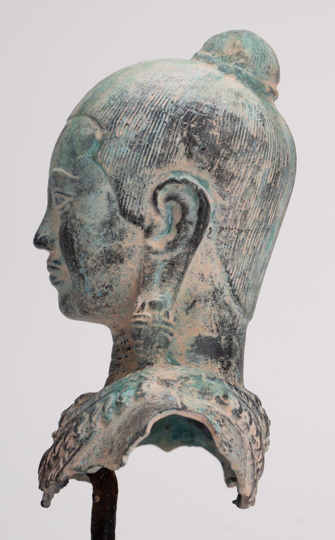 Il casting di questo pezzo è bello come puoi vedere nei dettagli del viso. Ogni dettaglio è reso perfettamente. La patina distintiva del pezzo è anche particolarmente deliziosa.