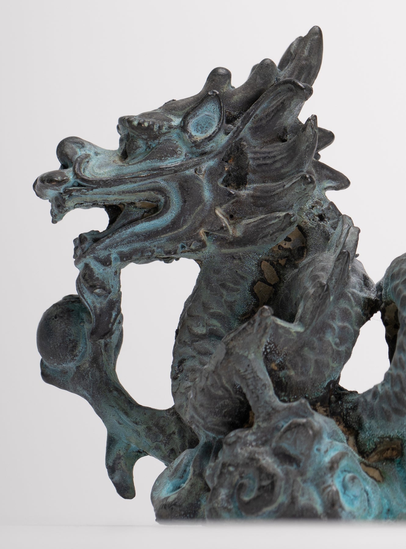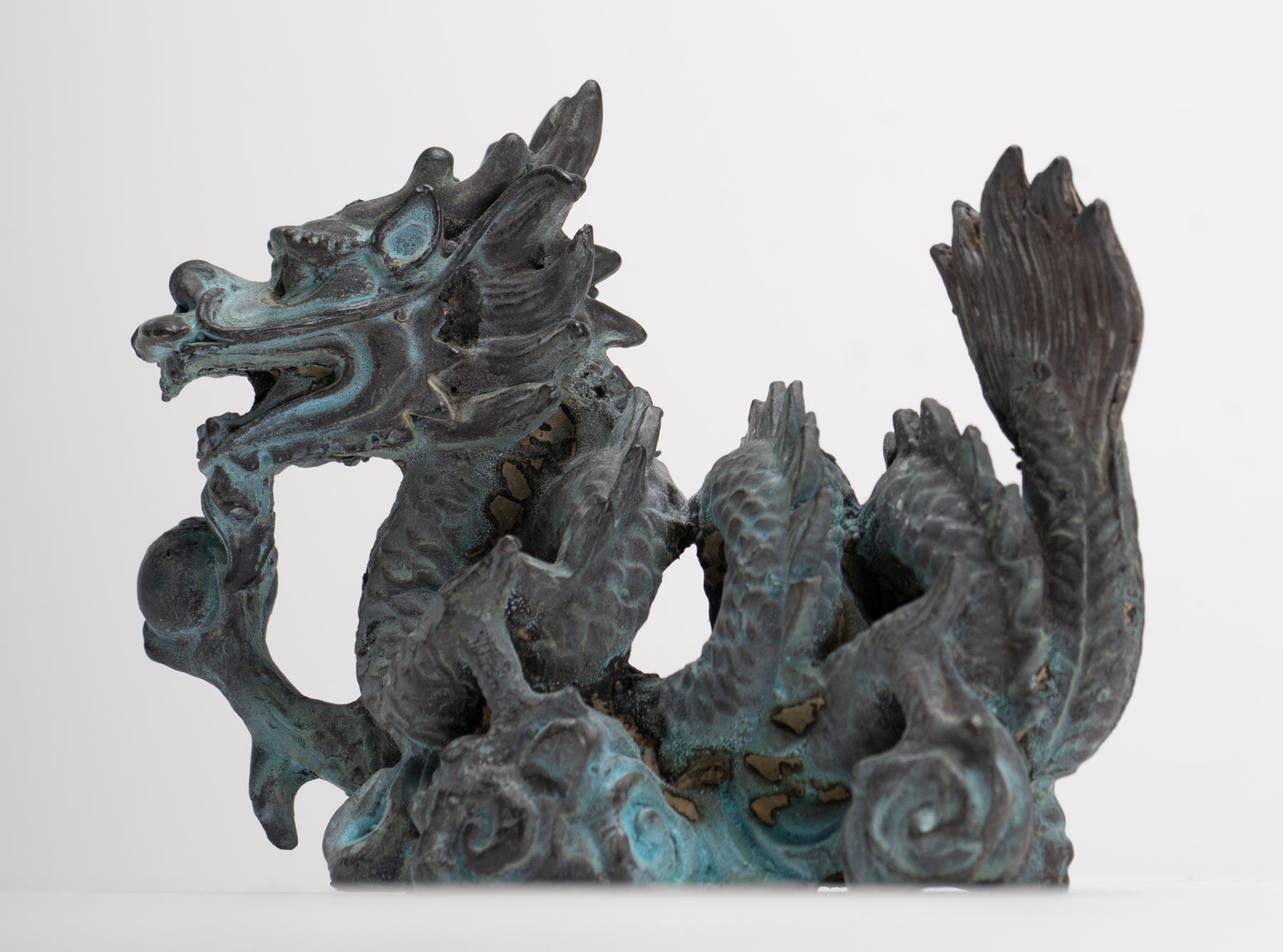 Un antico drago di bronzo in stile cinese.