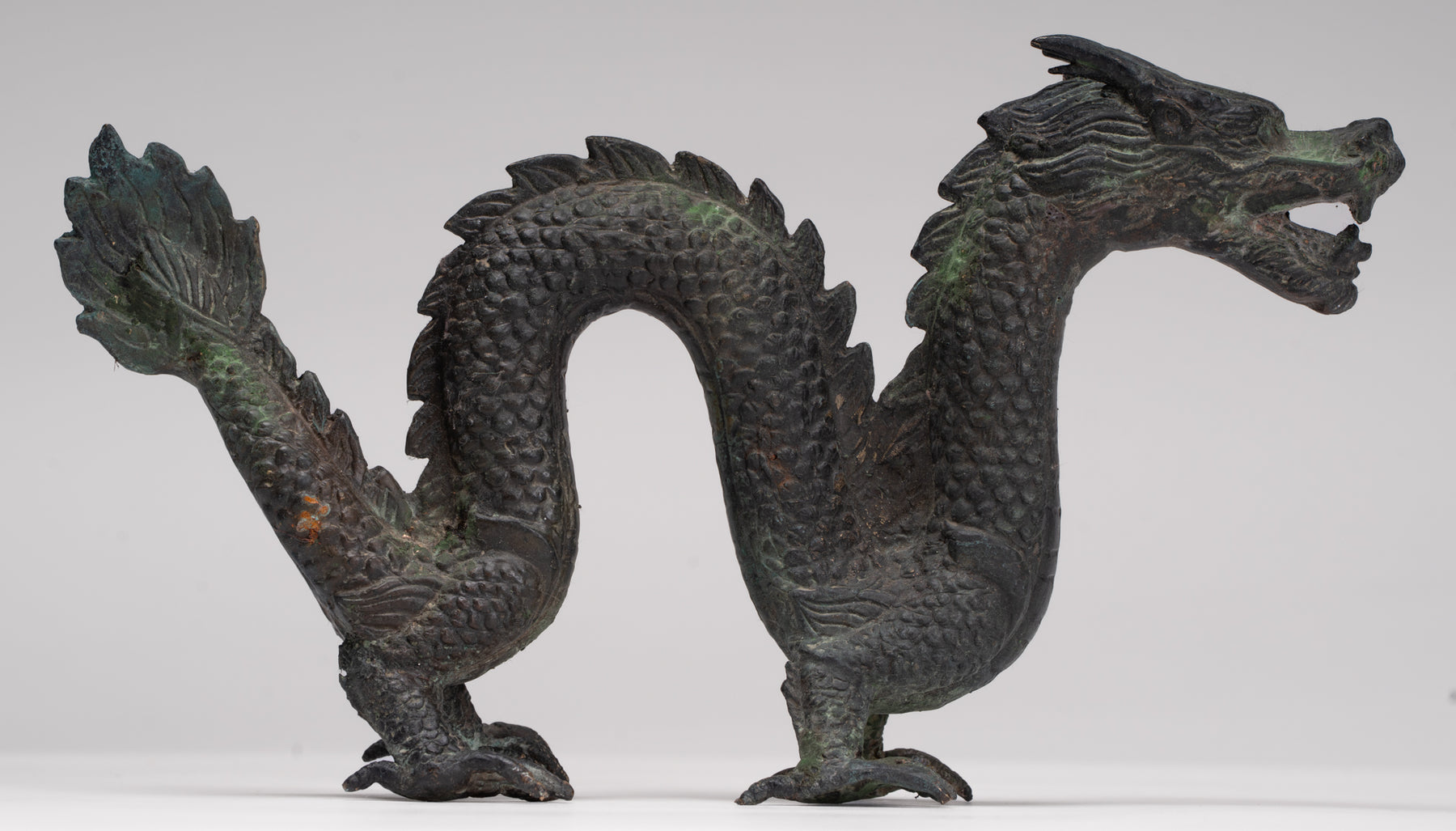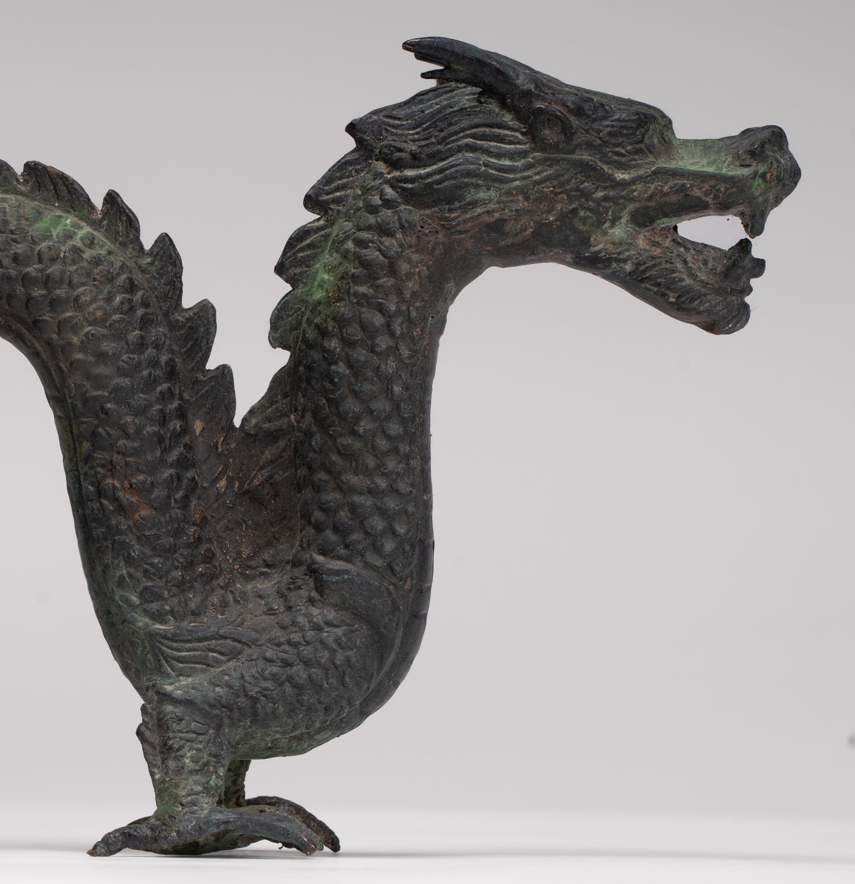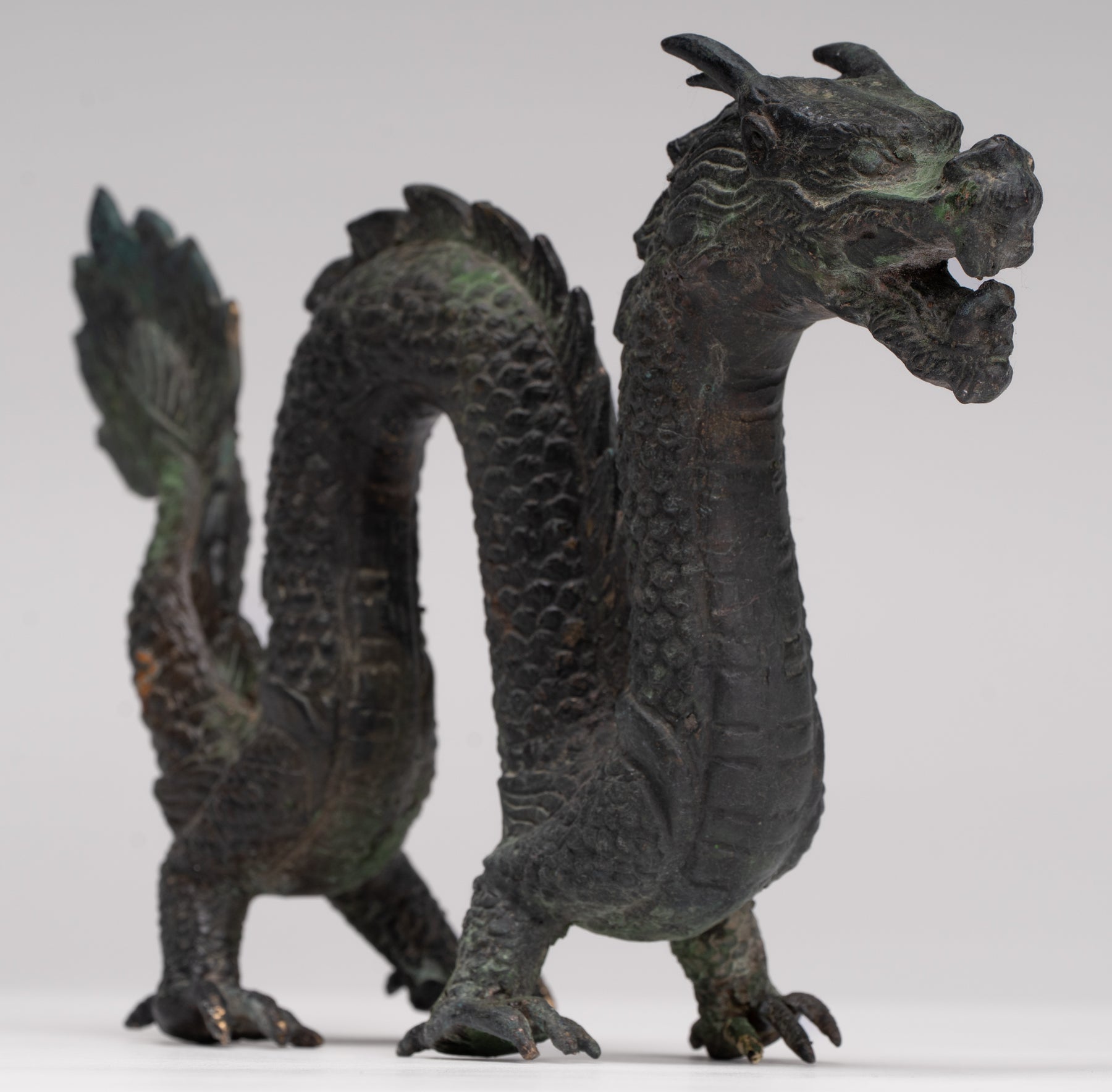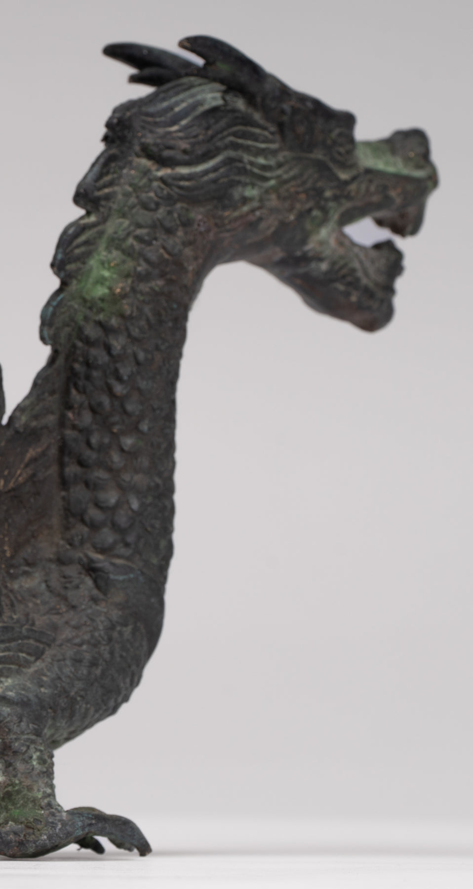 • Statua antica del drago in bronzo in stile cinese - 16 cm/6"