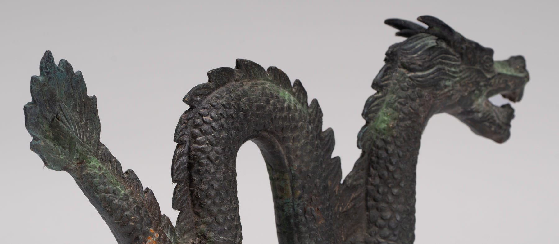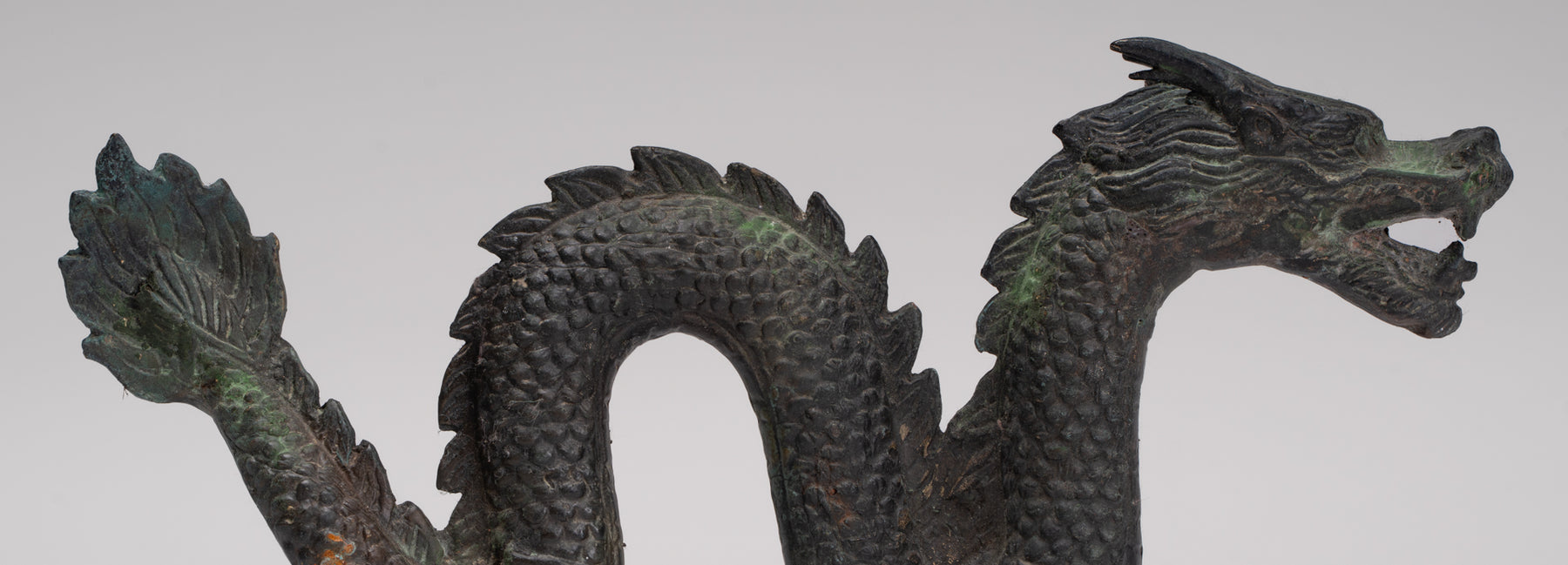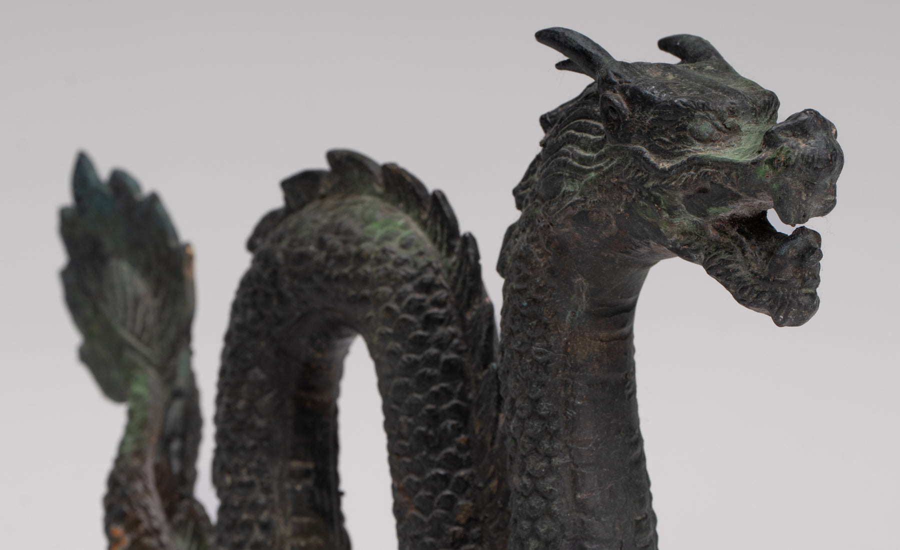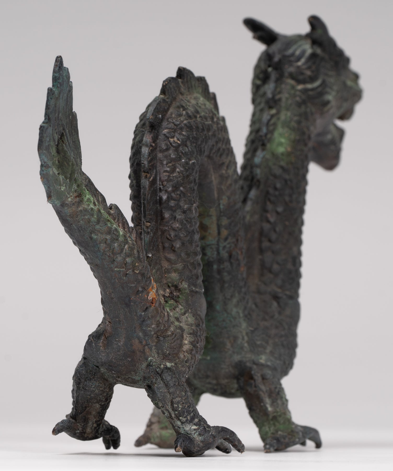 • Statua antica del drago in bronzo in stile cinese - 16 cm/6"