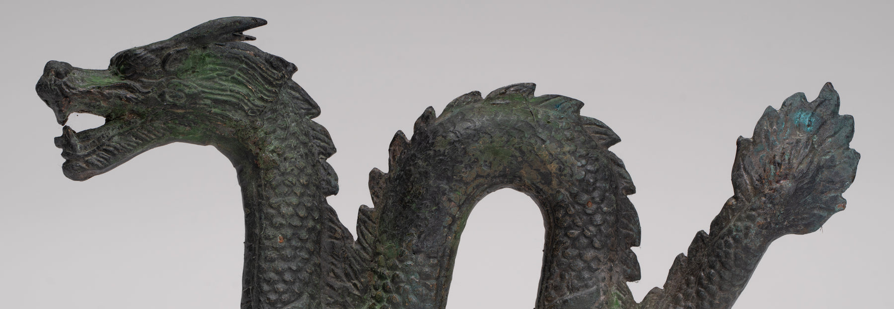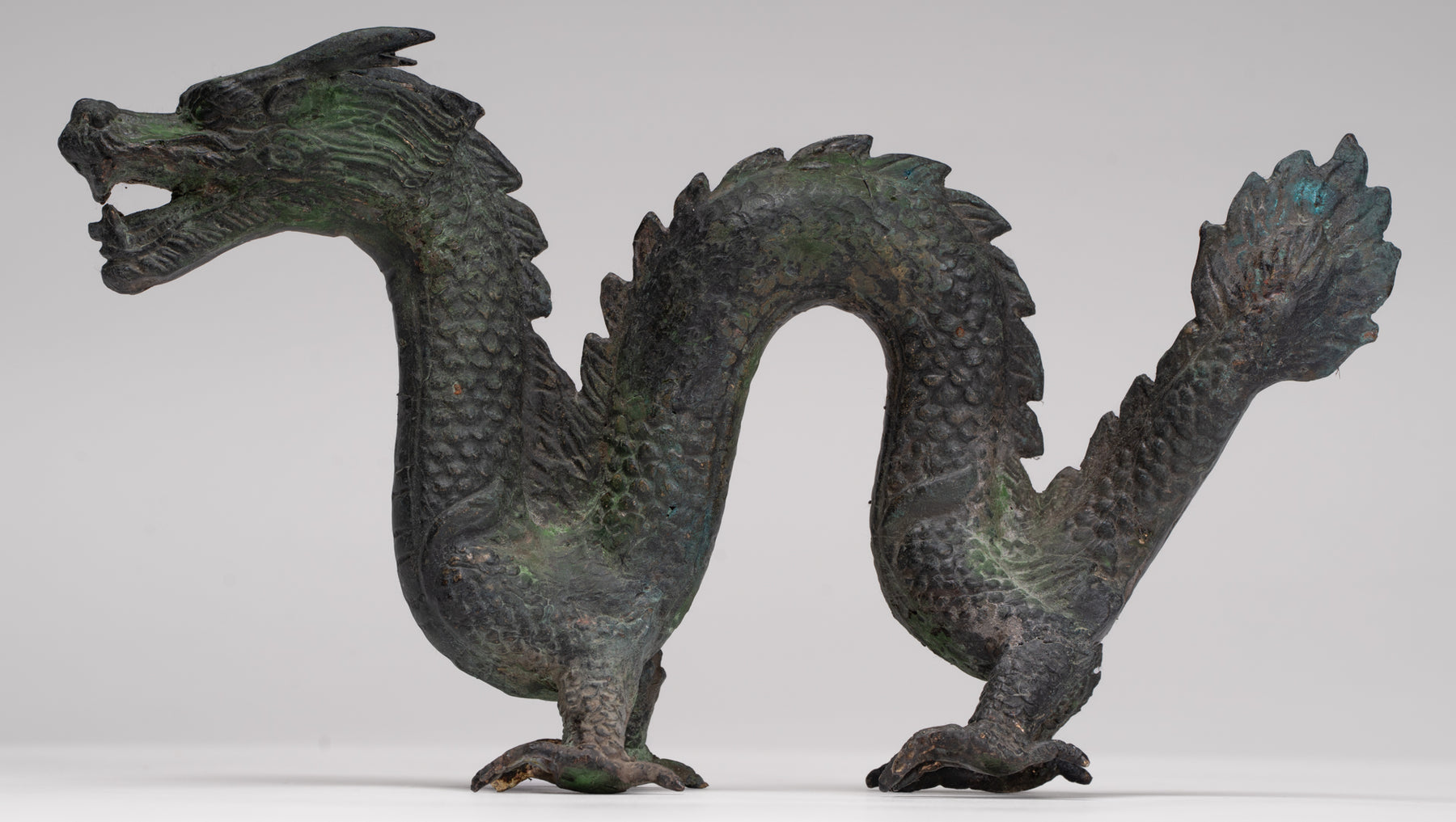 Statua antica del drago in bronzo in stile cinese - 16 cm/6"