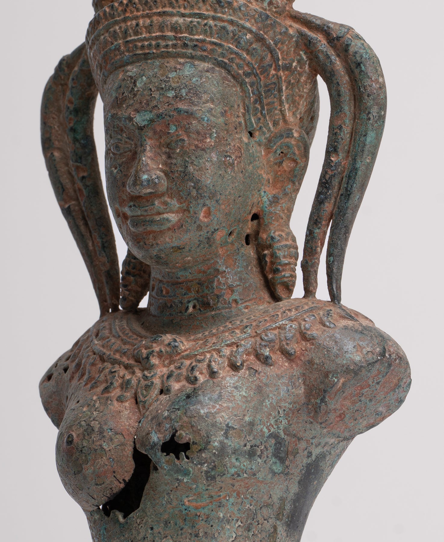 Un antico Apsara in bronzo in stile Khmer o torso di angelo celeste in stile Angkor Wat.