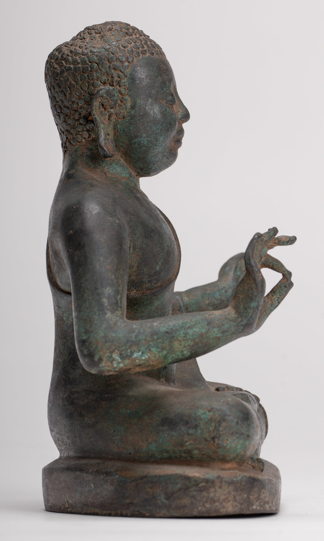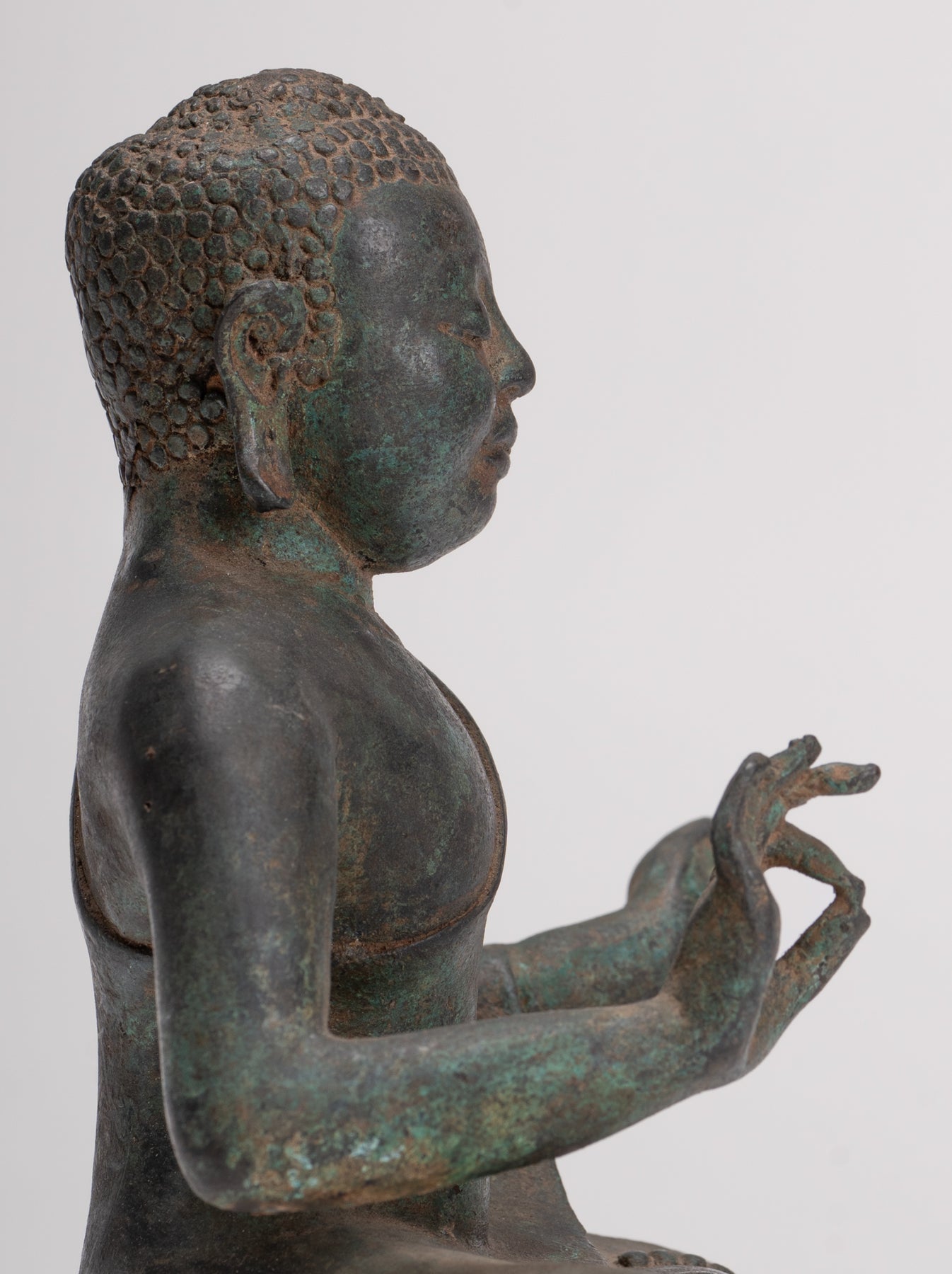 Statue Buddha - Antique Sri Lanka Style Bronze Seduto Buddha Statua - 16 cm/6 "