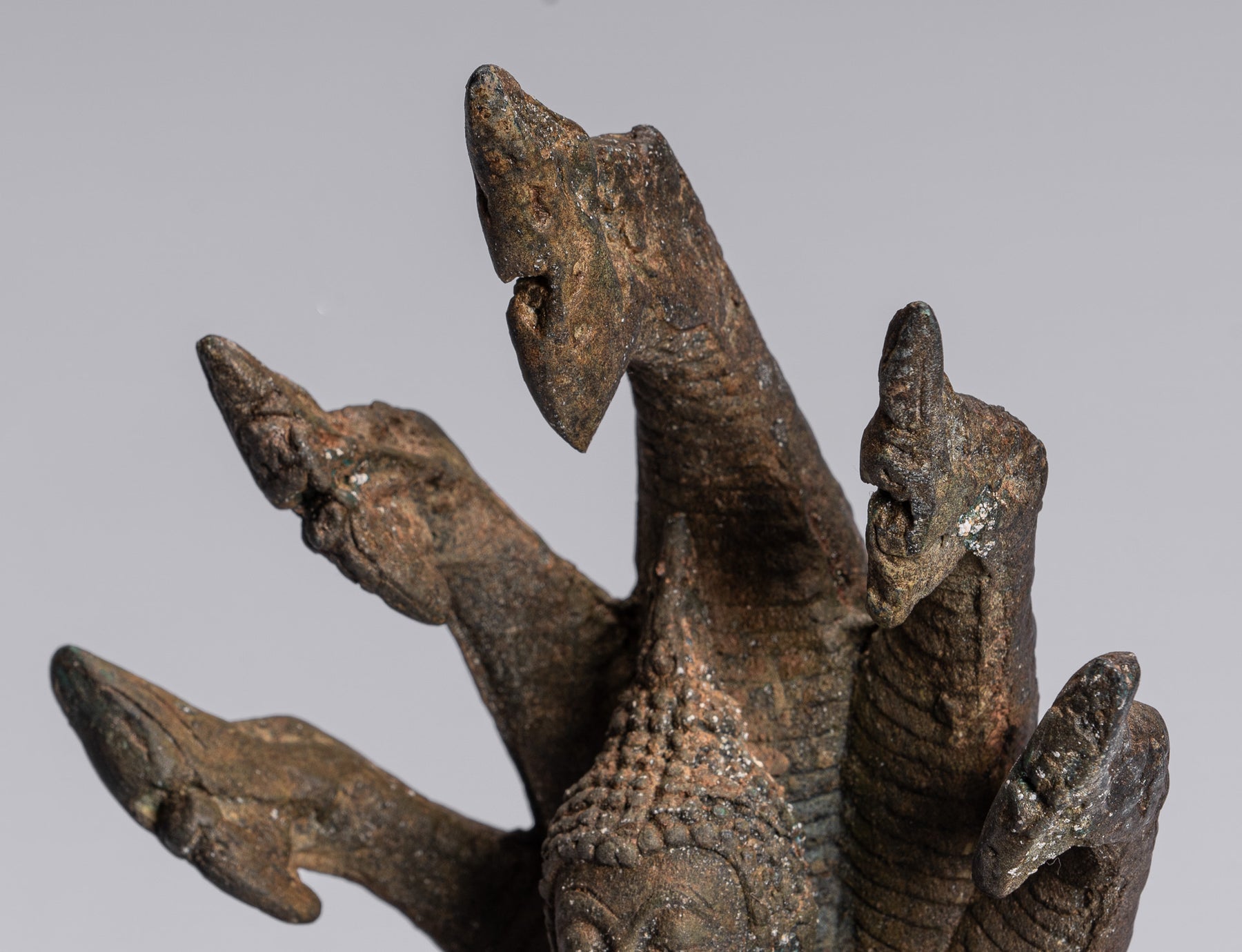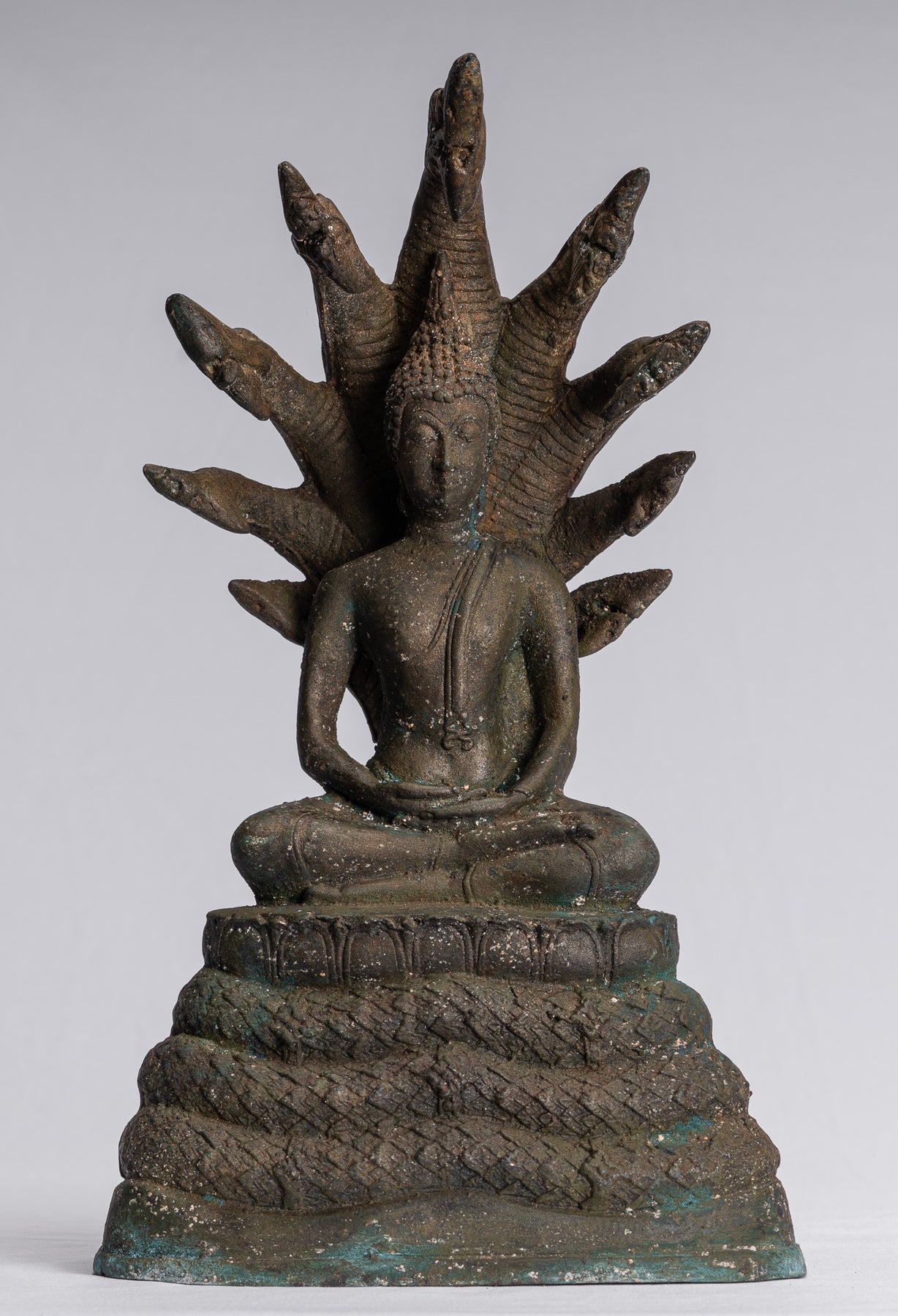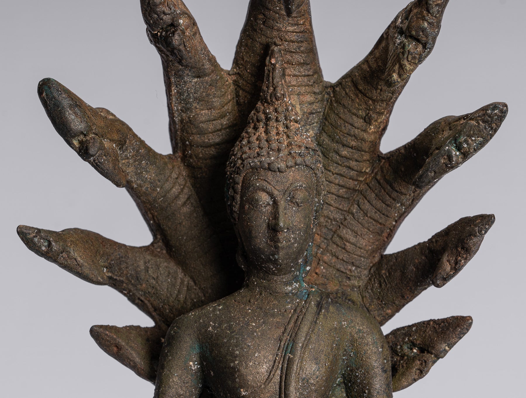Bronzo antico sukhothai Bronzo meditante Naga Buddha Statua - 32 cm/13 "