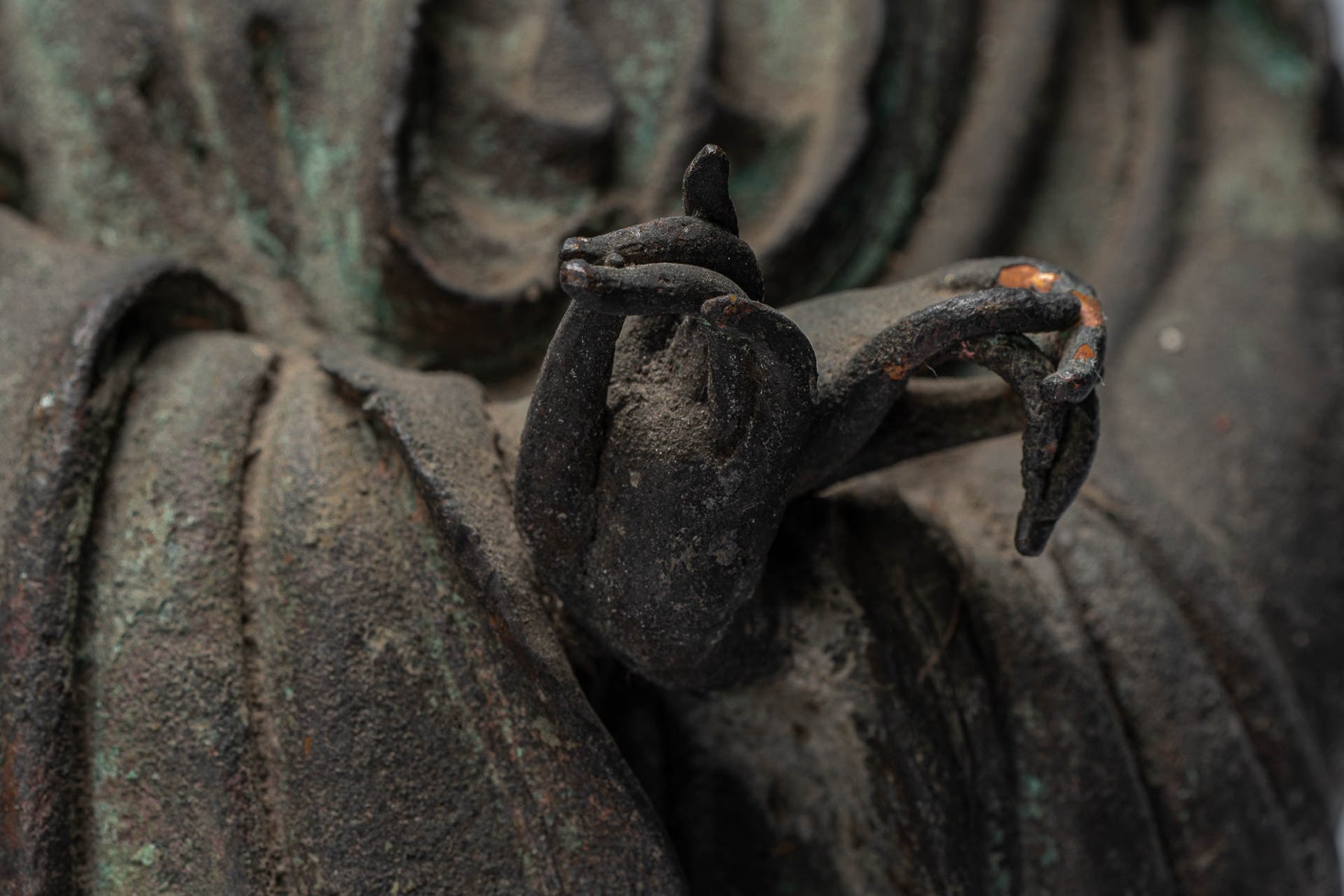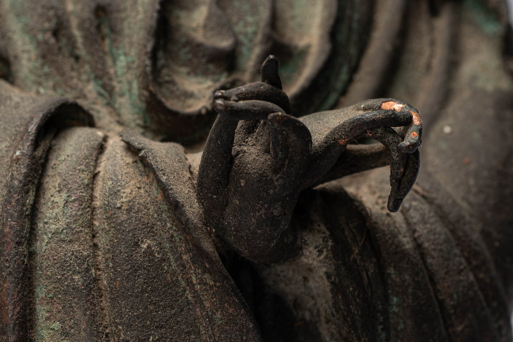 The sculpture appears to be cast from copper.