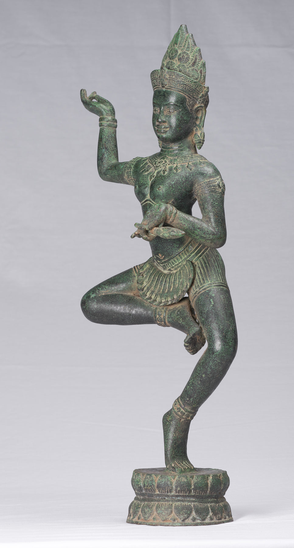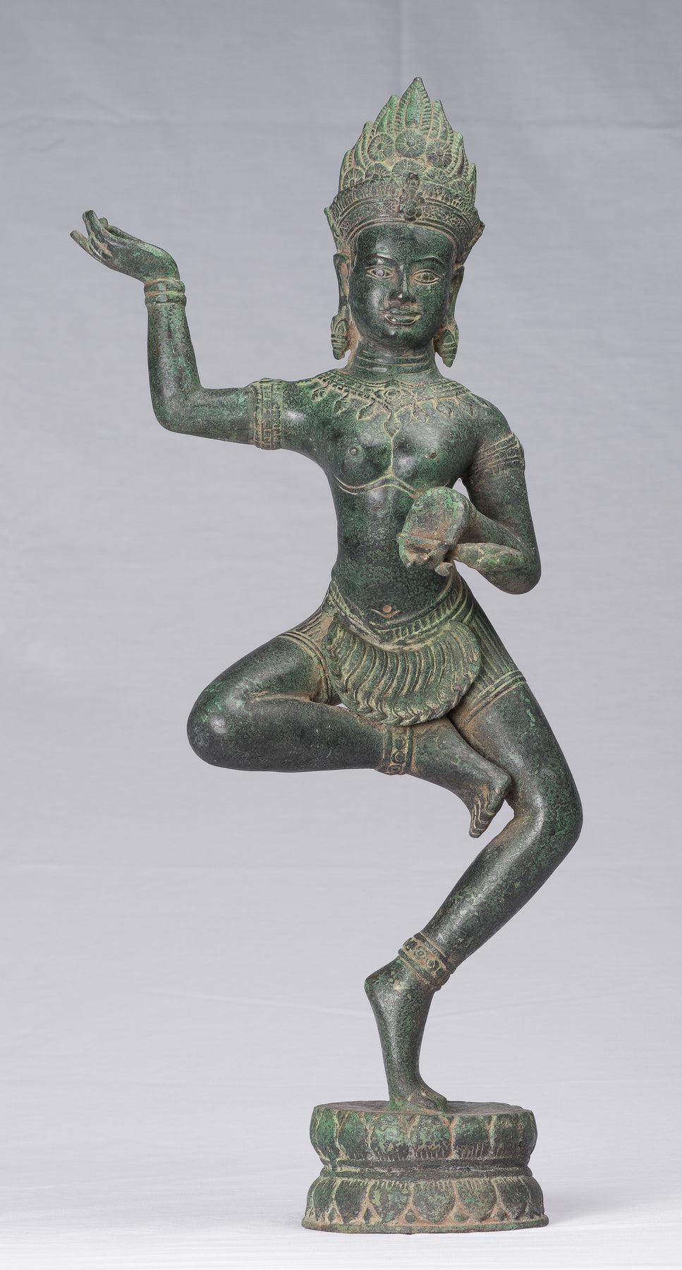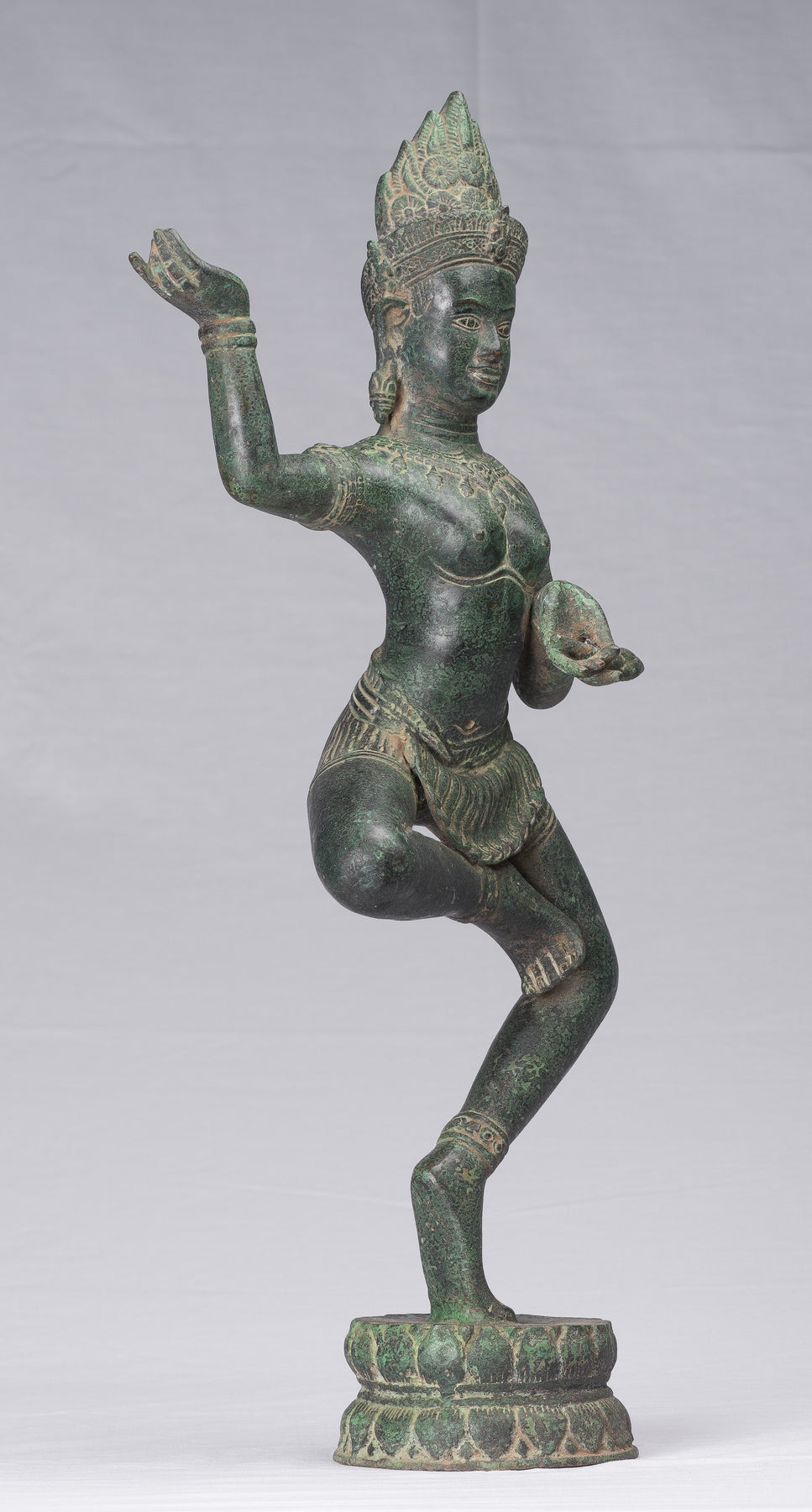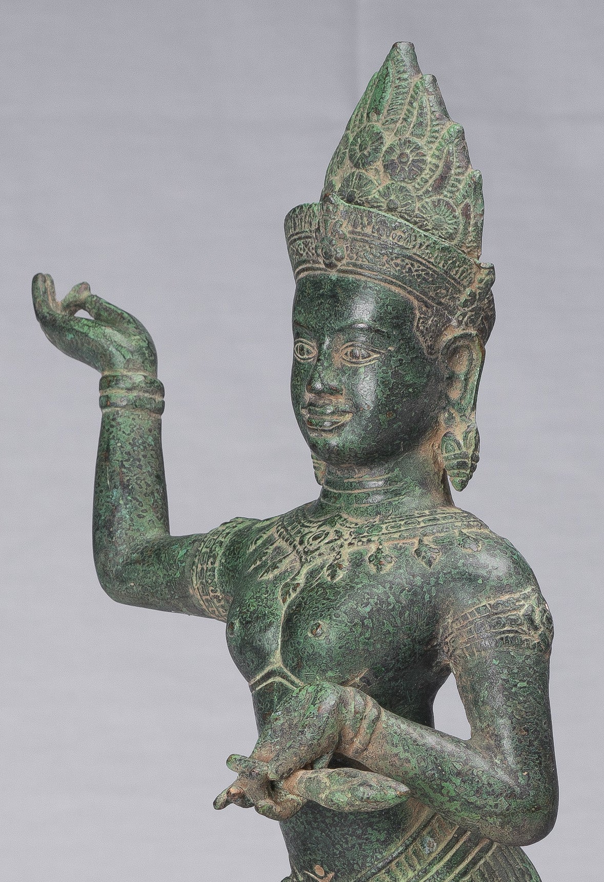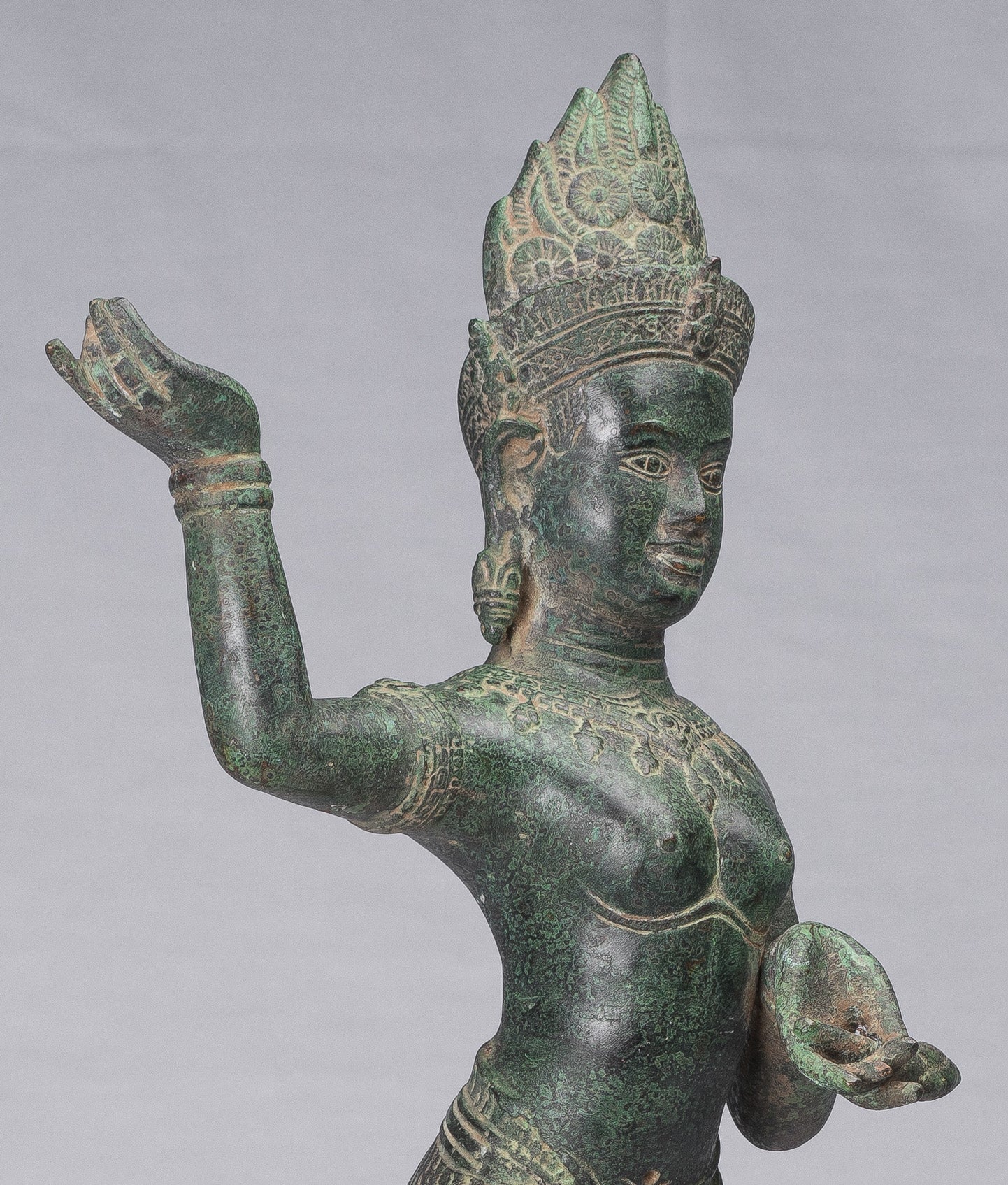 An antique Khmer style bronze Apsara or Heavenly angel in the Angkor Wat style.