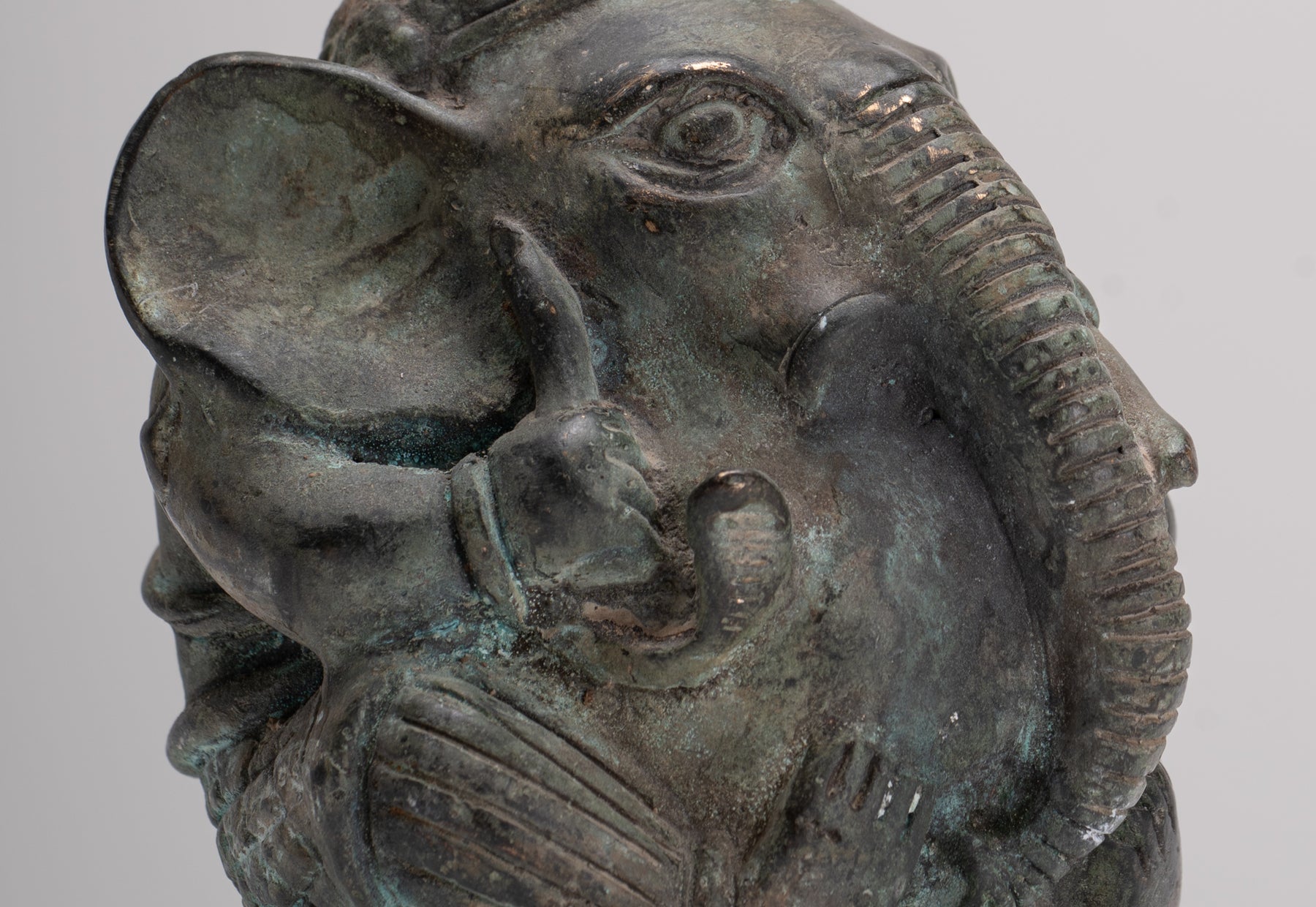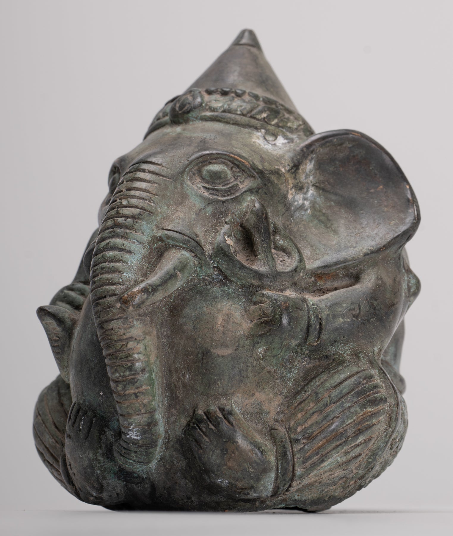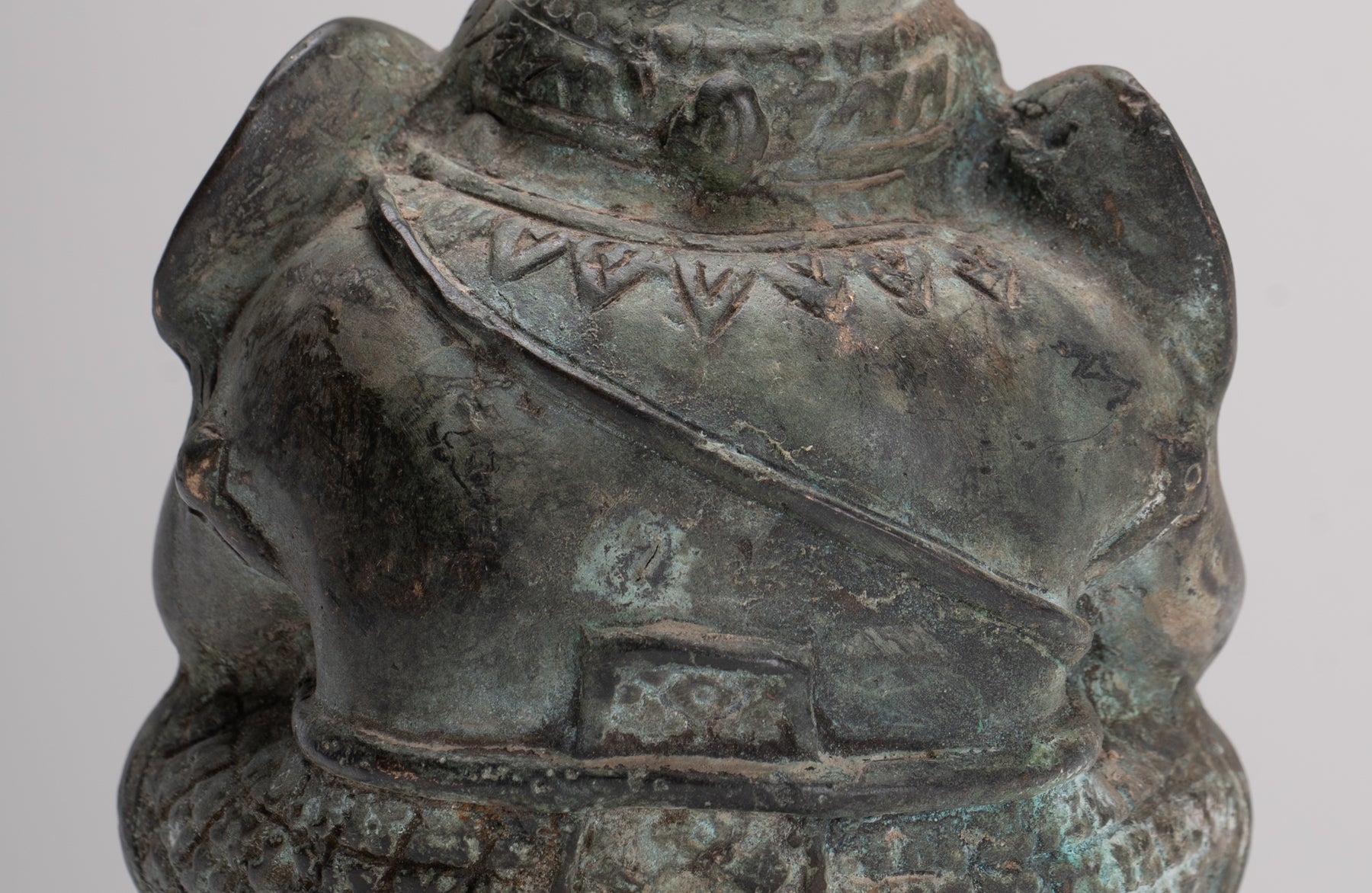 Ganesha Statue - Antique Thai Style Bronze Seated 4-Arm Ganesha Statue - 16cm/6"