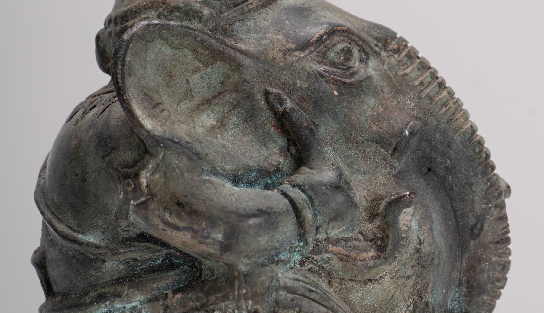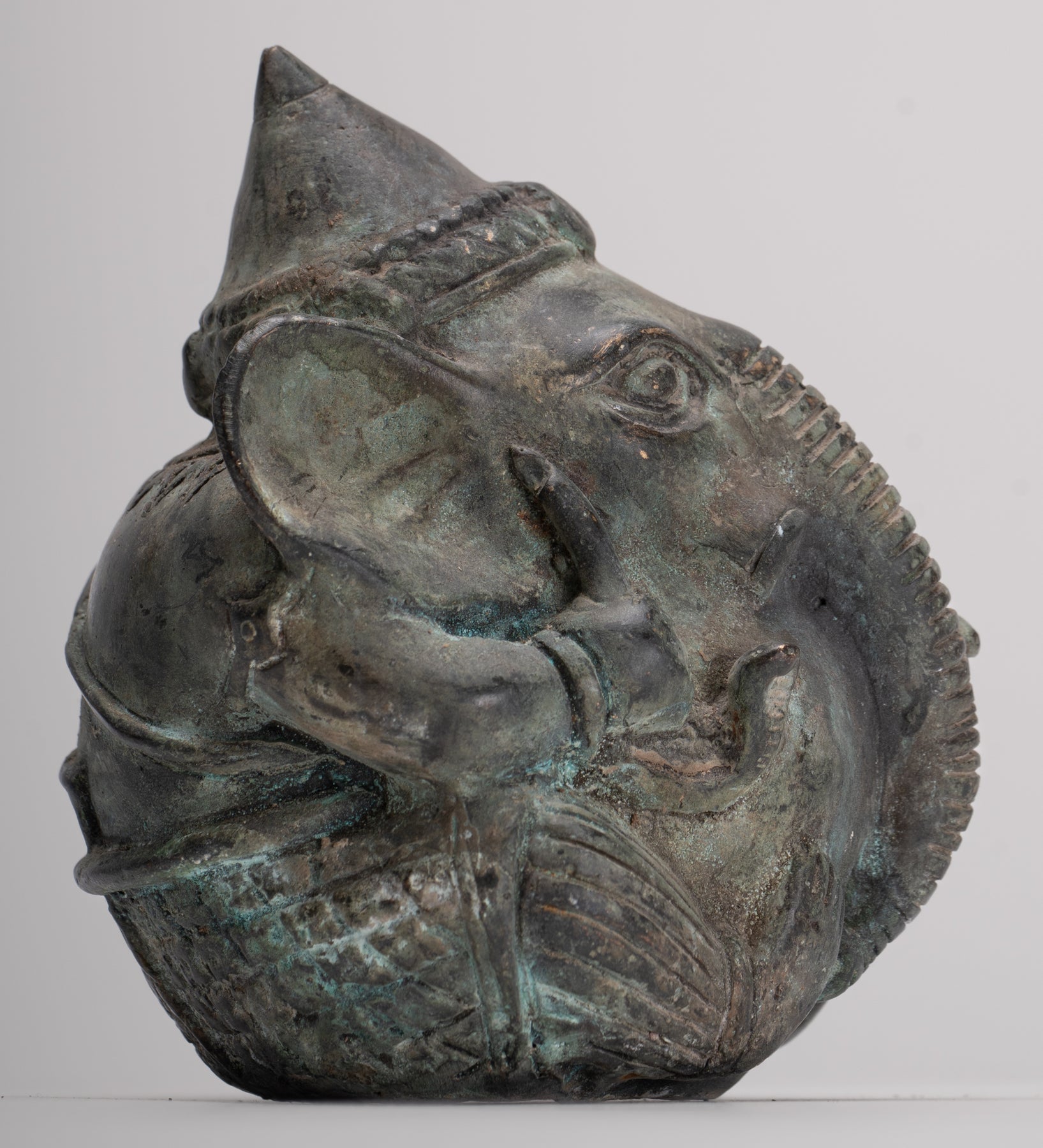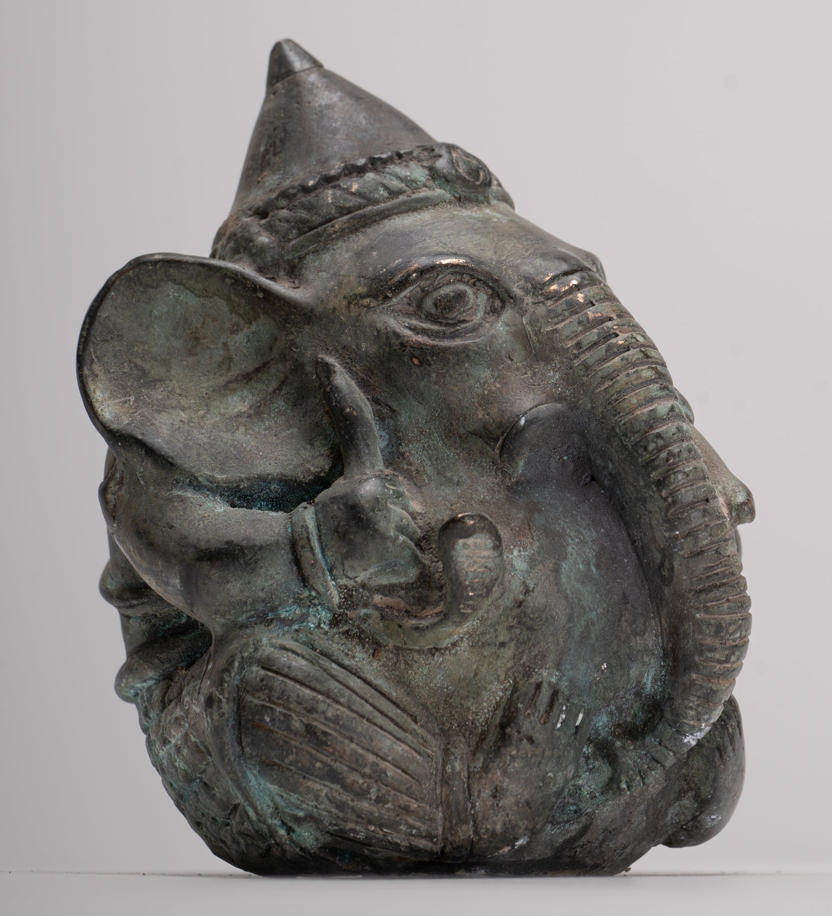 Ganesha Statue - Antique Thai Style Bronze Seated 4-Arm Ganesha Statue - 16cm/6"