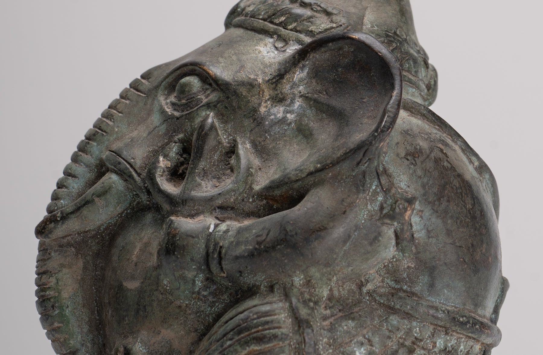 • Antique Khmer Style Bronze Seated Round Elephant Statue - 12cm/5" Tall