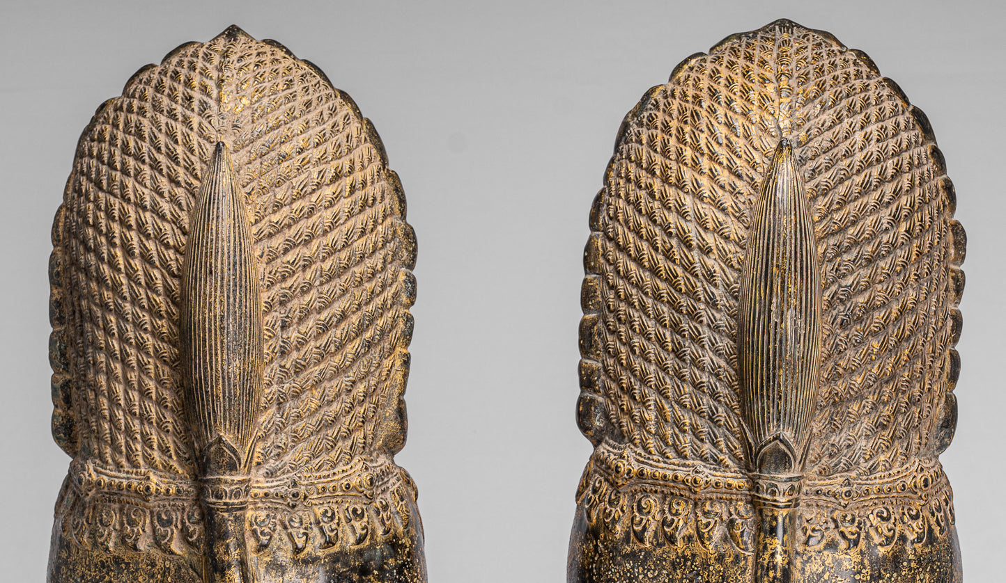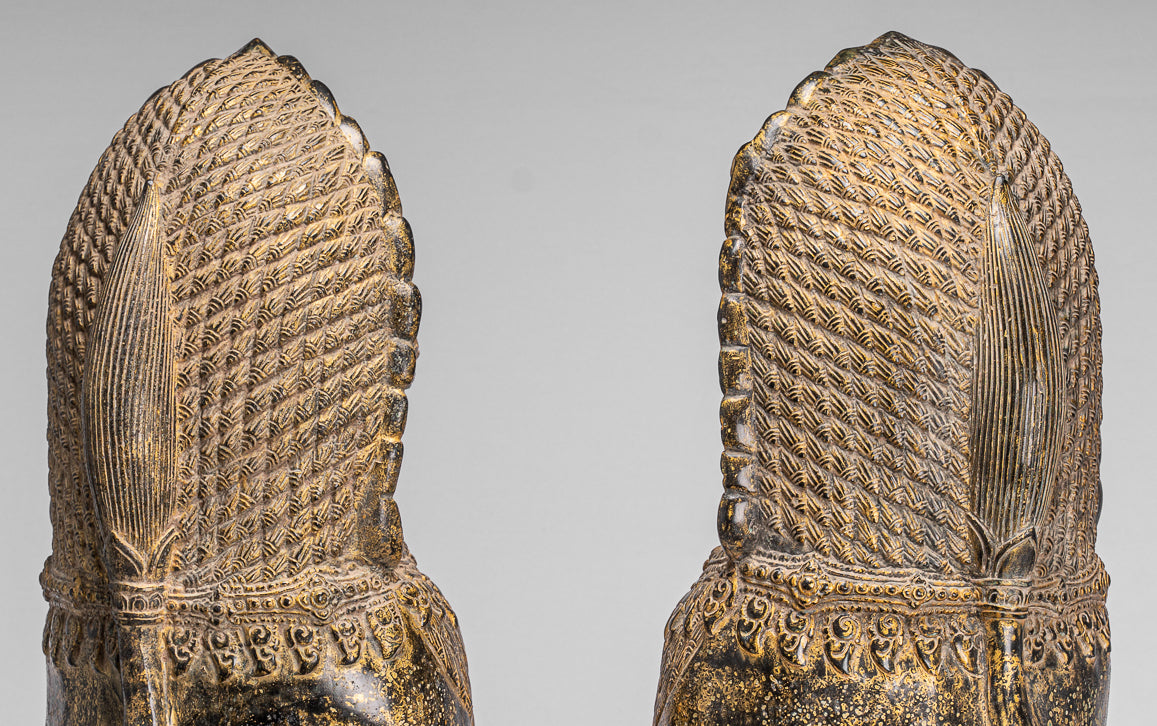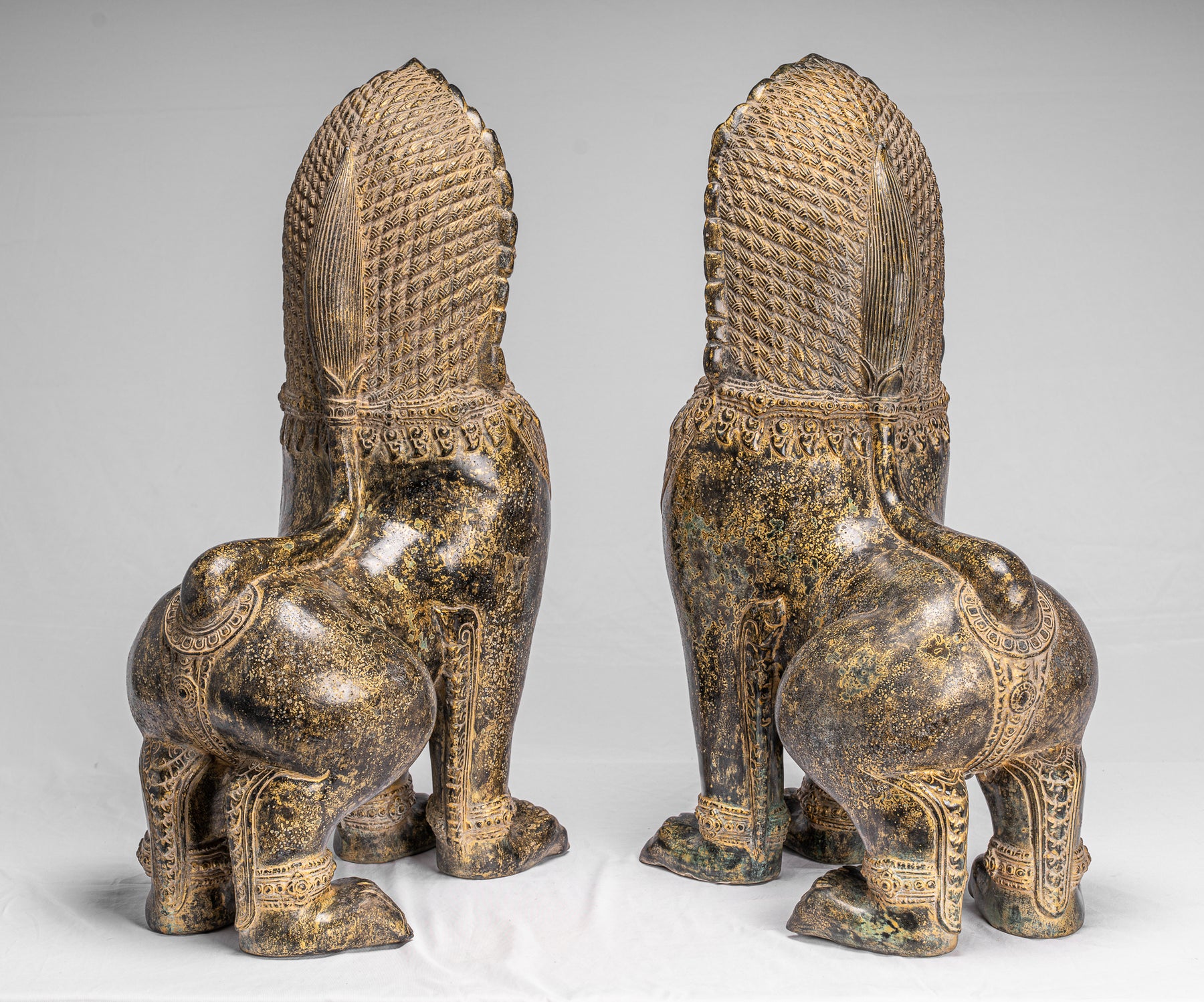 • Antique Khmer Style Bronze Temple Guardians or Lions (Pair) - 72cm/29"