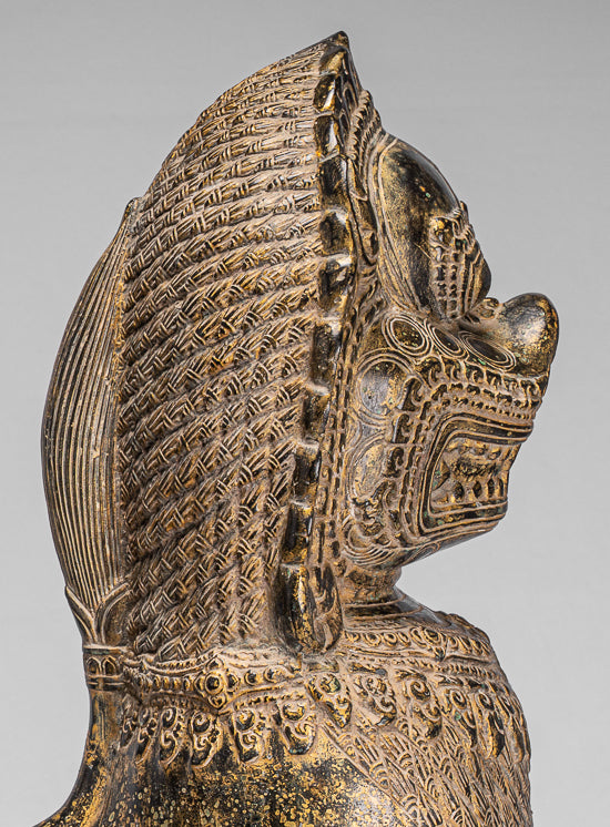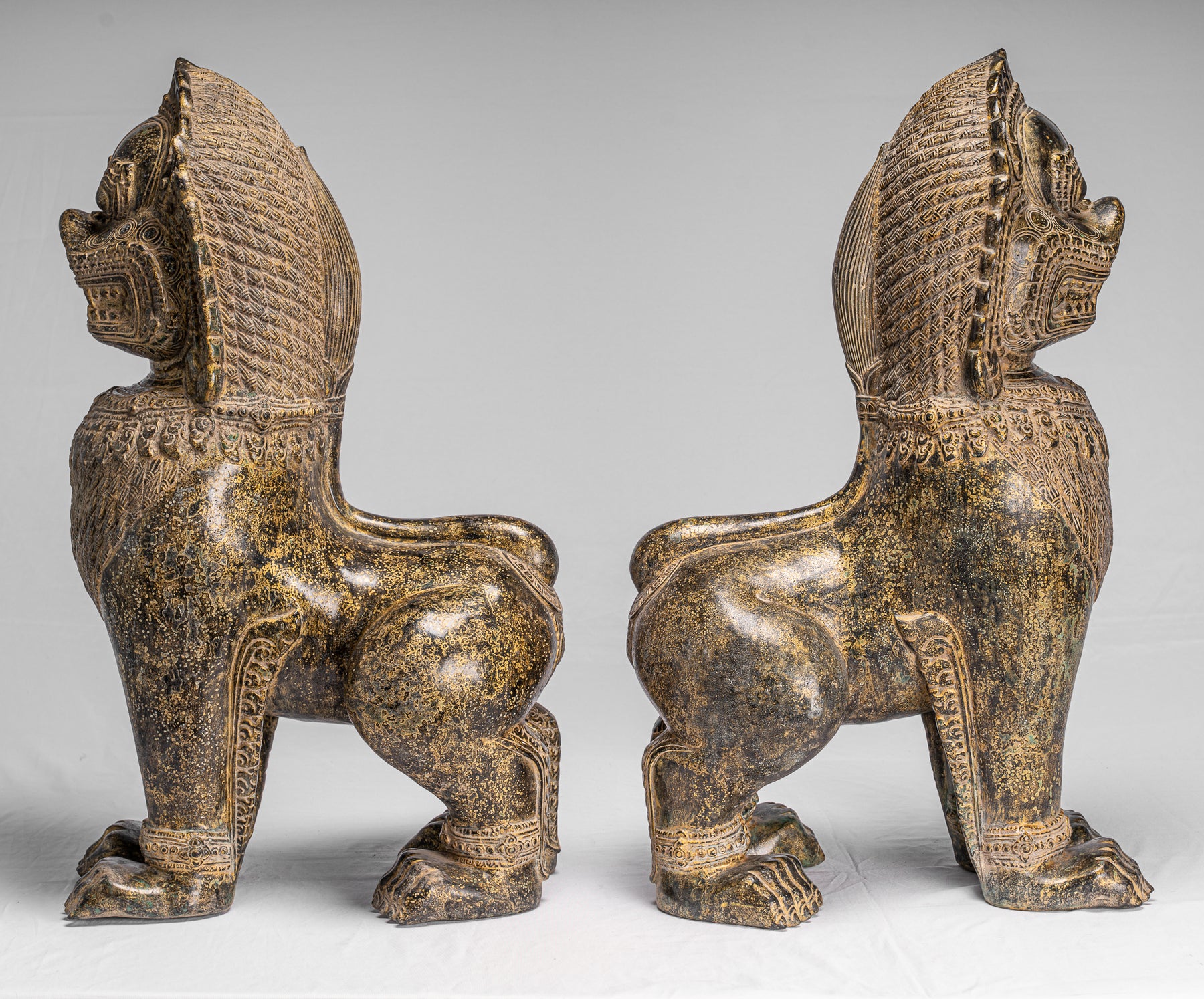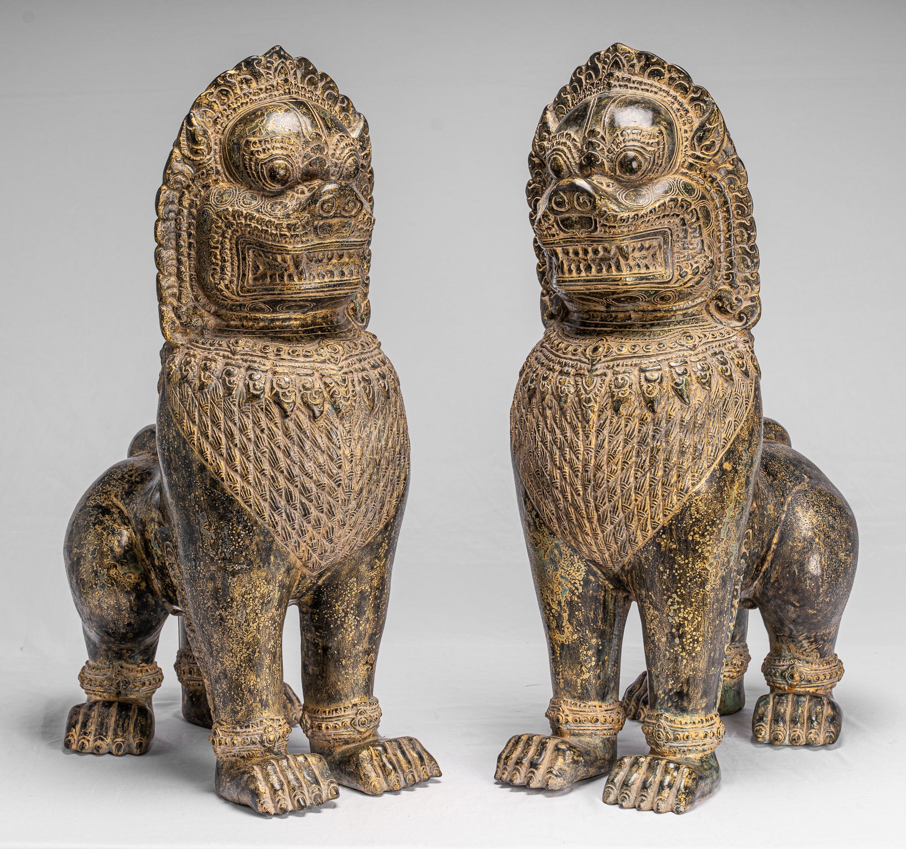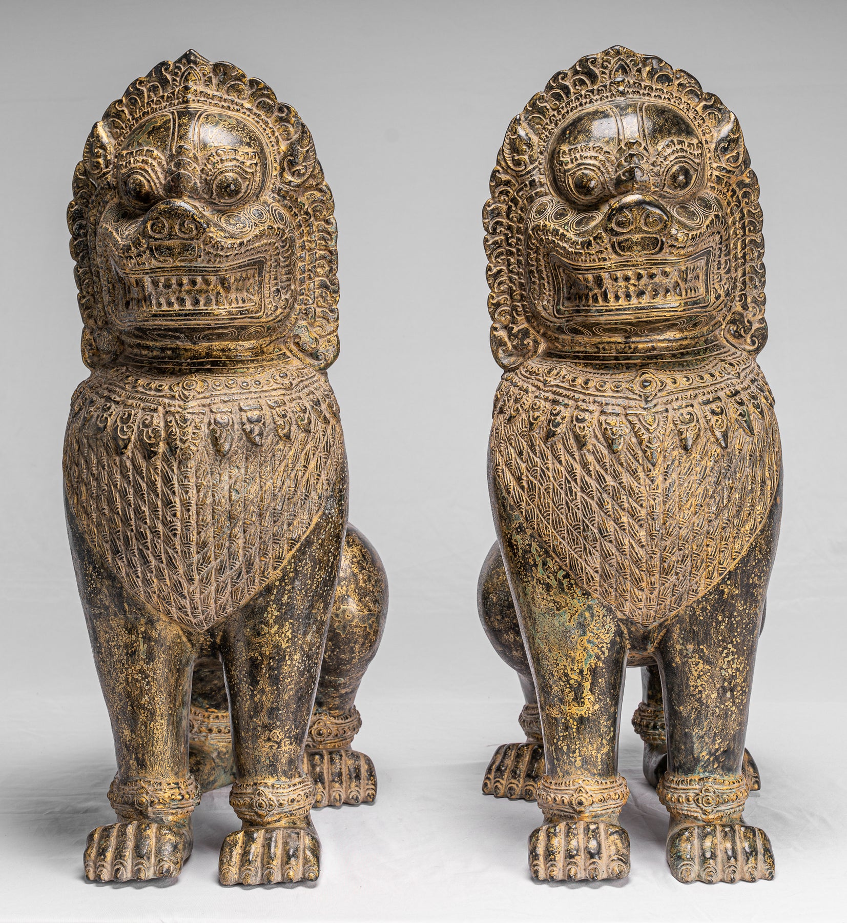 Temple Lions - Antique Khmer Style Bronze Temple Guardians or Lions (Pair) - 72cm/29"