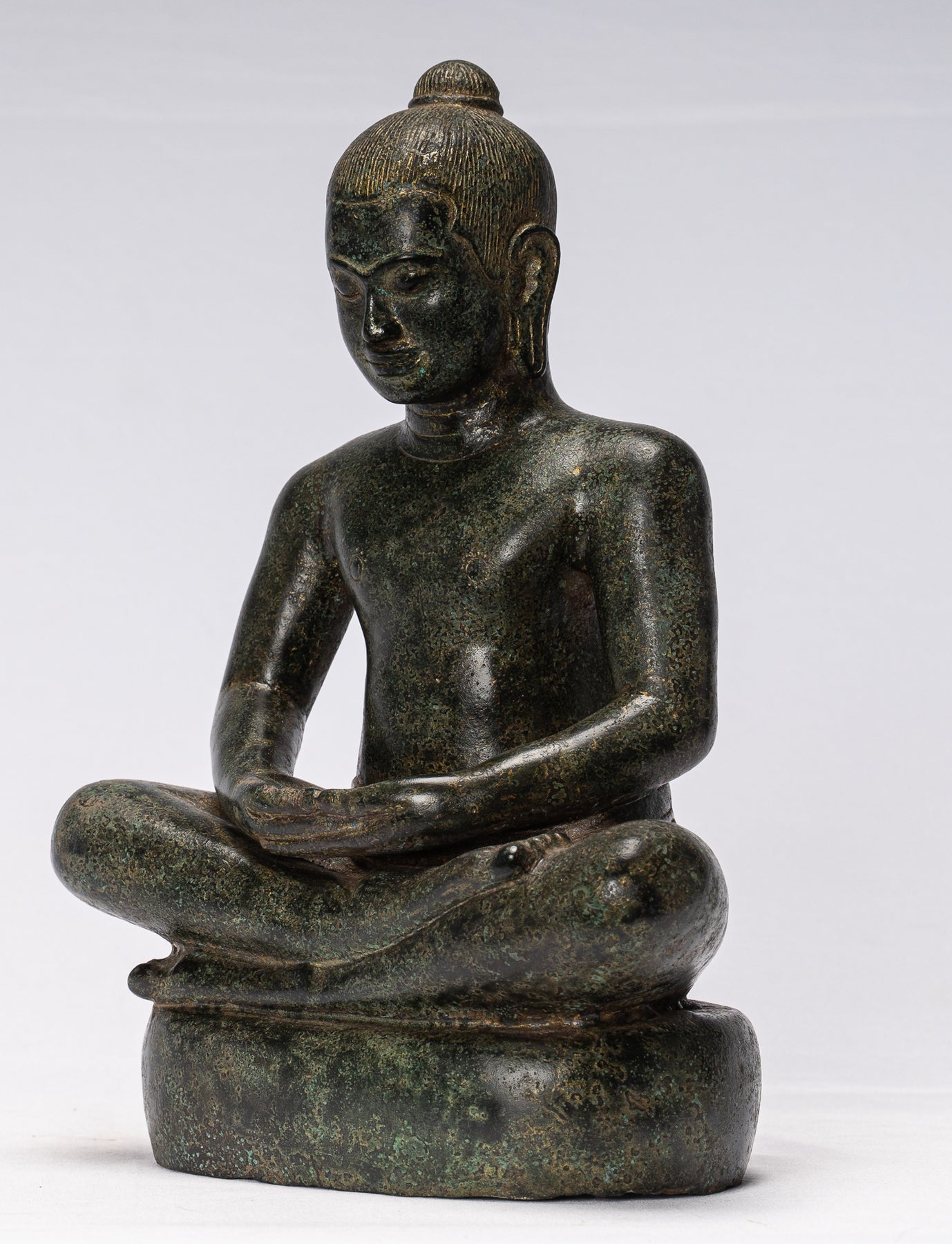 Antique Khmer Style Bronze Meditation Jayavarman VII Statue - 29cm/12"