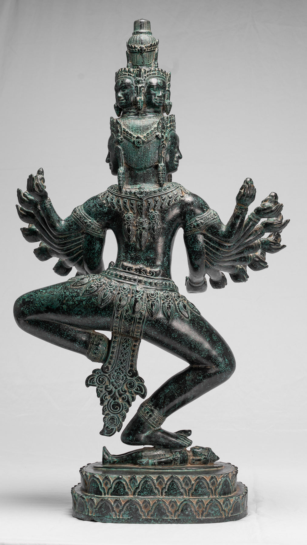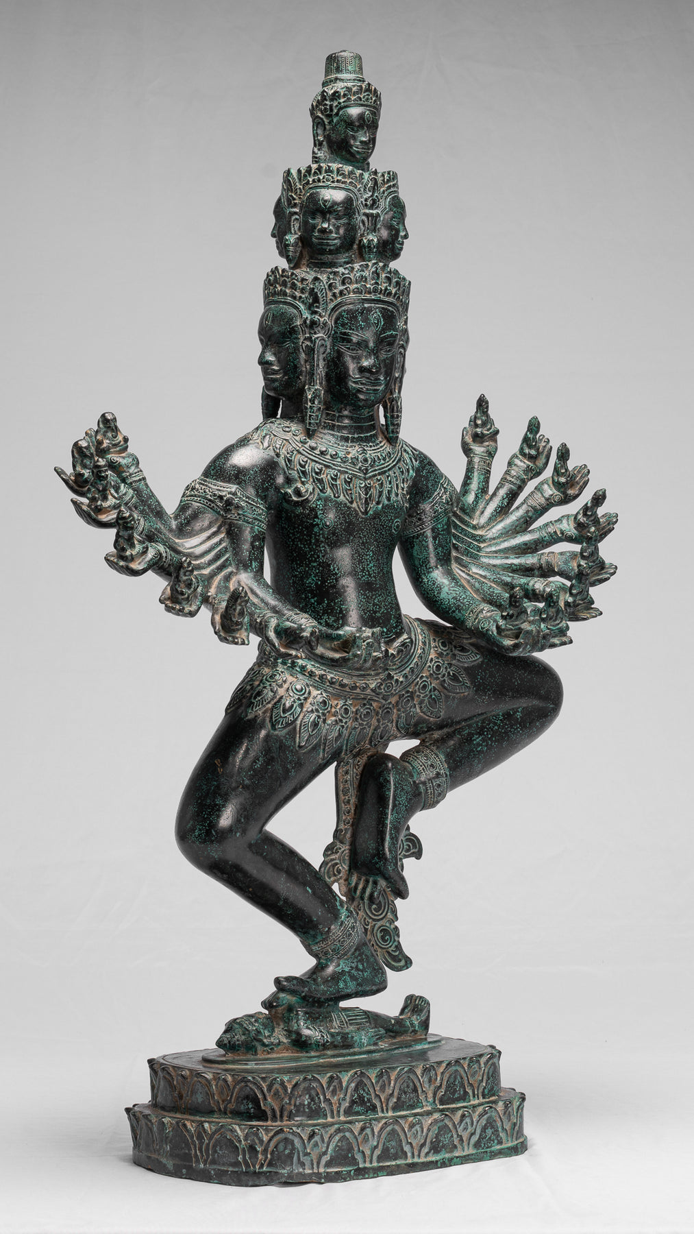 • Large Antique Khmer Style Bronze Angkor Wat Hevajra Statue - 86cm/34" Tall