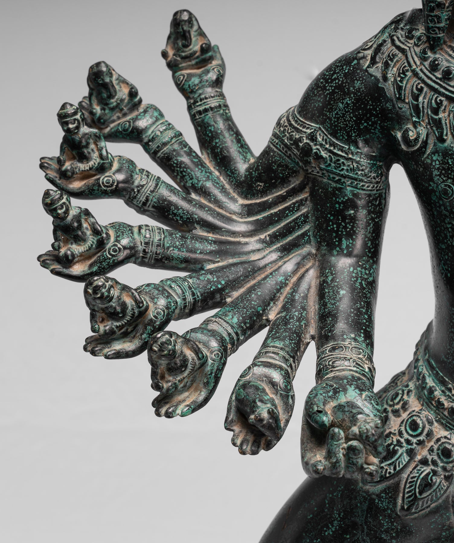 Antique Khmer Style Standing Bronze Angkor Wat Hevajra Statue - 86cm/34" Tall