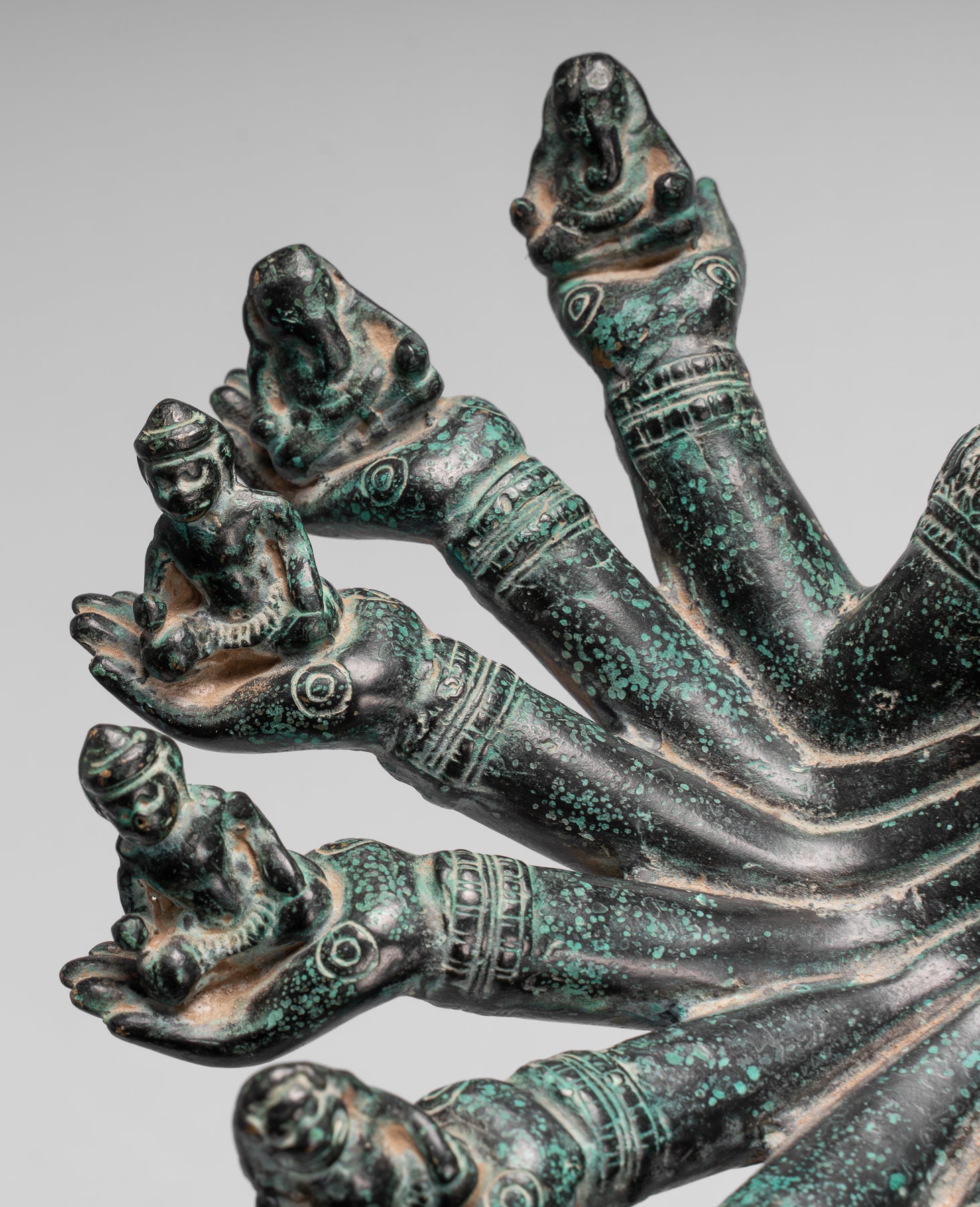 Each hand holds either Ganesha, Nandi or a meditating Buddha. Wonderful detail in the items held in each hand.