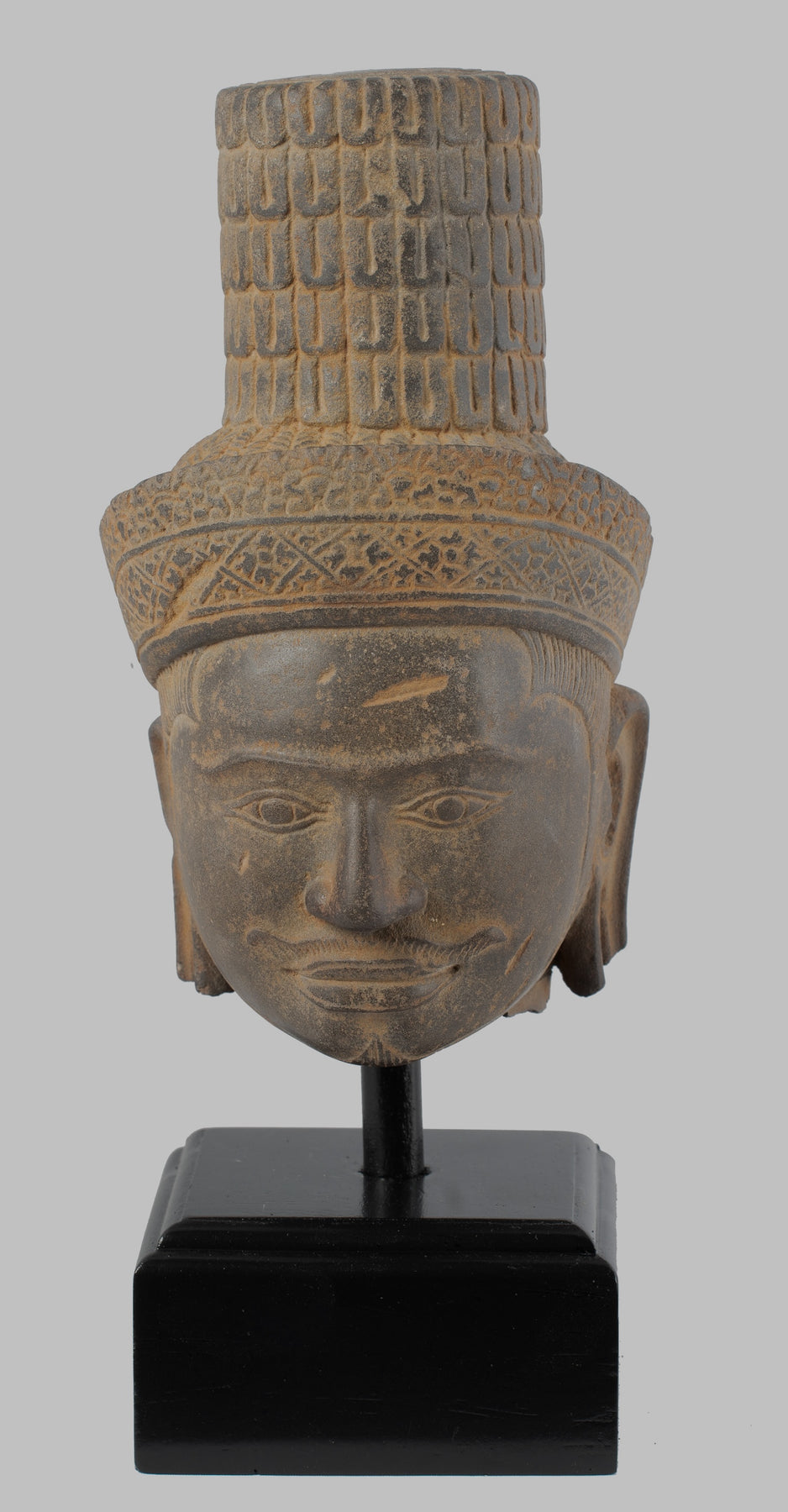 Probably an idealised portrait of King Jayavarman IV who implied that his rule was divinely sanctioned through association with both Vishnu and Shiva iconography.