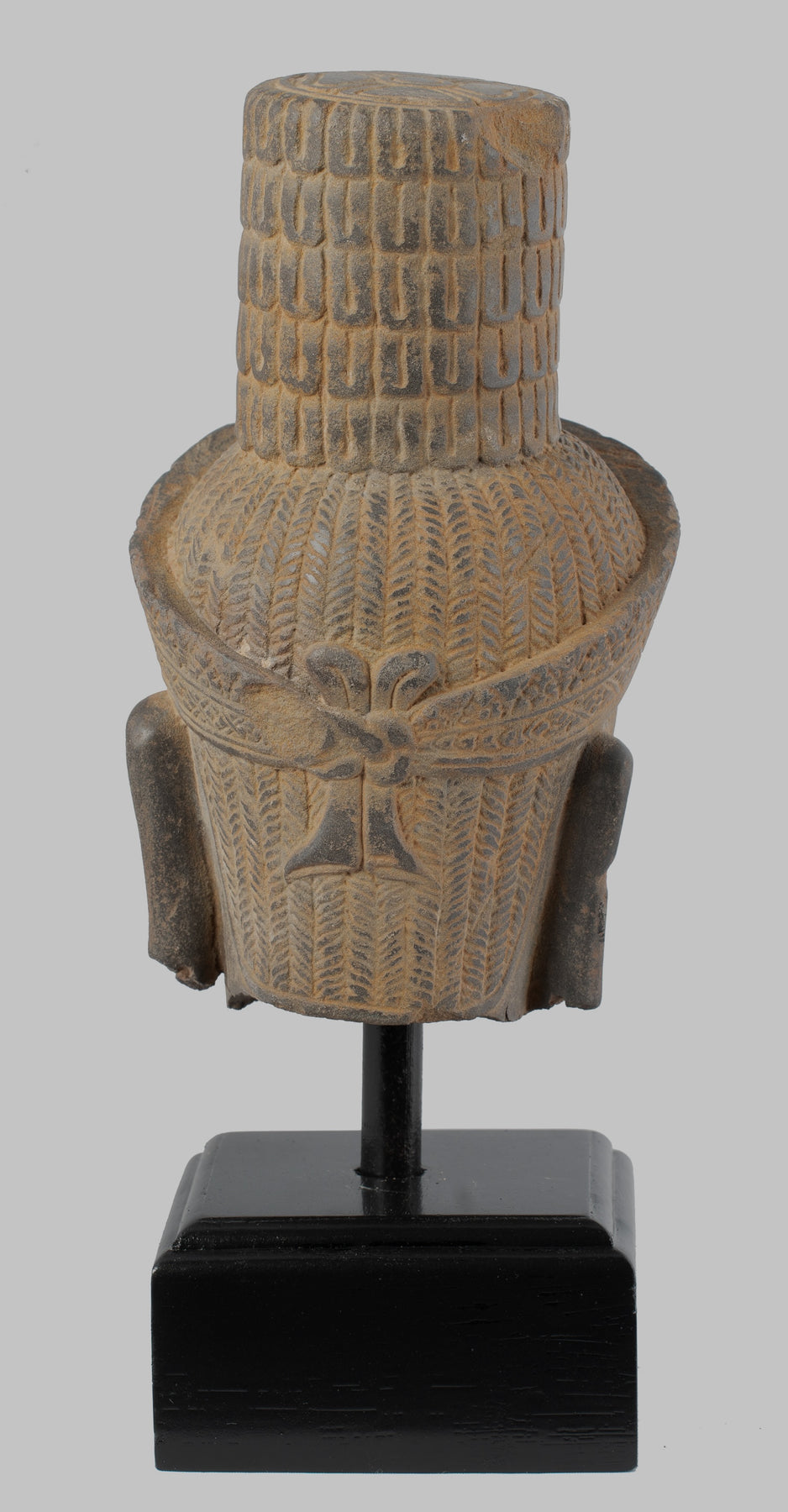 Antique Koh Ker Style Stone Mounted Khmer Vishnu Head - 28cm / 11"
