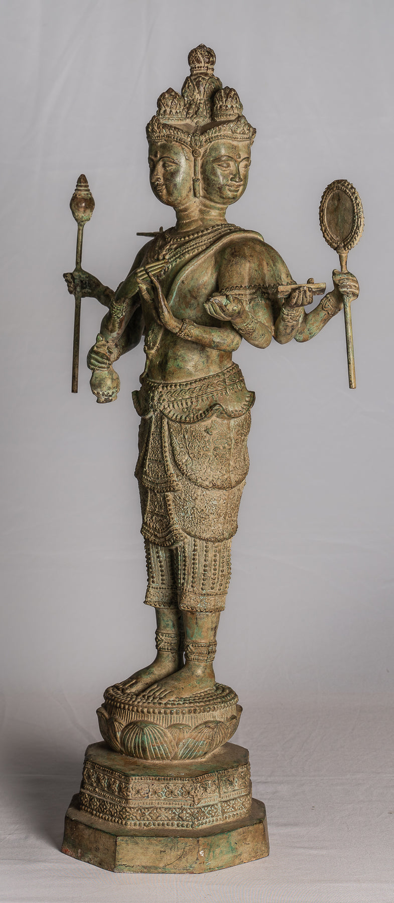 • Antique Thai Style Standing Bronze Brahma Statue - 76cm/30"