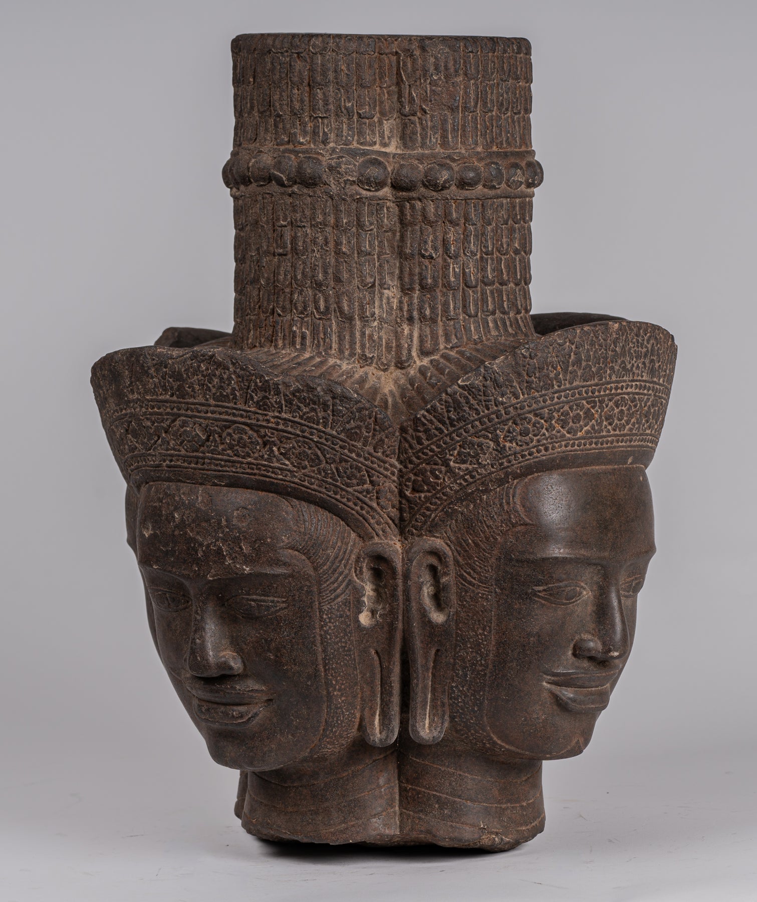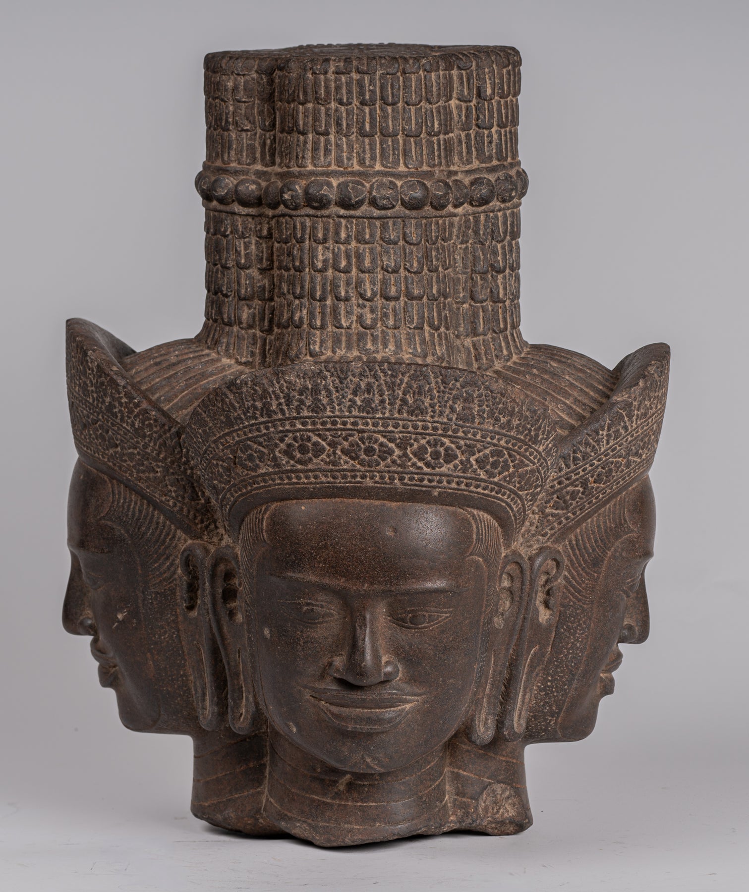 Antique Khmer Style Koh Ker Stone Brahma Head - Hindu God Creation - 42cm/17"
