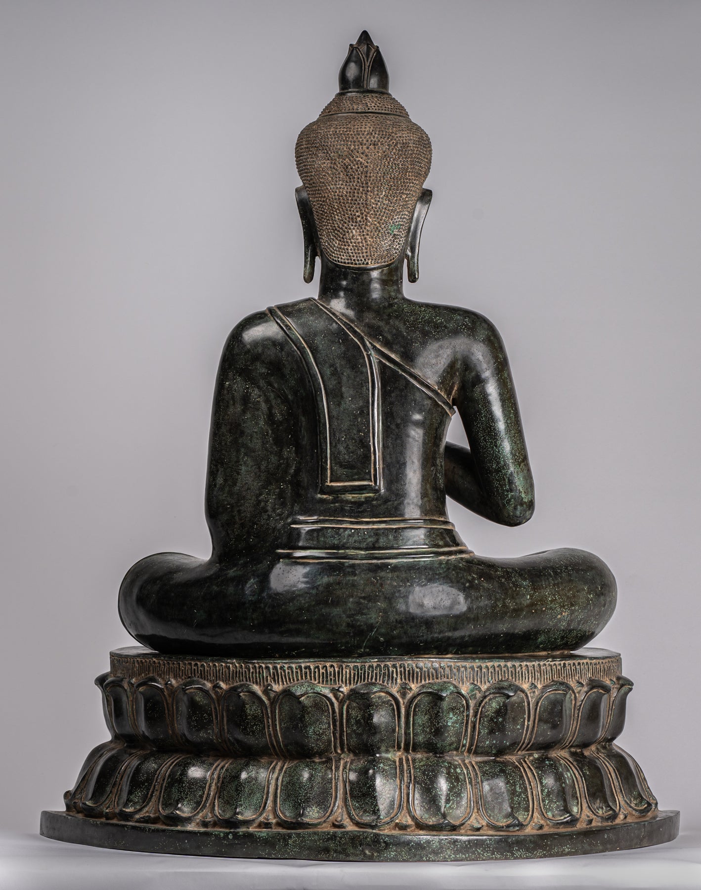A lotus flower can also be seen atop the Buddha's head. This ushnisha symbolizes Buddha's high level of spiritual development.