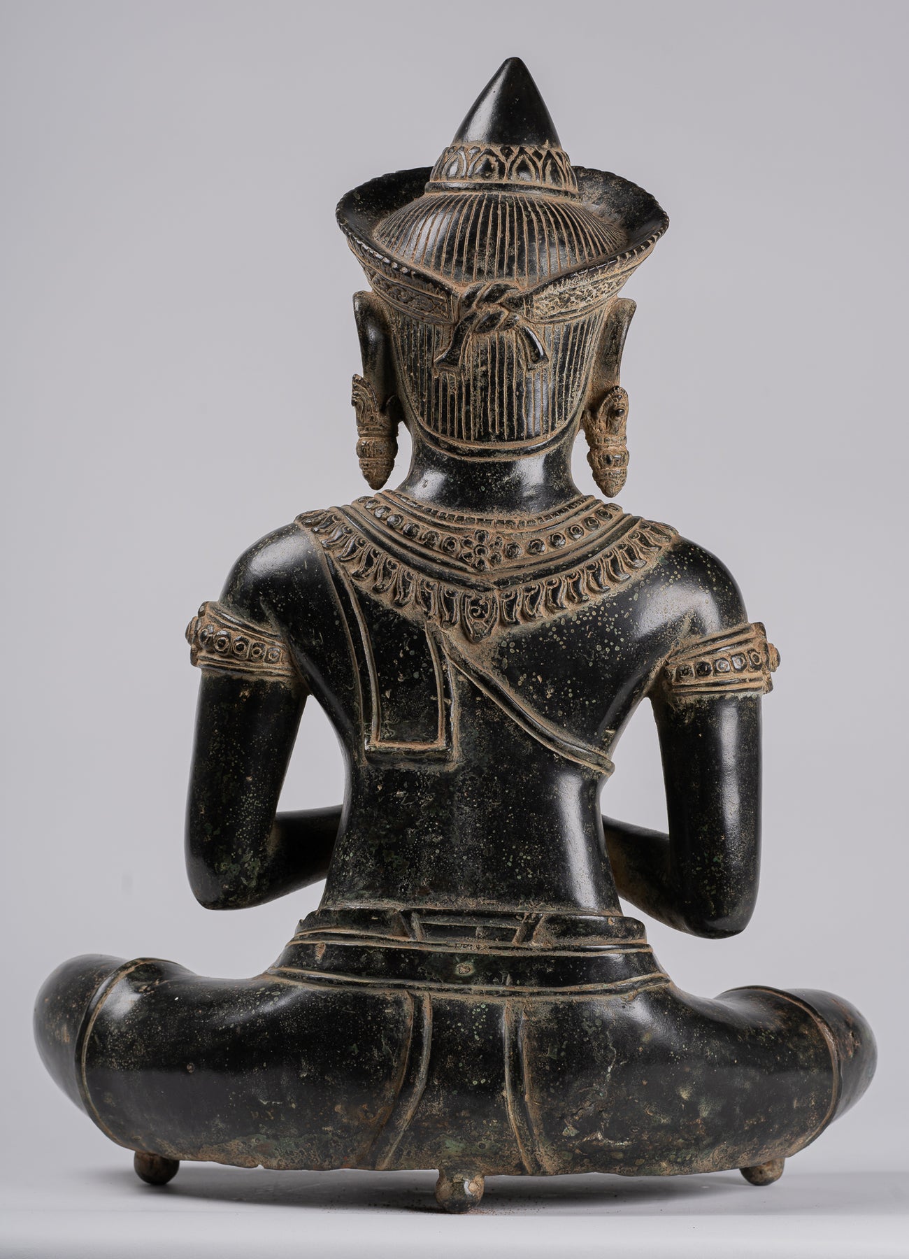 Buddha - Antique Khmer Style Bronze Seated Double Teaching Buddha Statue - 56cm/22"
