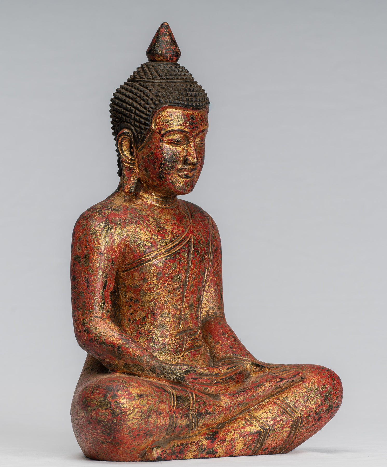 Antique Khmer Style Wood Buddha Statue Dhyana Meditation Mudra 31cm/12"