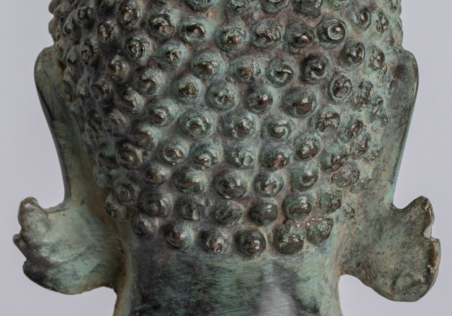 The Buddha has a peaceful countenance with downcast introspective eyes and a firm brow. His earlobes are stretched long from a youth spent as a prince wearing heavy gold earrings. The peaceful countenance of Lord Buddha exudes harmony.