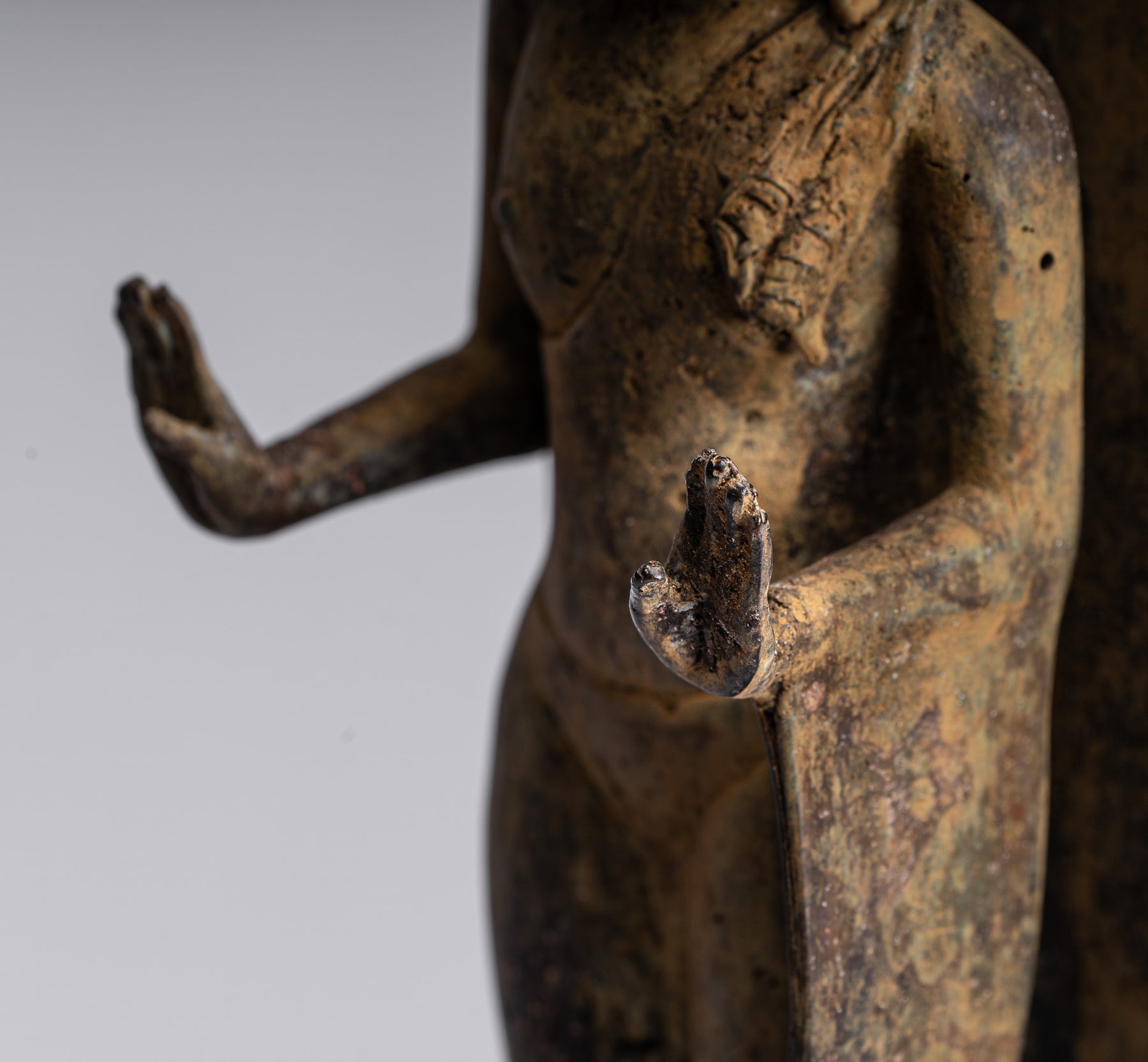 Antique Indonesian Style Bronze Standing Javanese Protection Buddha - 37cm/15"