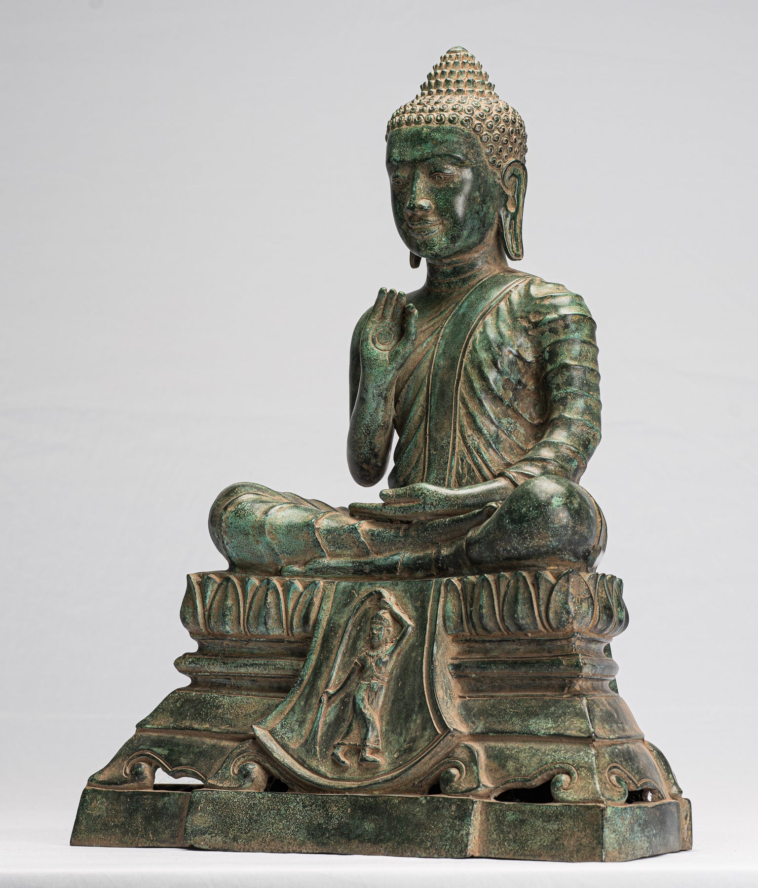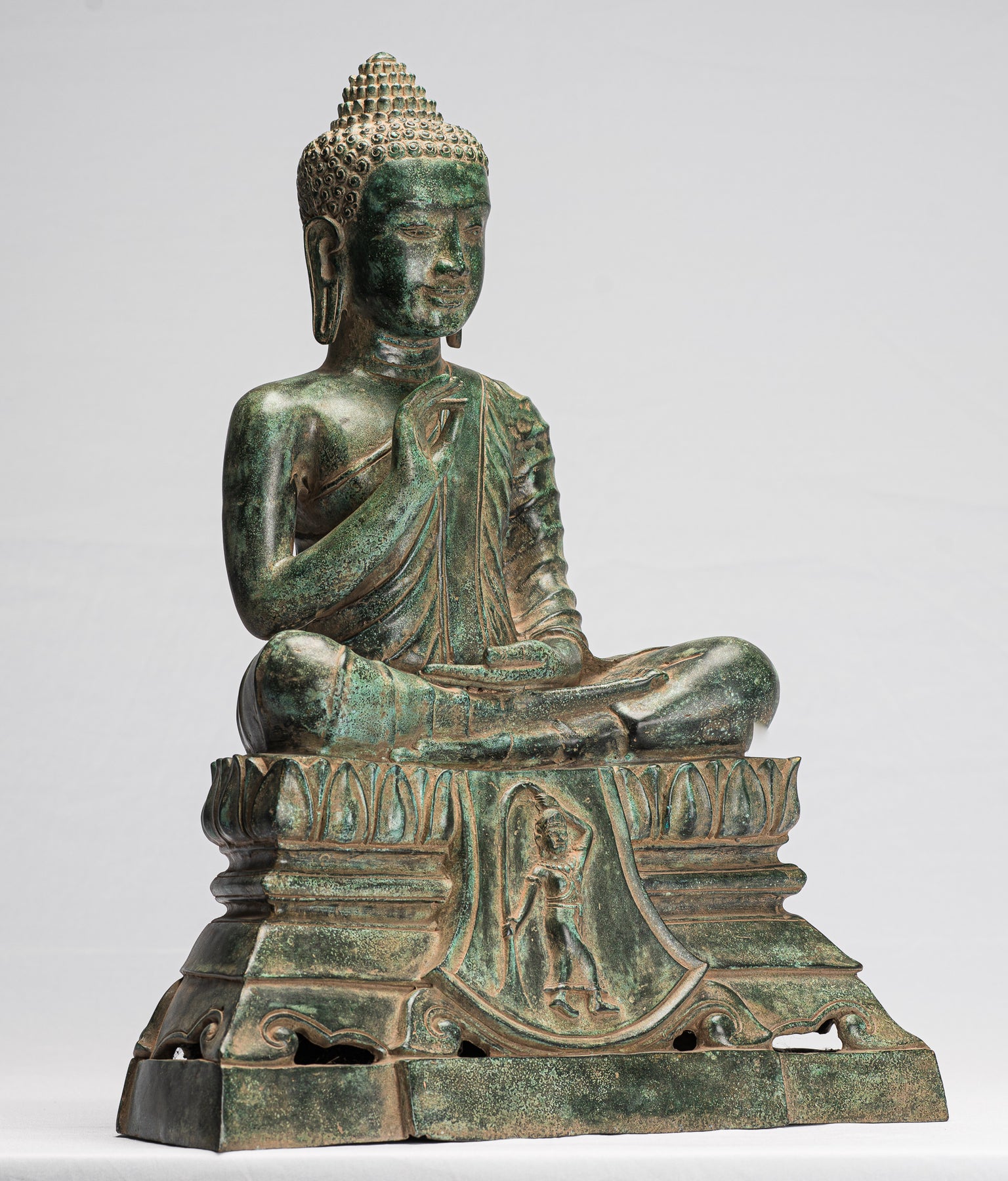 Antique Khmer Style Bronze Buddha Statue Dharmachakra Teaching Mudra 51cm/20"