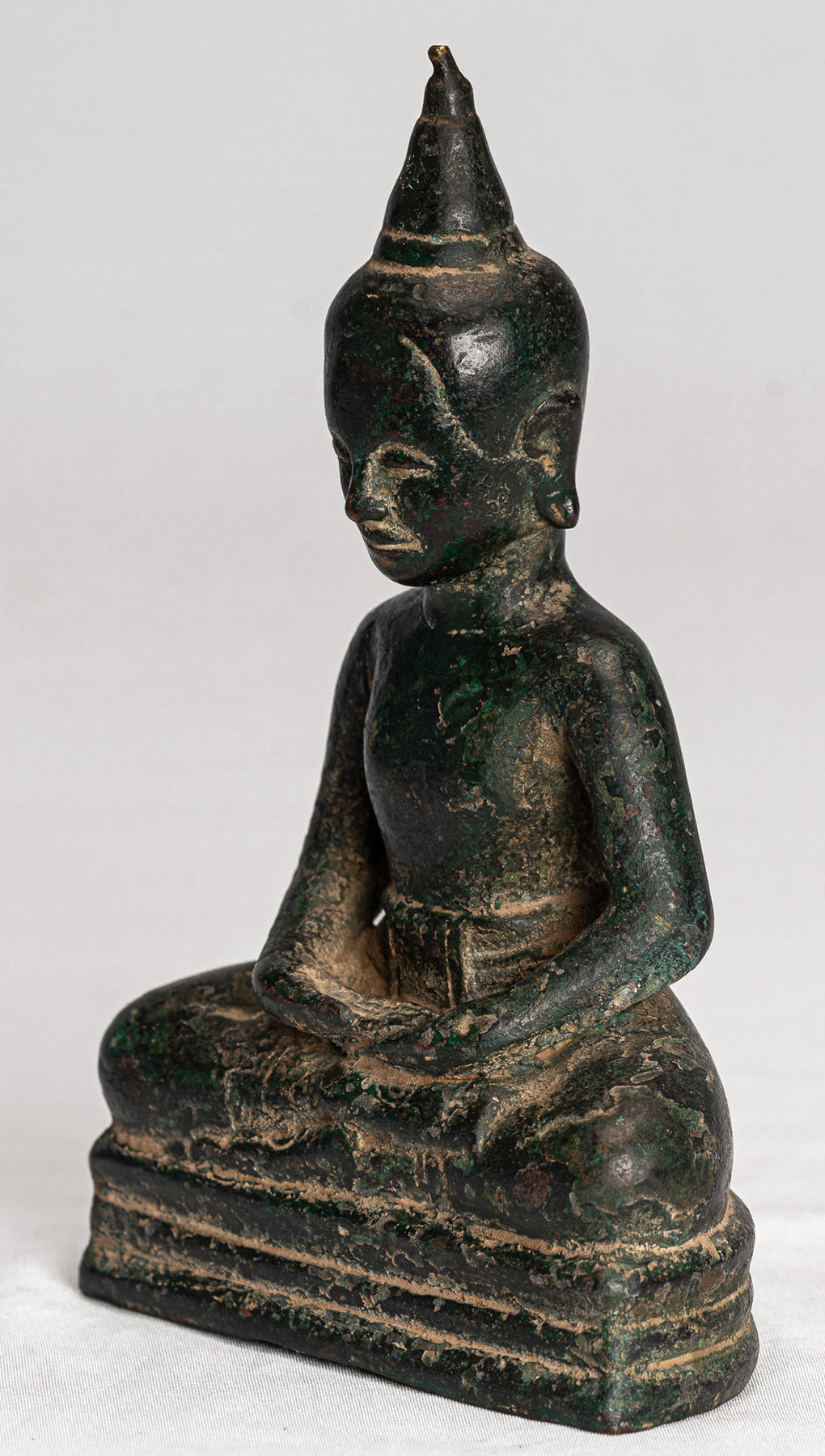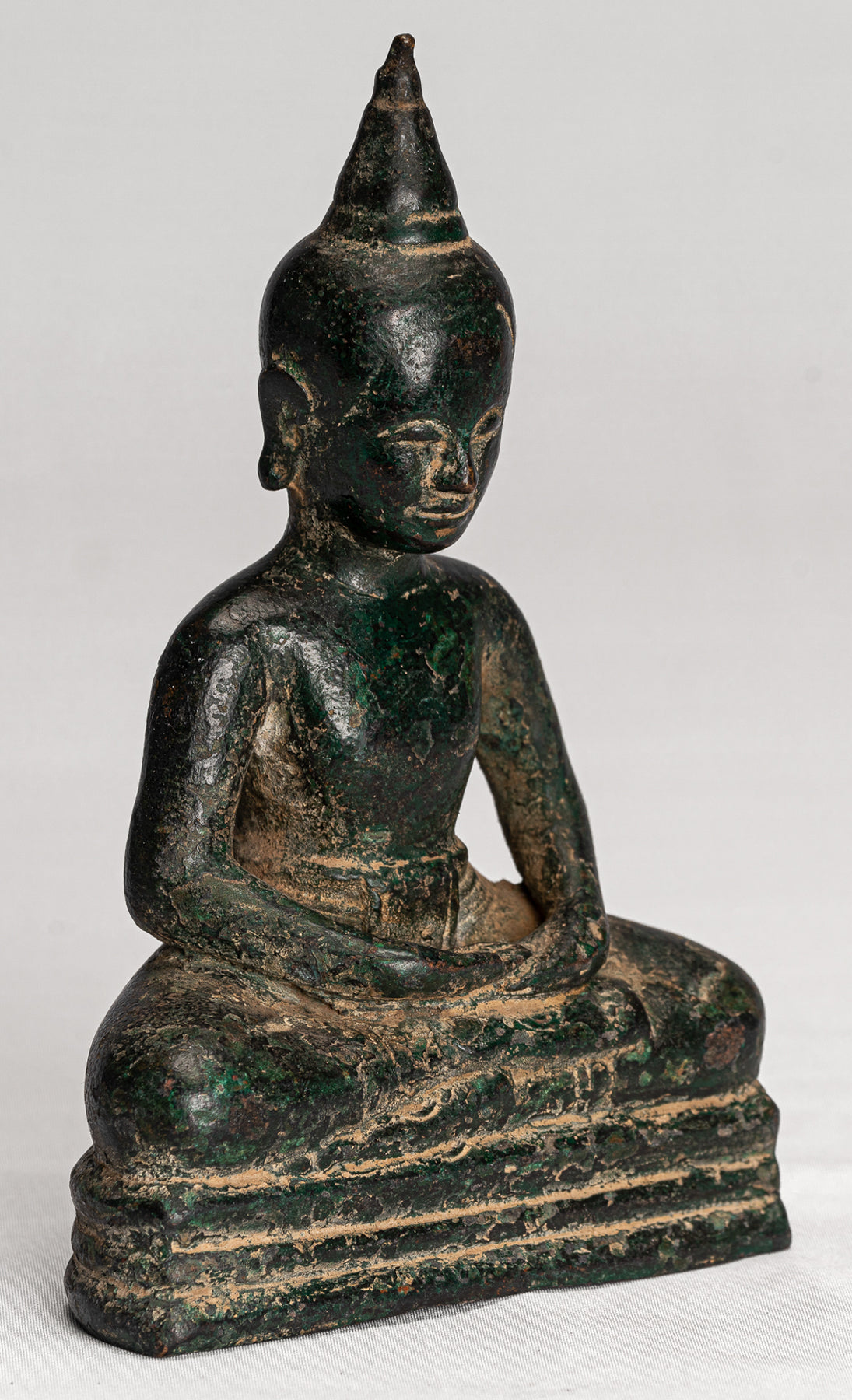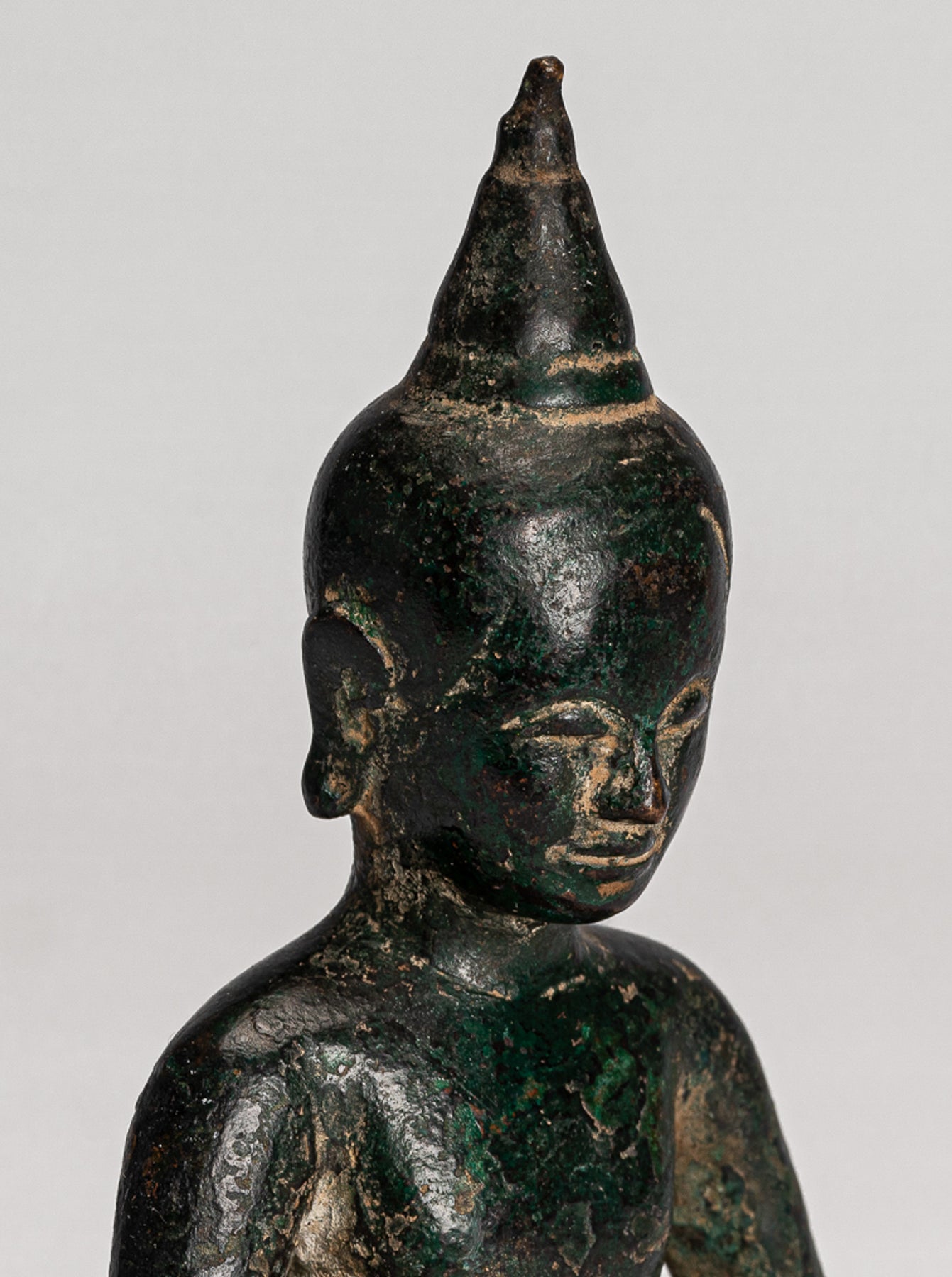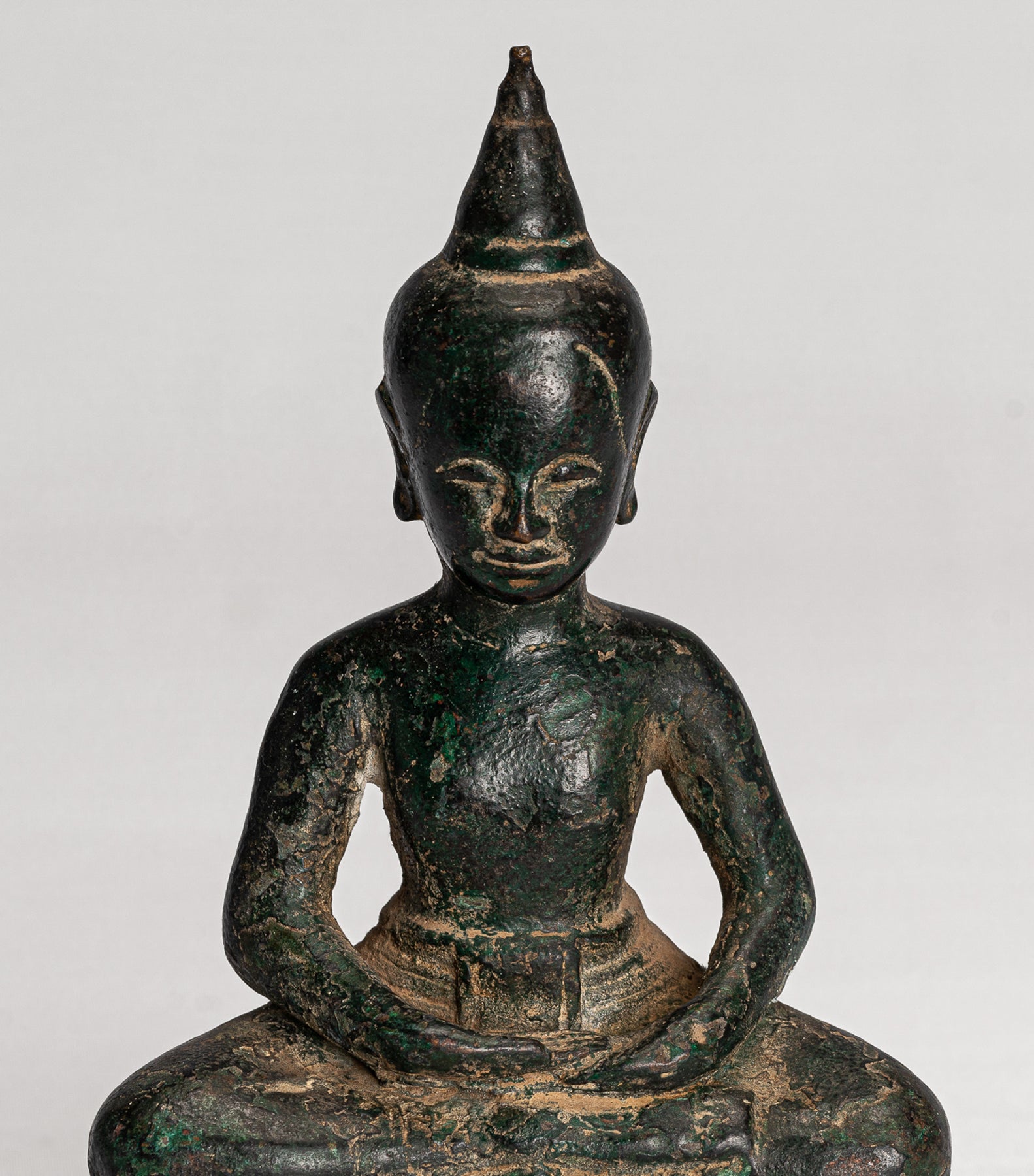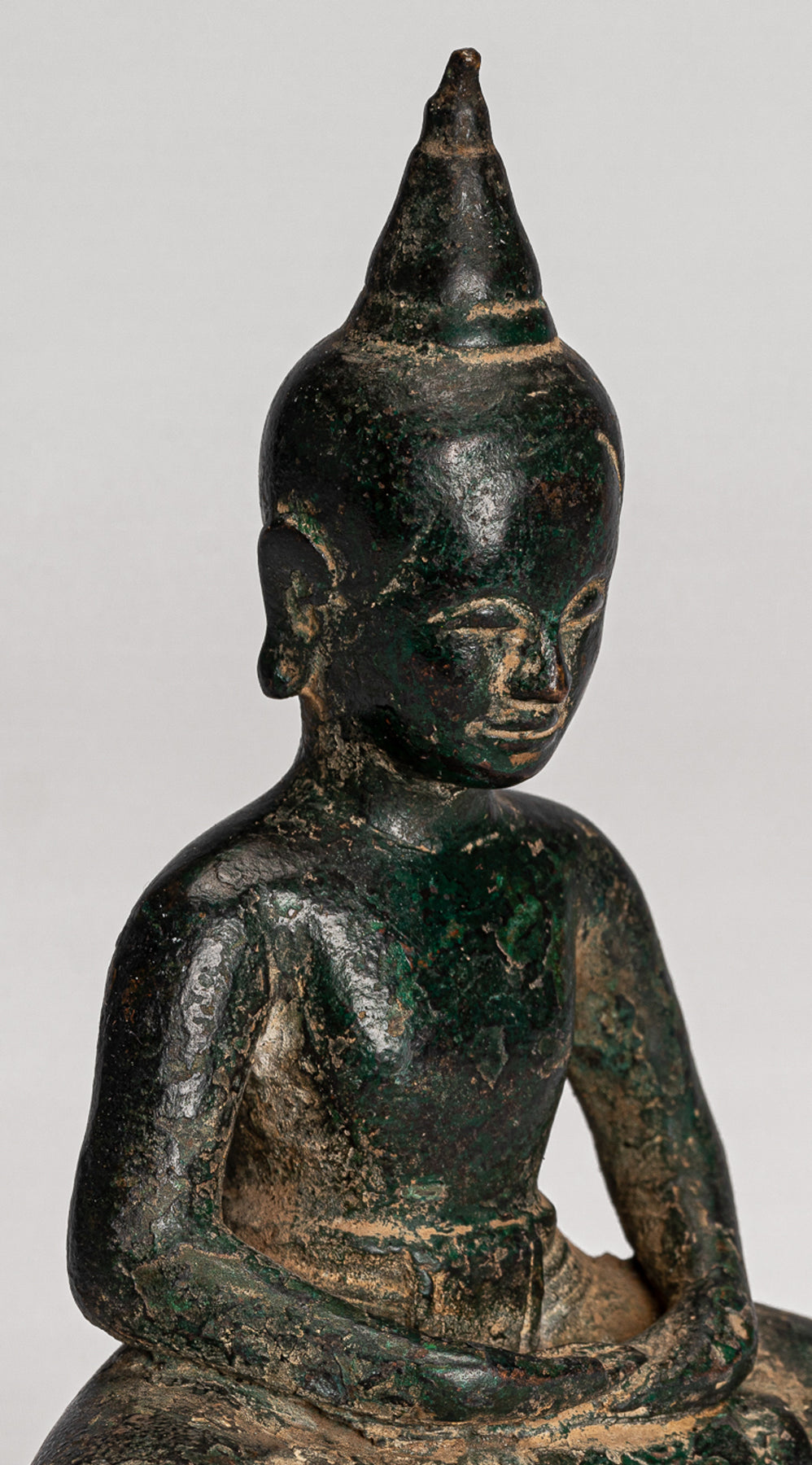 The surface of the bronze carries a very appealing deep malachite‑green patina, enhancing the sense of age and quiet presence. Traditional in character yet full of life, this Phnom Da style Buddha is sure to bring an atmosphere of serenity to any home, office, or sacred space.
