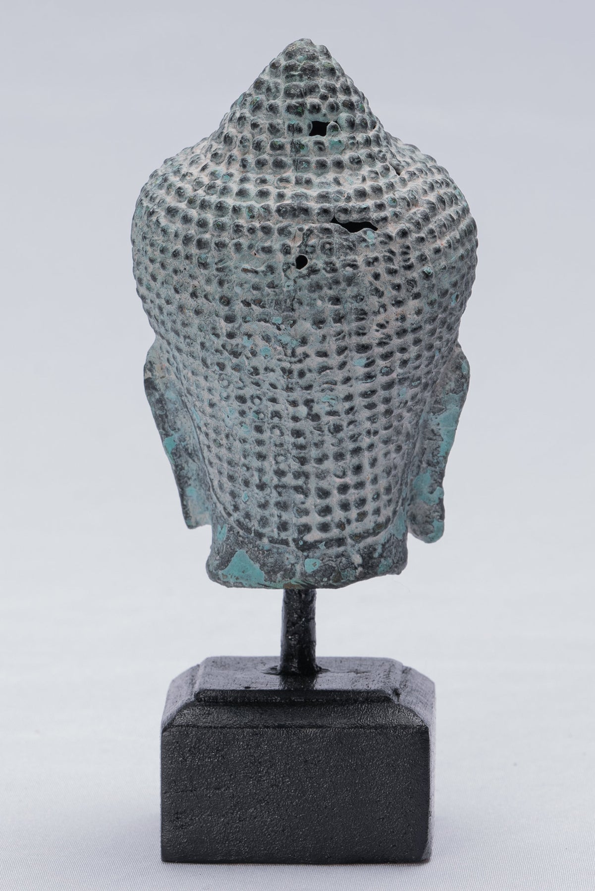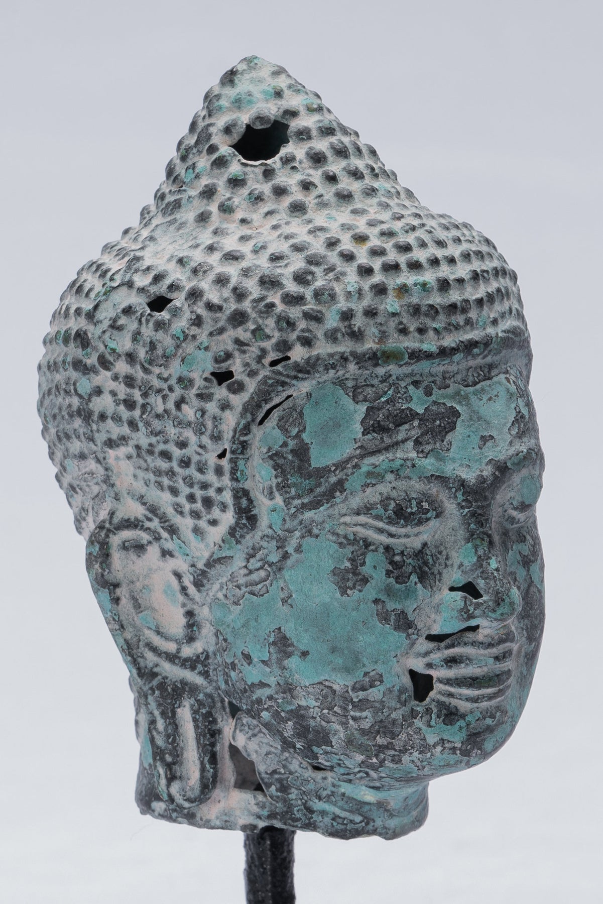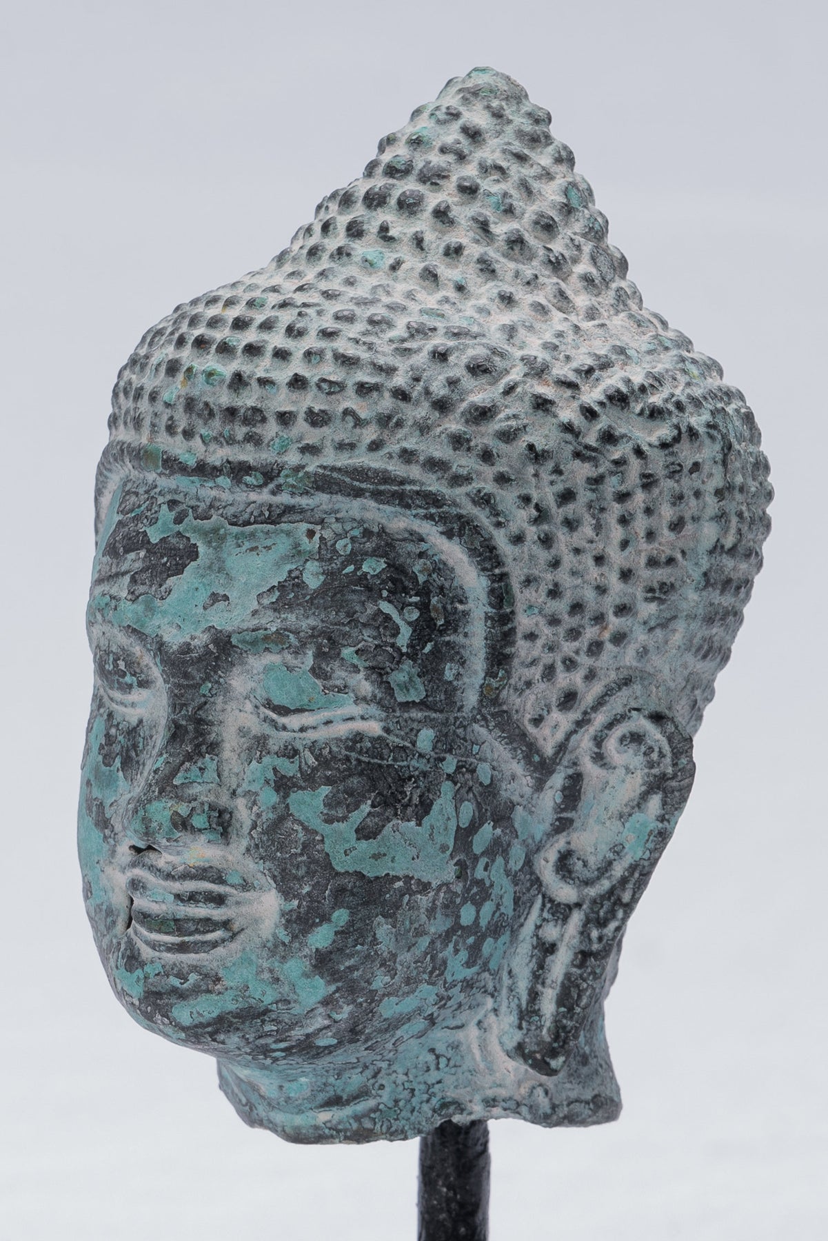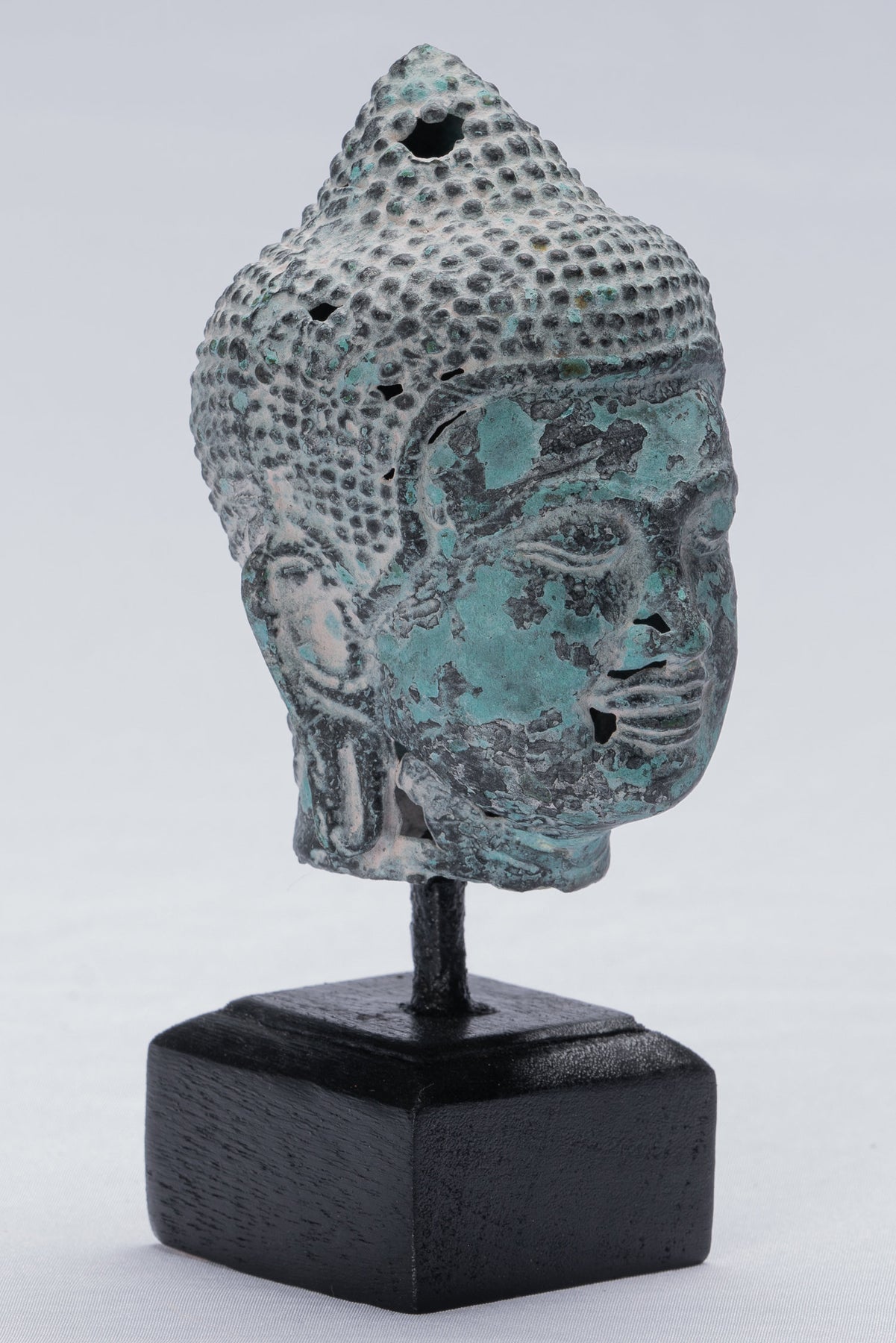 • Antique Khmer Style Bronze Mounted Buddha Head Statue - 15.5cm/6"