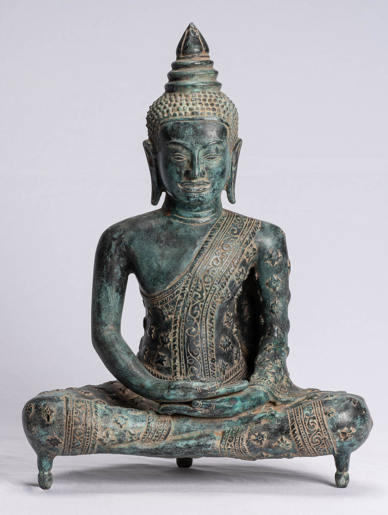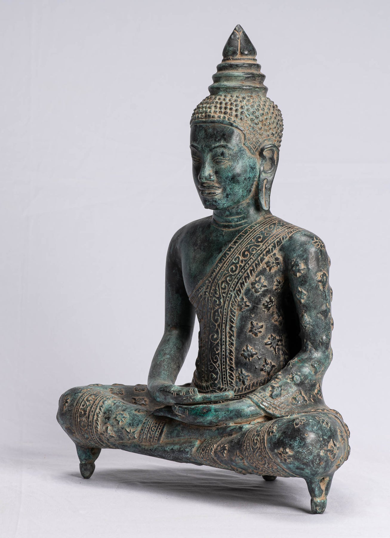 Antique Khmer Style Bronze Seated Amitabha Meditation Buddha Statue - 44cm/18"
